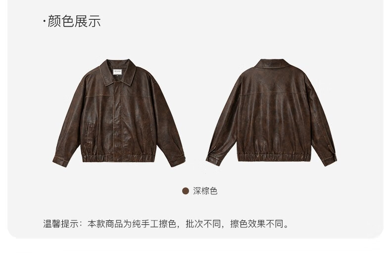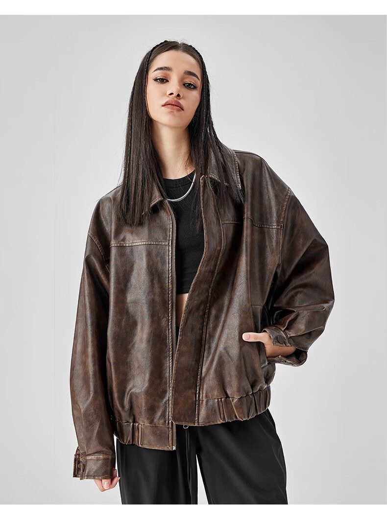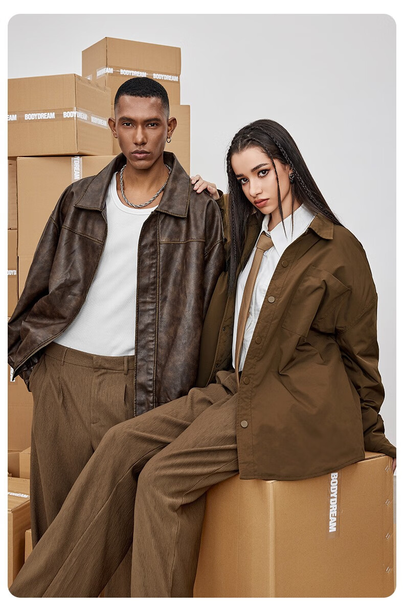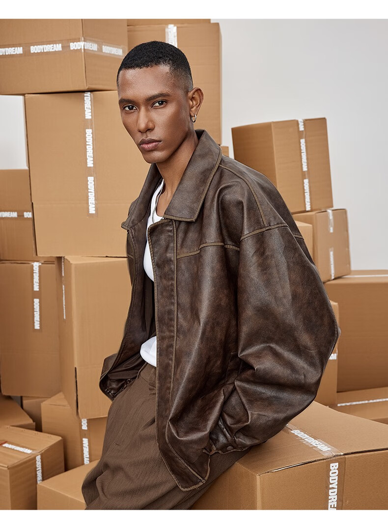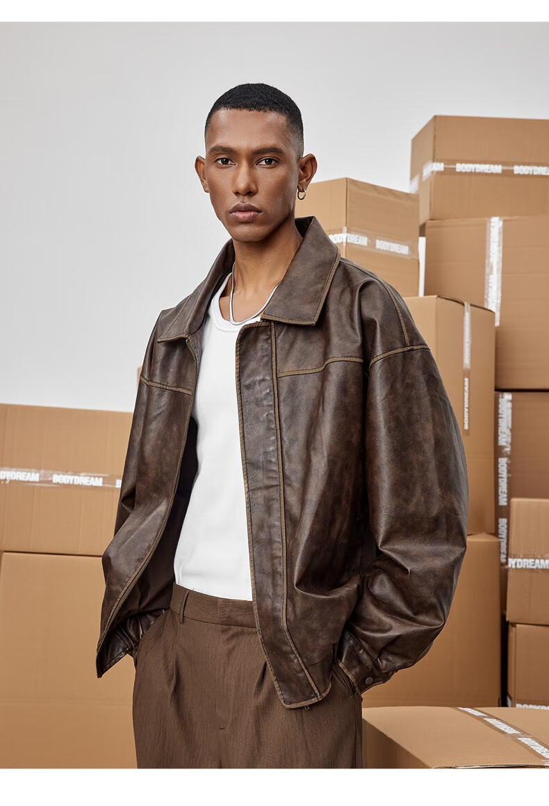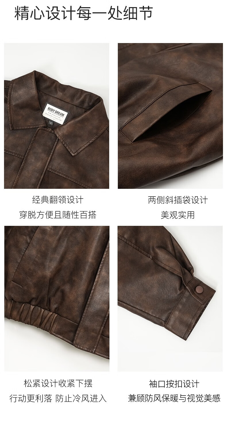 BODYDREAM新复古回潮做旧PU皮衣外套男旷野美拉德穿搭美式街头休闲机车夹克 深棕色 4XL