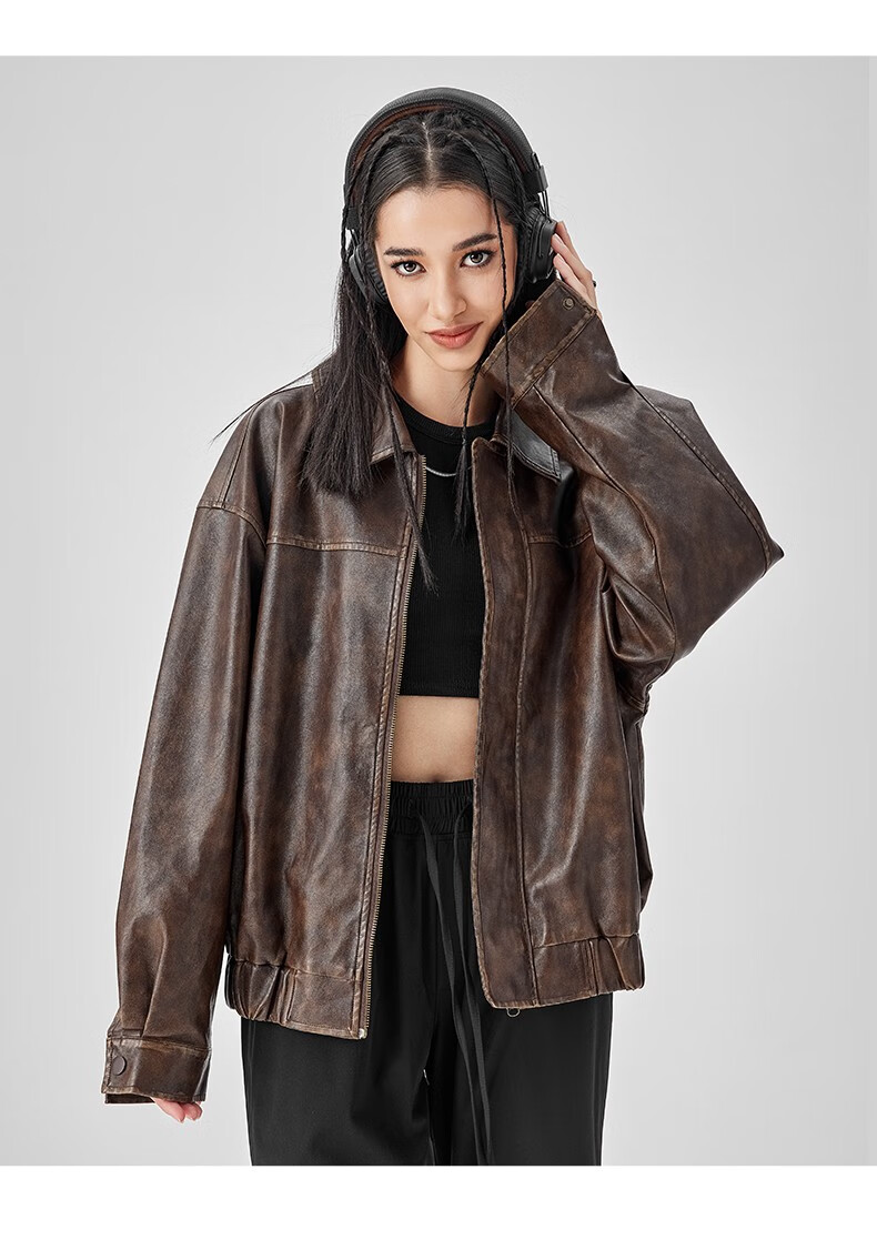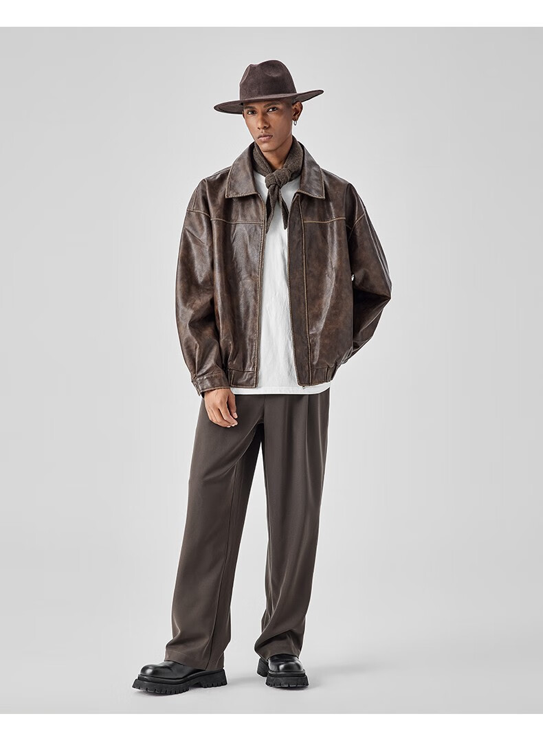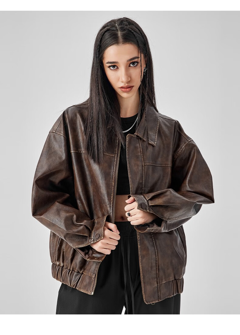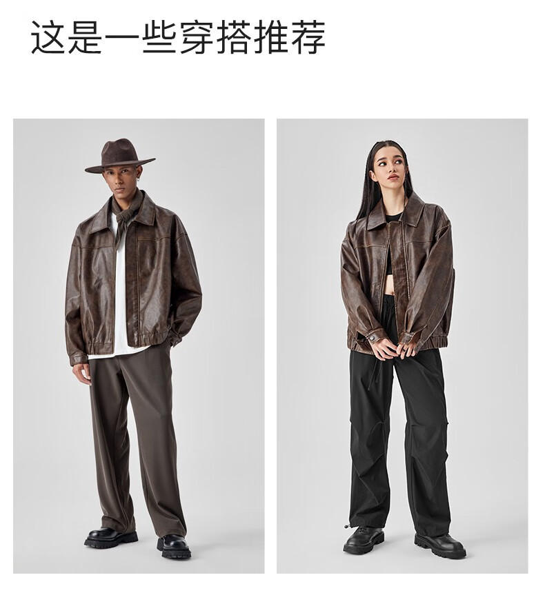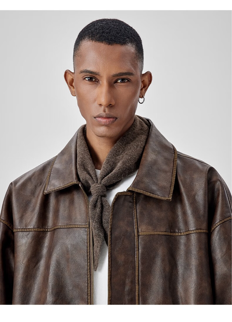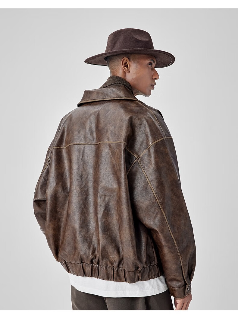 BODYDREAM新复古回潮做旧PU皮衣外套男旷野美拉德穿搭美式街头休闲机车夹克 深棕色 4XL