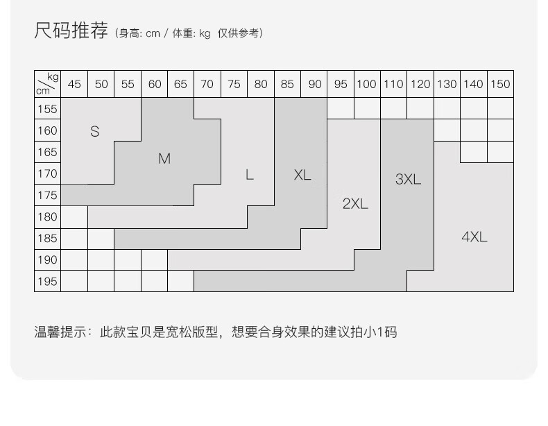 China (cm) 160-165/84-86 165-170 / 88-90 167-172 / 92-96 168-173 / 98-102 170-176 / 106-110