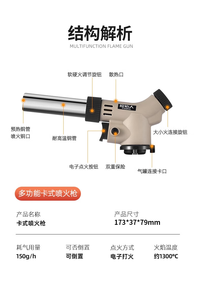 Primitive spray gun hand-held card ignition roasting gun singeing baking household gas igniter flame gun head double insurance luxury model can be inverted