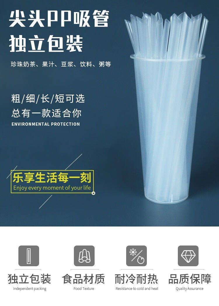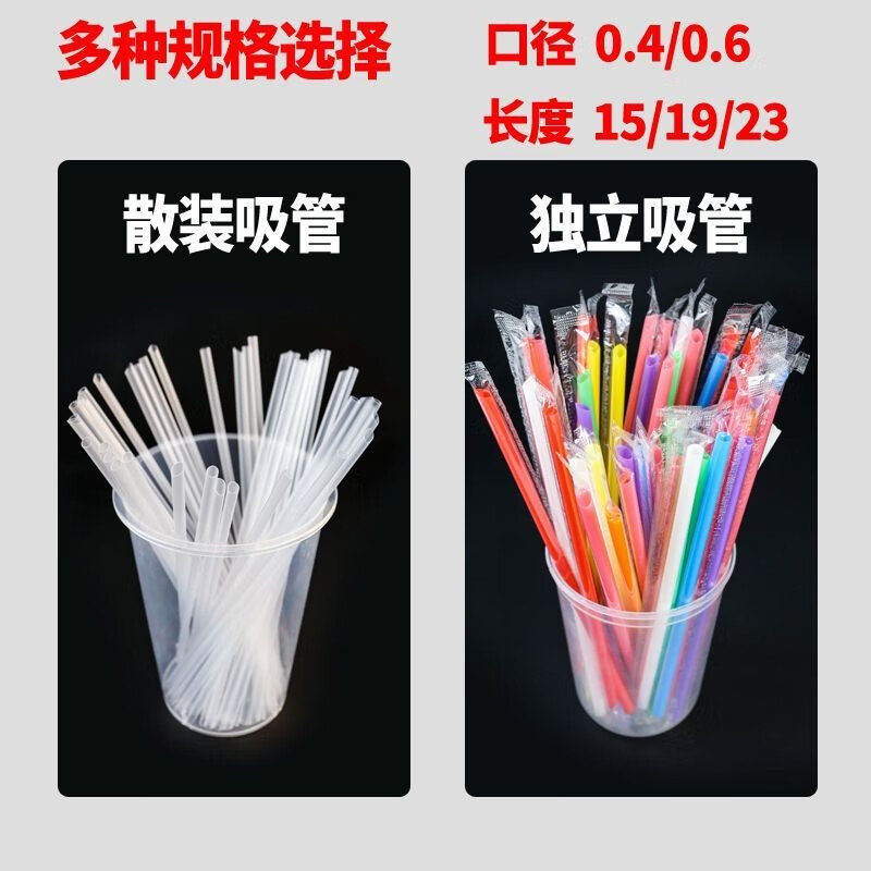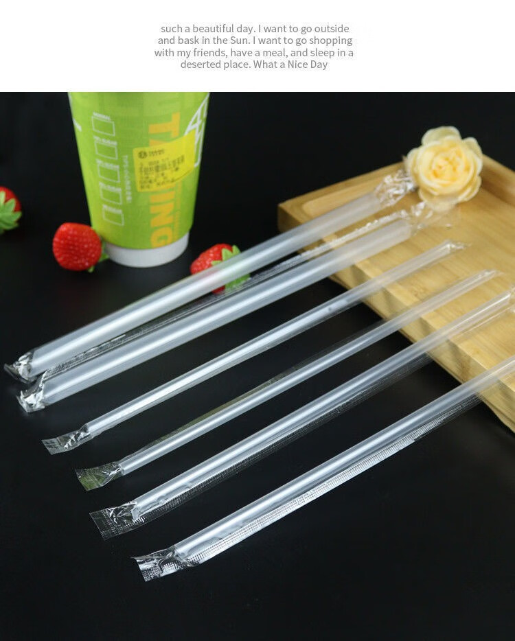 Set of disposable soy milk straws, transparent colorful thin straws, independent commercial food-grade plastic straws in bulk, individually packaged, hardened, 16*0.6cm, 100 pieces
