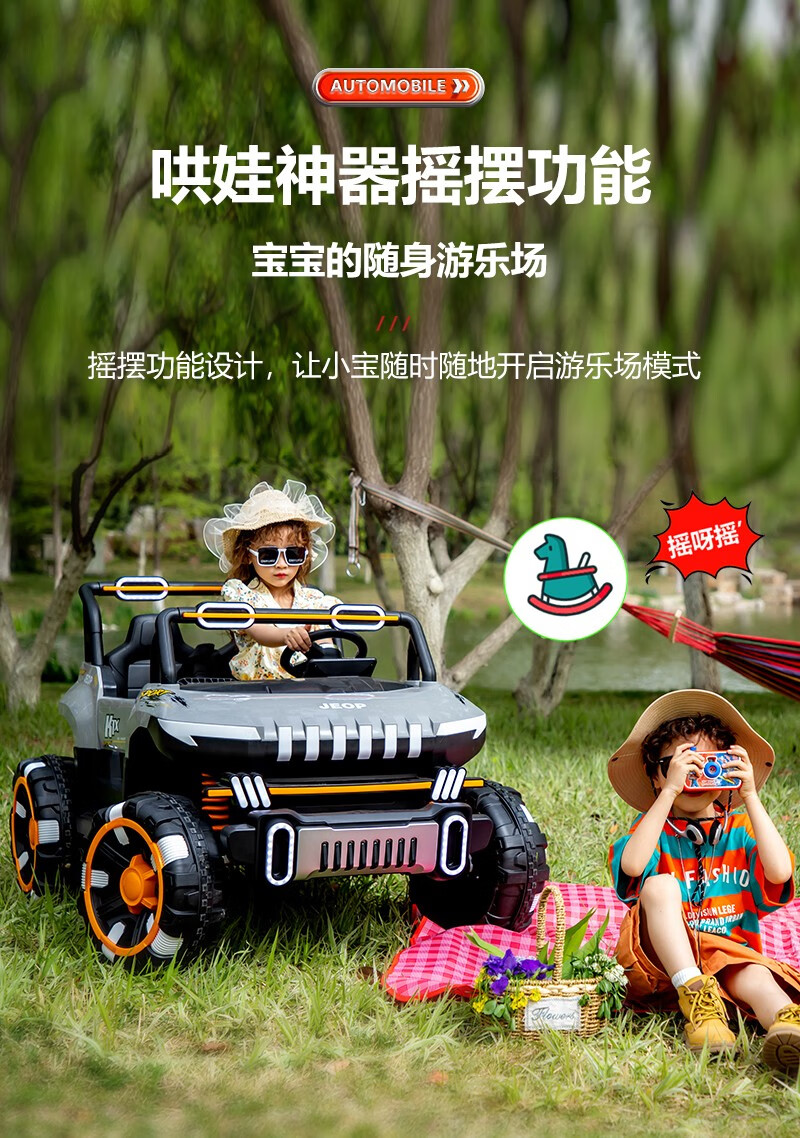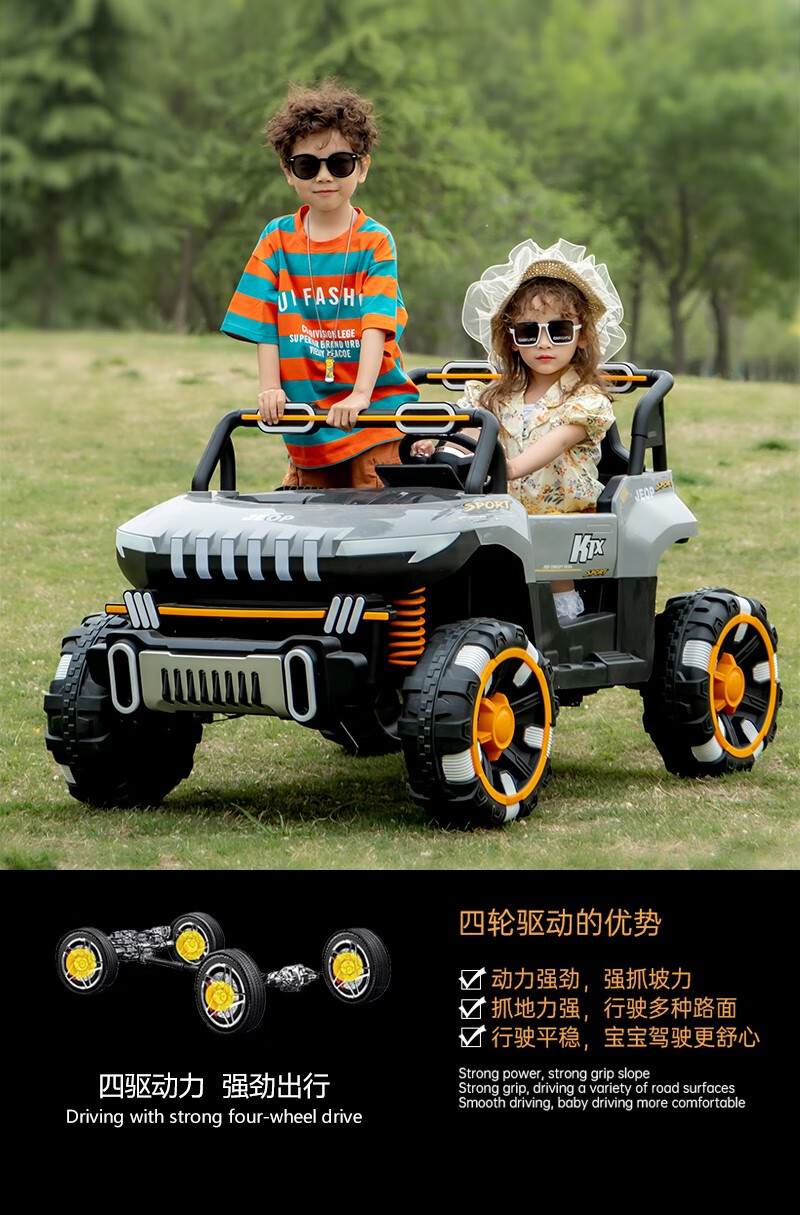 Kangshuai Aibeimei children's electric car can seat one person, four-wheel drive remote control car can seat adults, double toy child stroller, gray 390 motor + 12v7 + hard wheel hard seat
