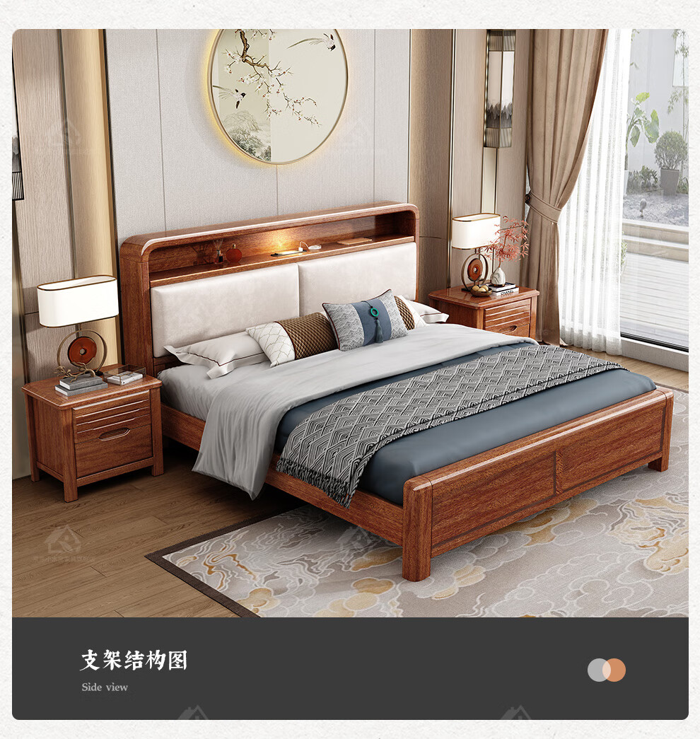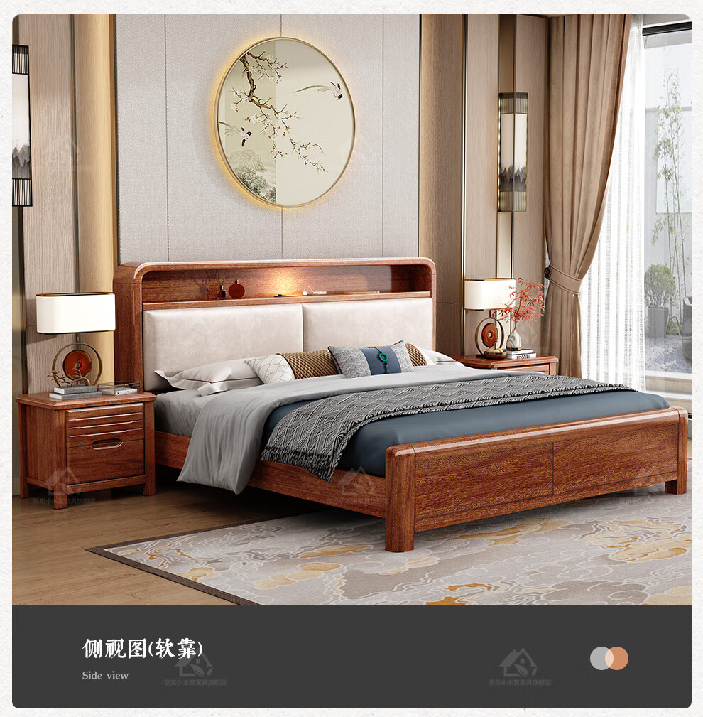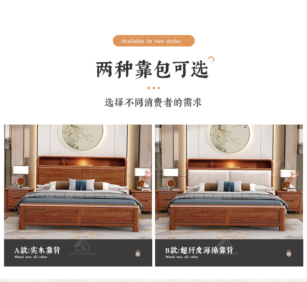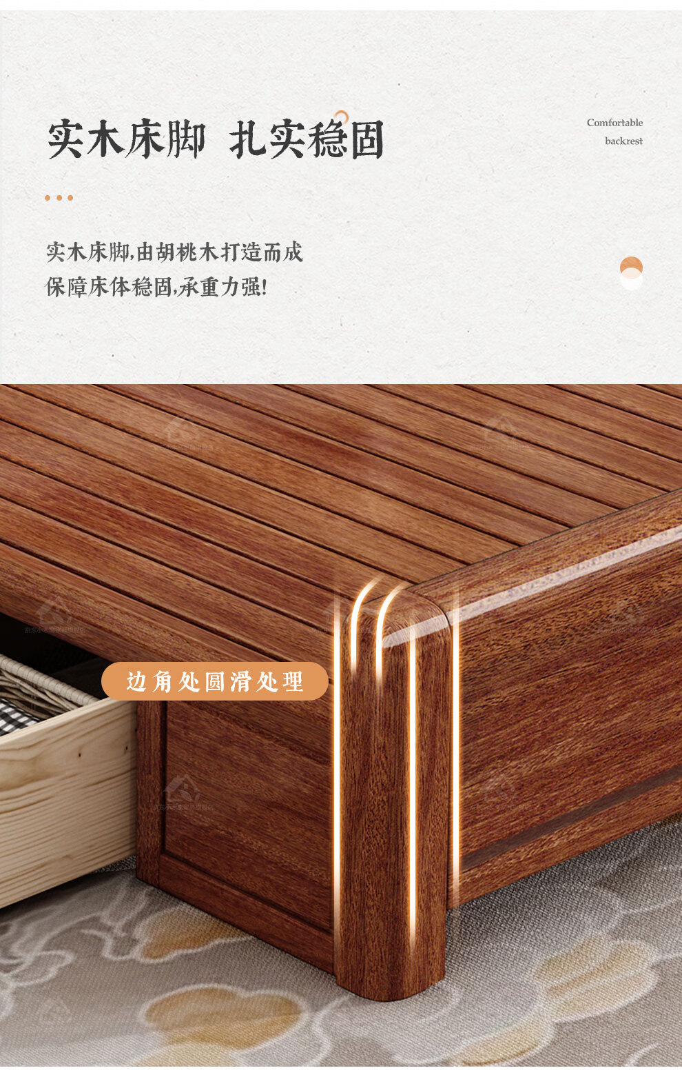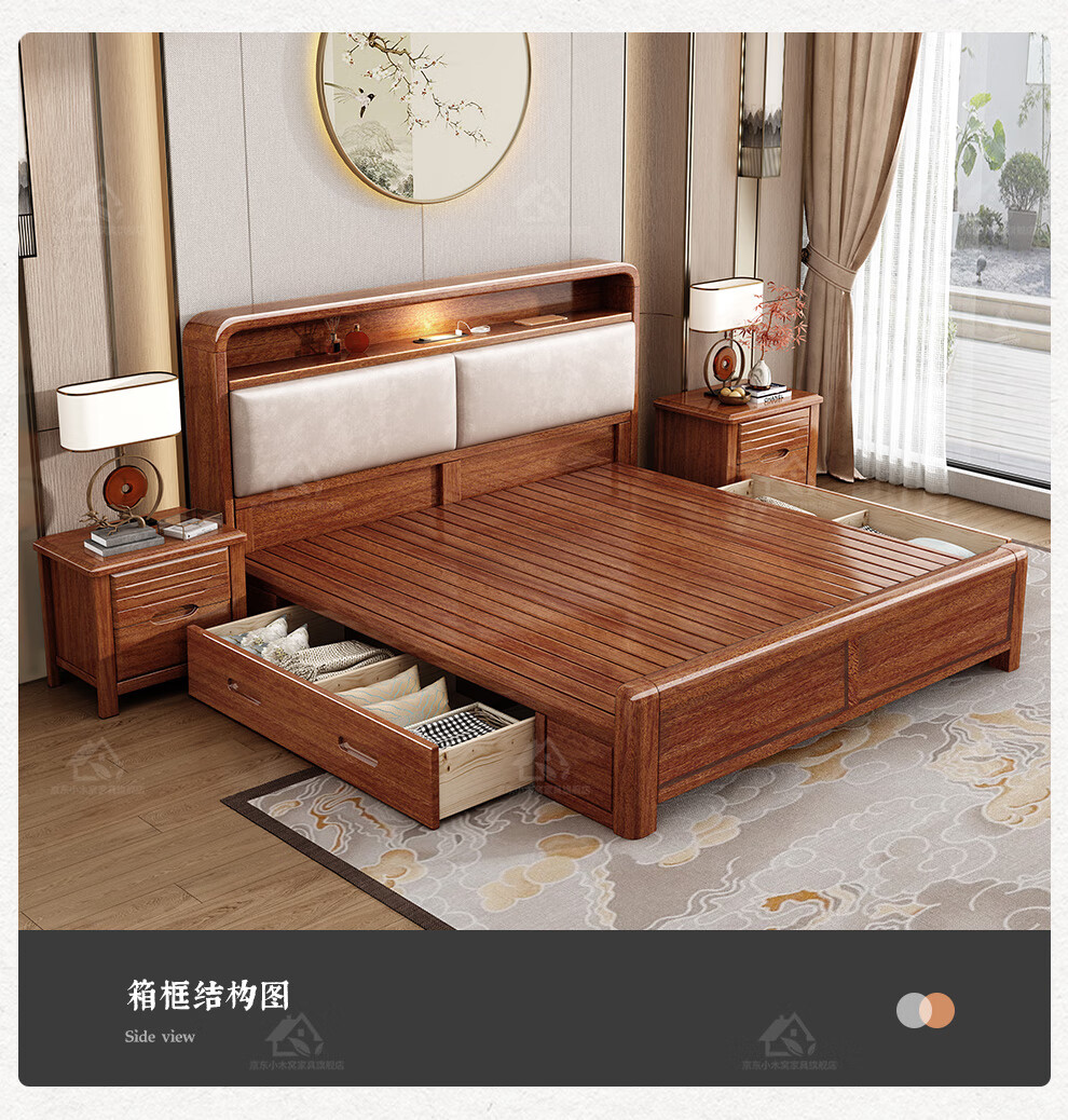 Small wooden nest (XIAOMUWO) solid wood bed modern Chinese style solid wood bed double bed economical single bed soft backrest simple wooden bed master bed bed bracket structure 1500*2000 solid wood backrest (walnut color)