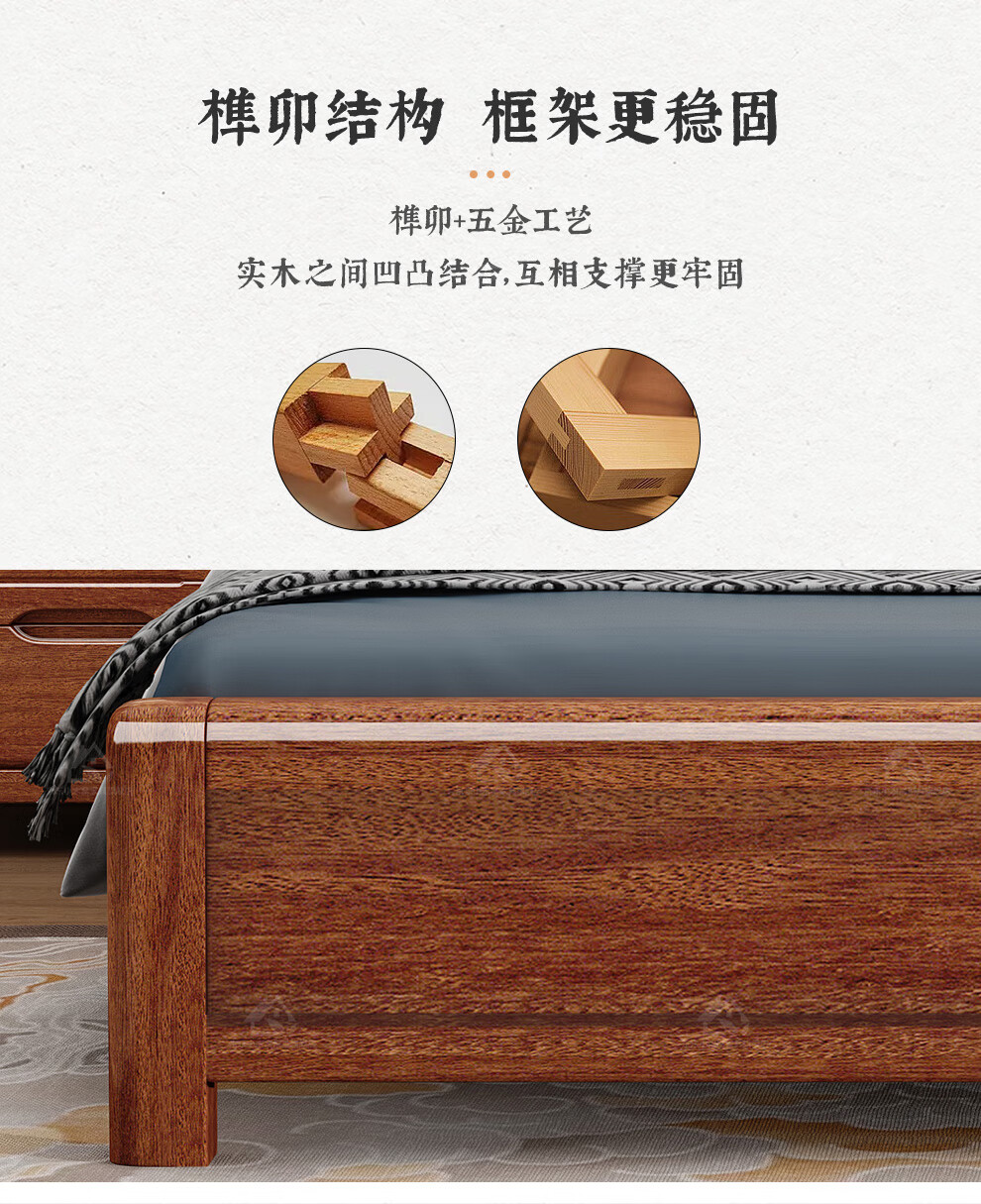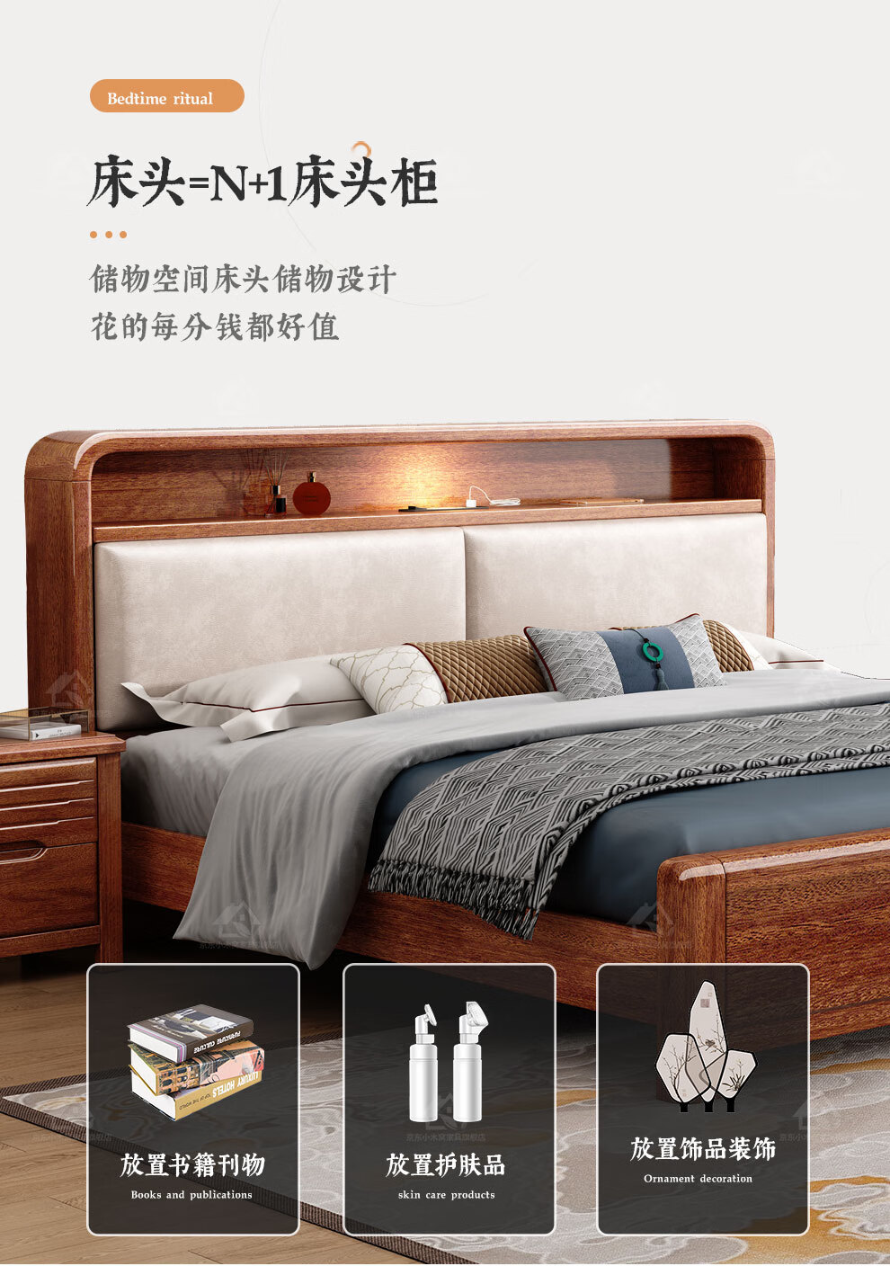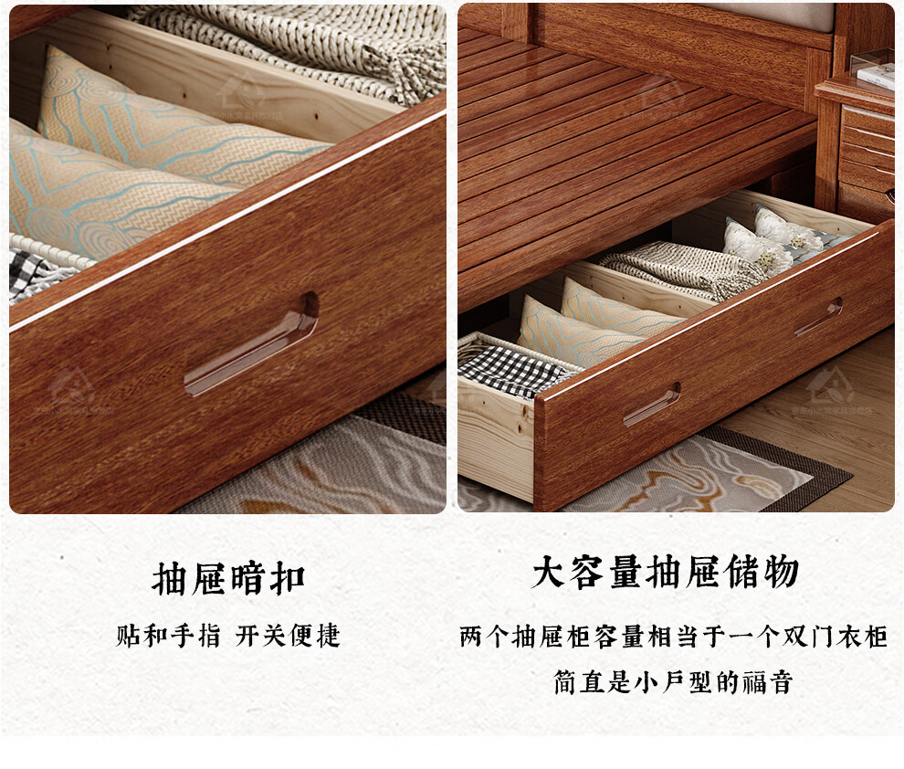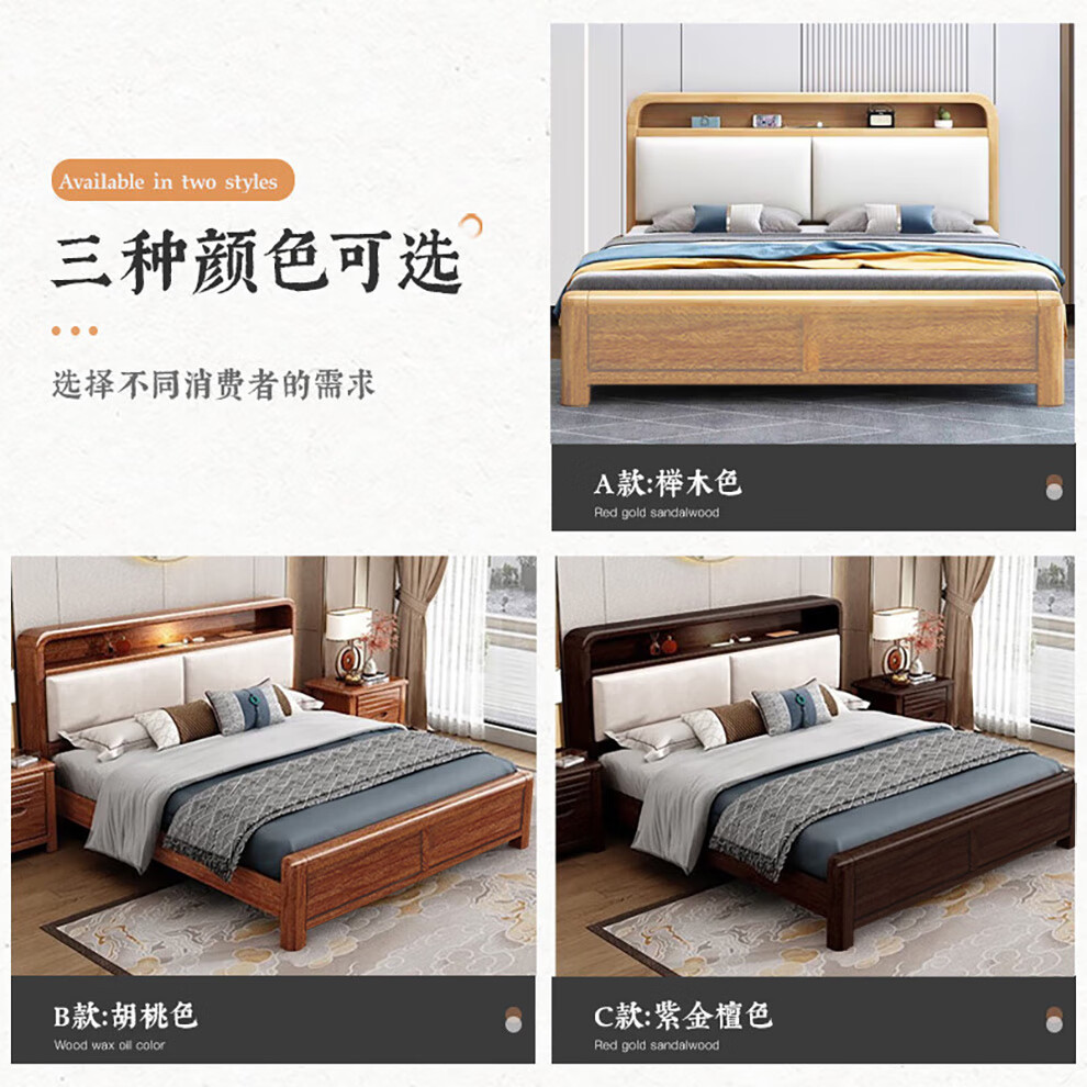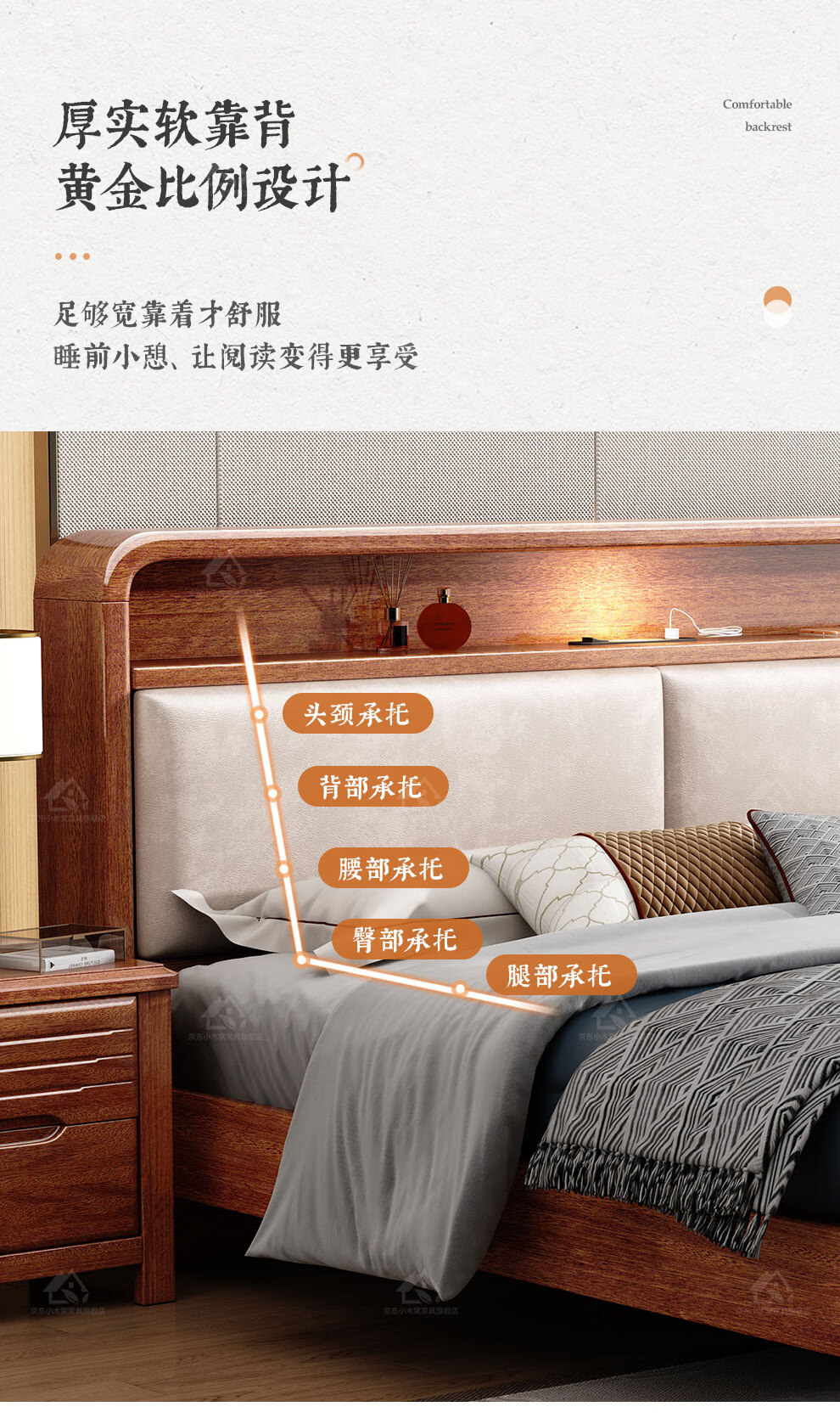 Small wooden nest (XIAOMUWO) solid wood bed modern Chinese style solid wood bed double bed economical single bed soft backrest simple wooden bed master bed bed bracket structure 1500*2000 solid wood backrest (walnut color)
