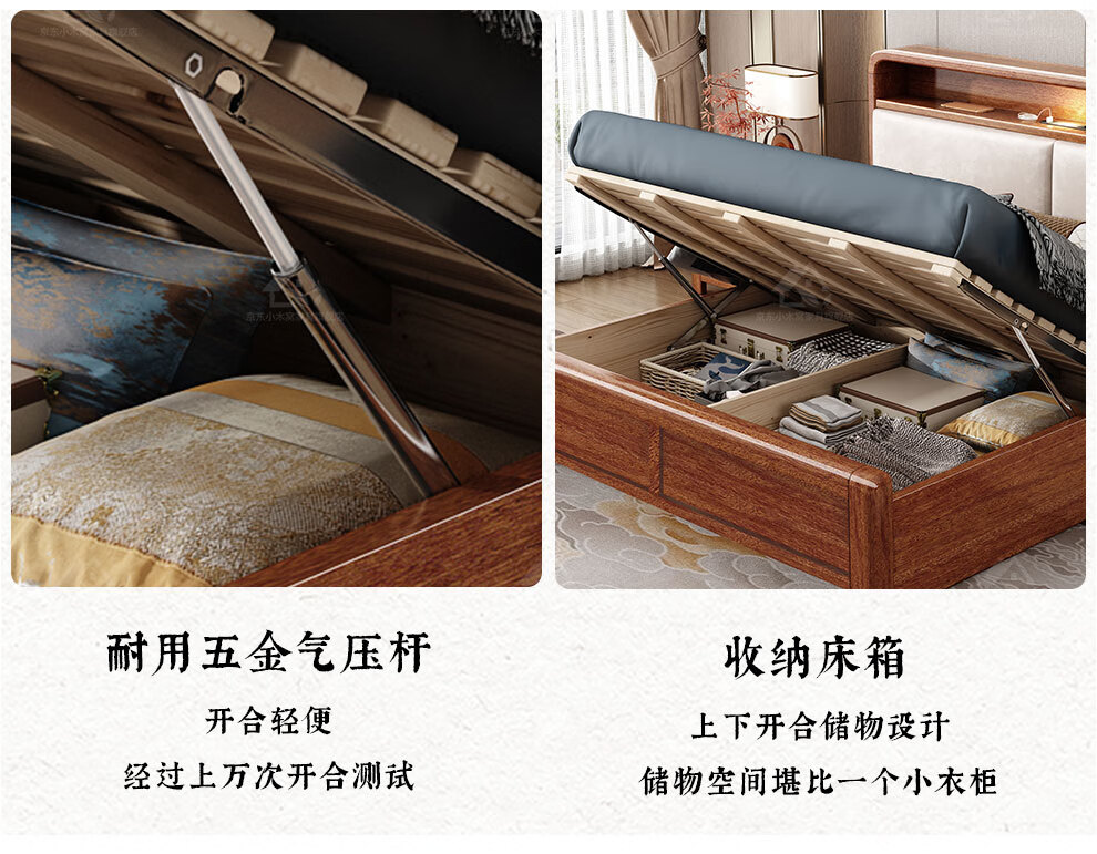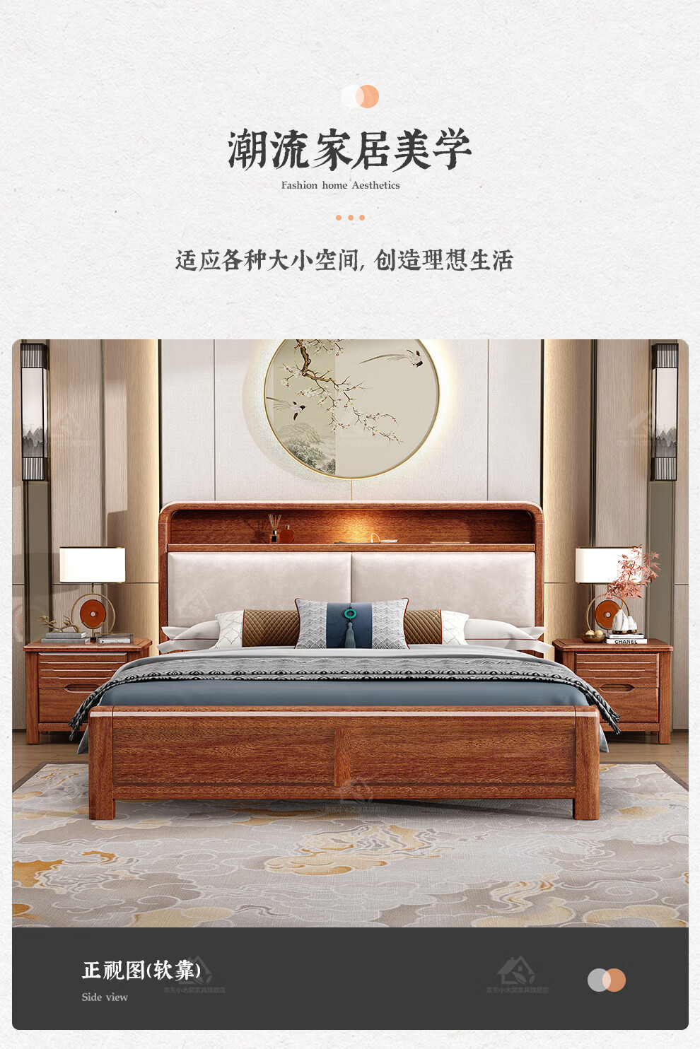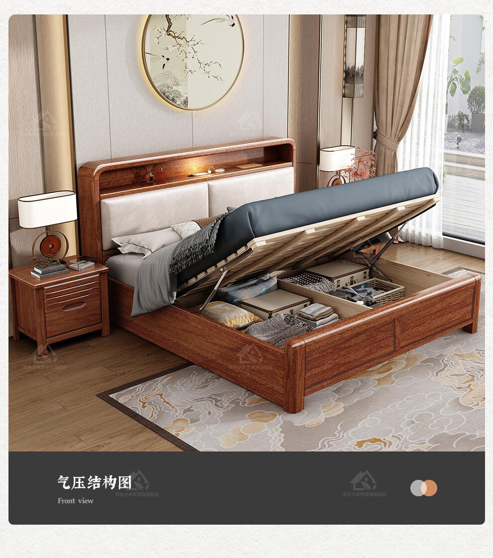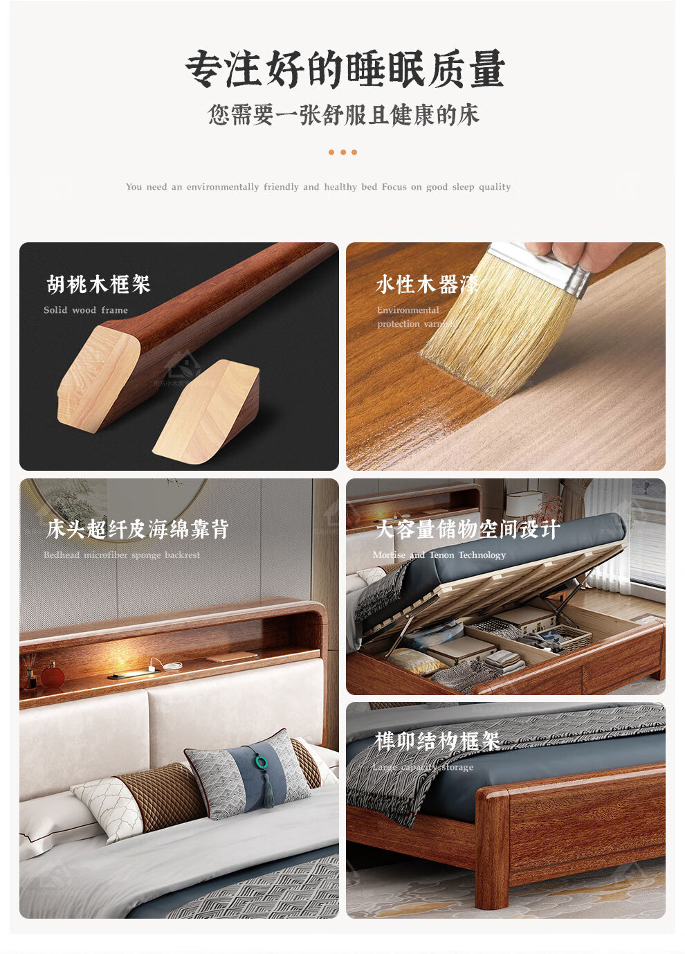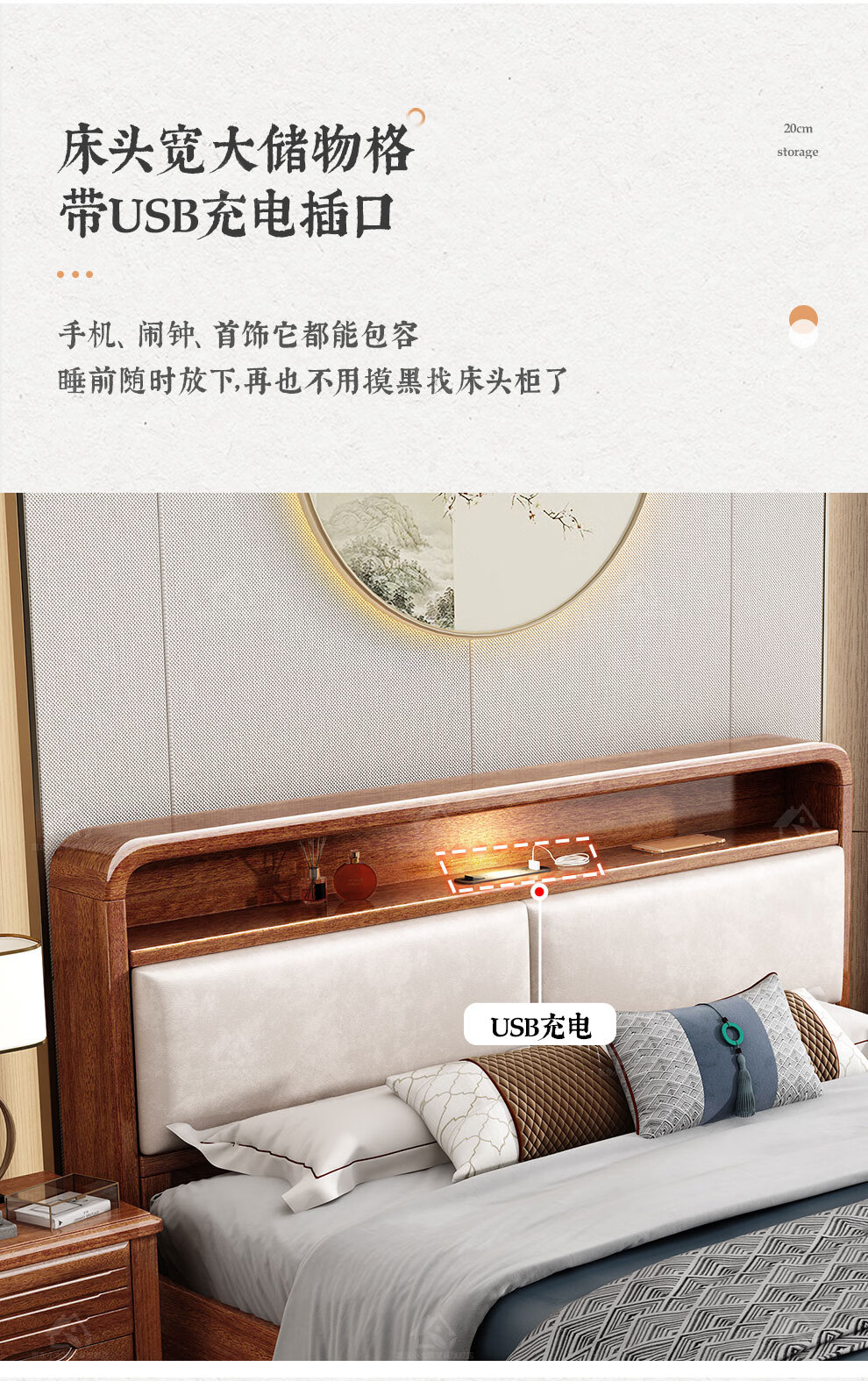 Small wooden nest (XIAOMUWO) solid wood bed modern Chinese style solid wood bed double bed economical single bed soft backrest simple wooden bed master bed bed bracket structure 1500*2000 solid wood backrest (walnut color)