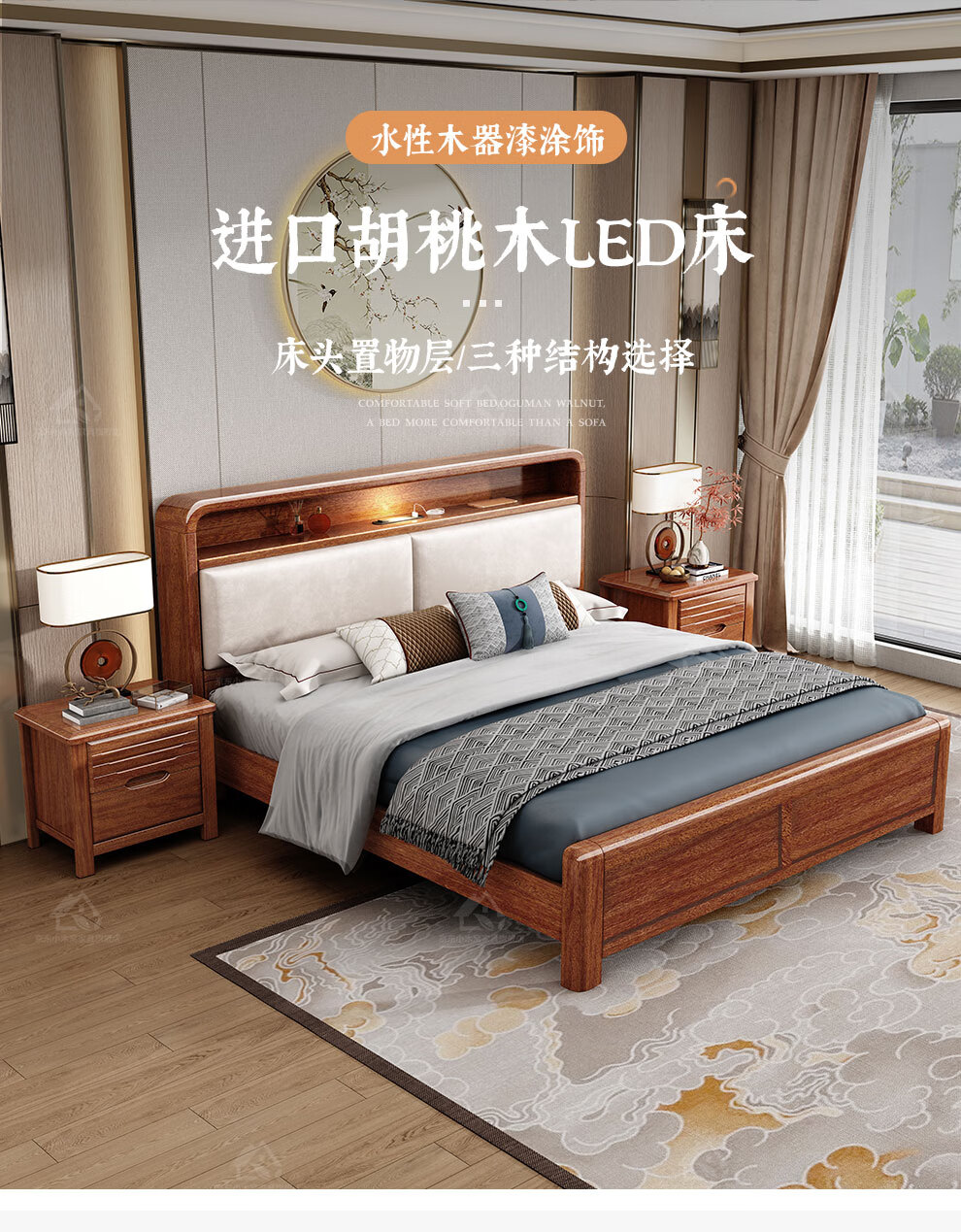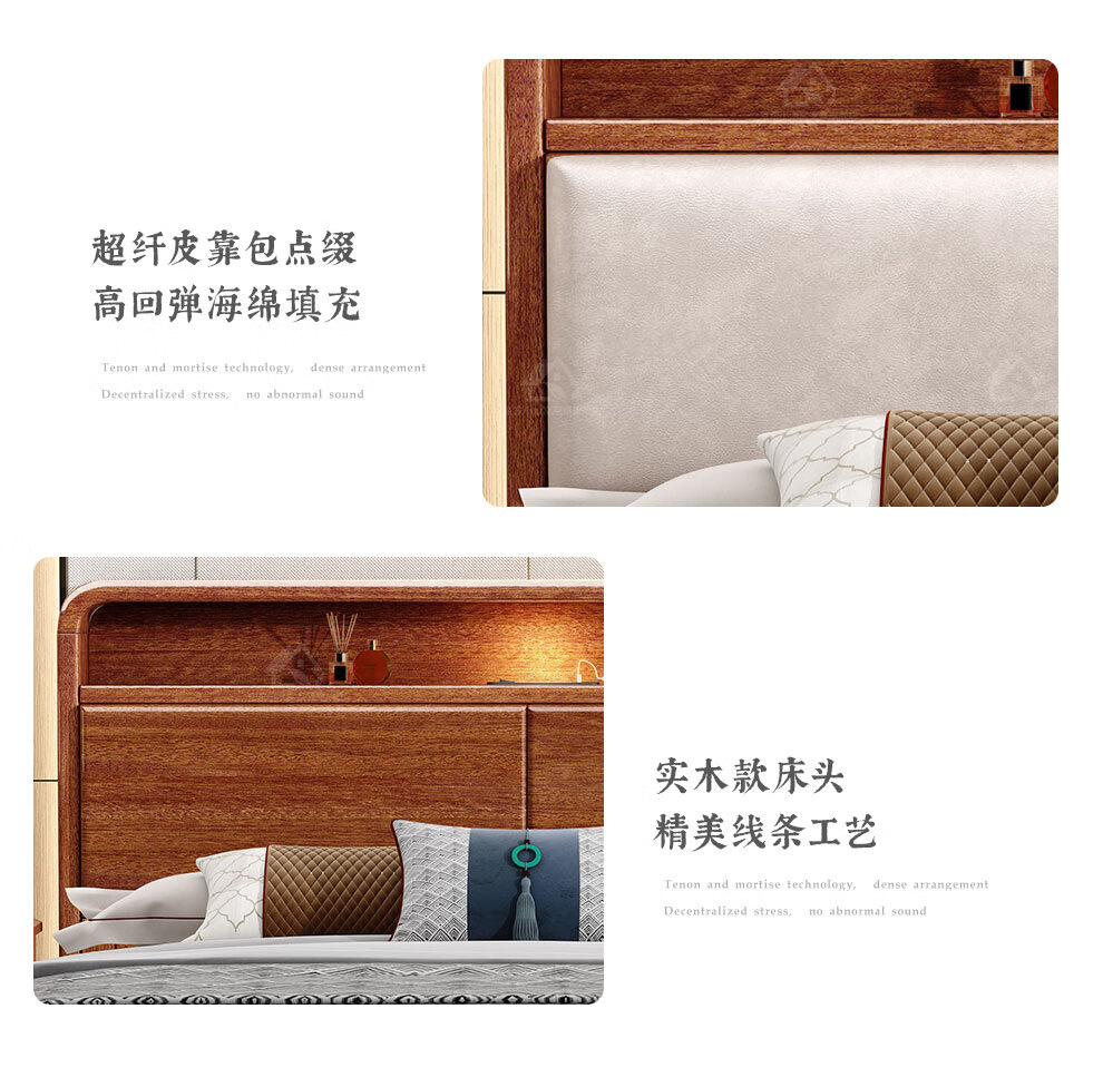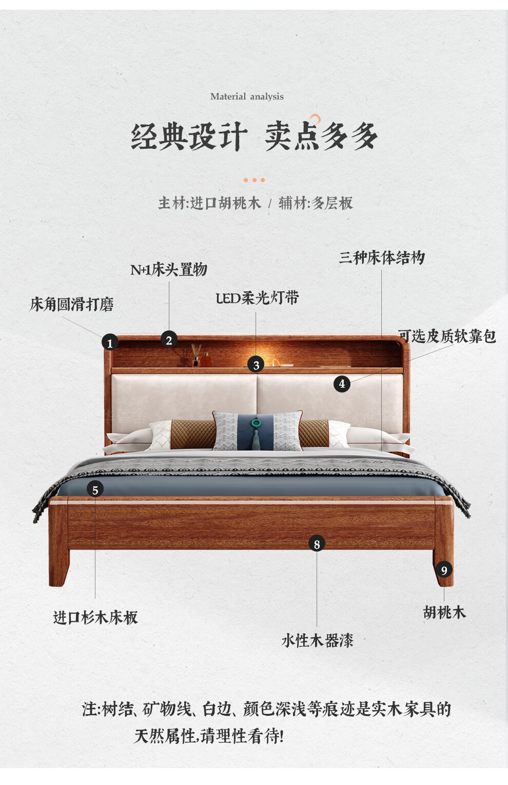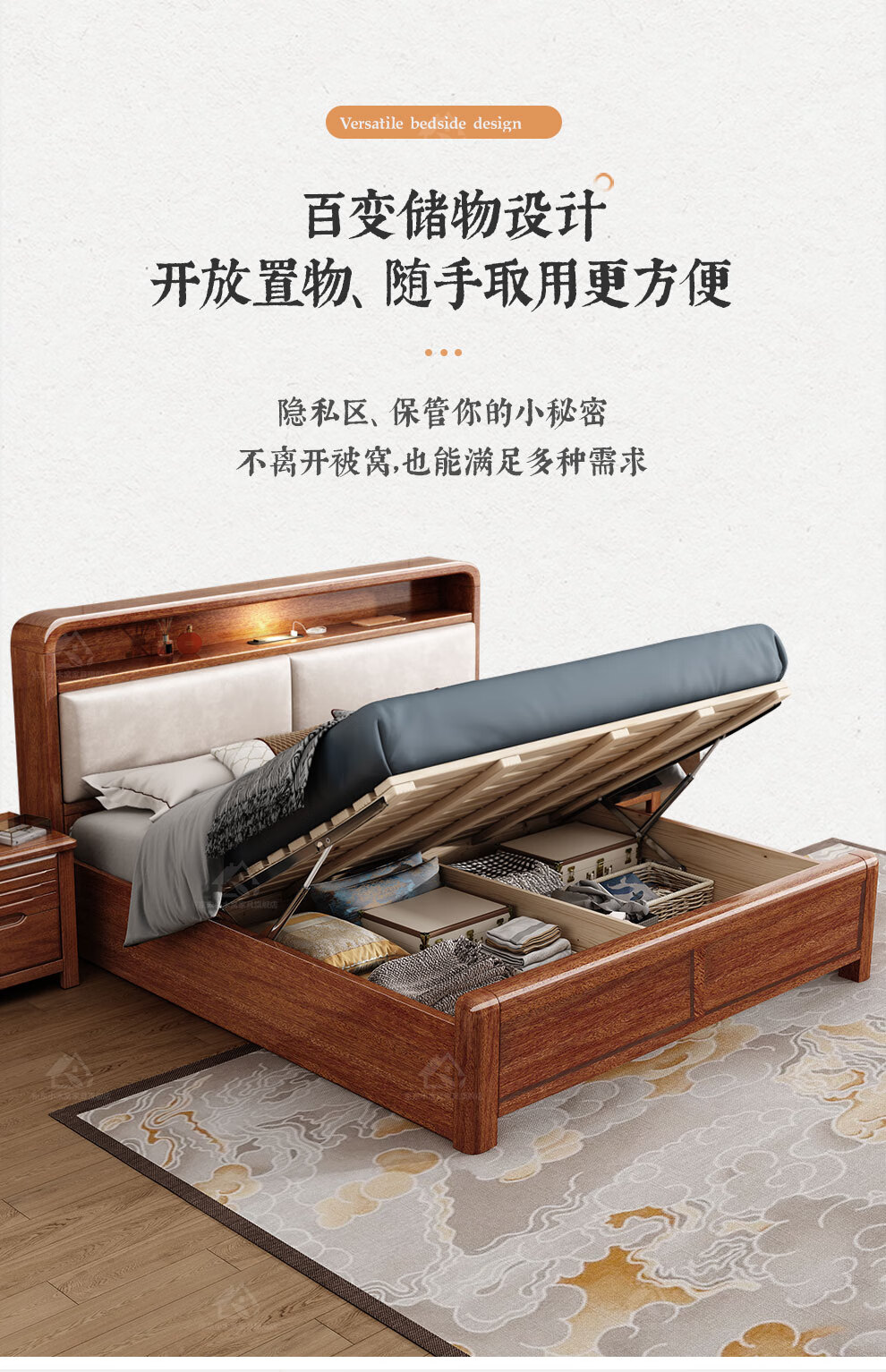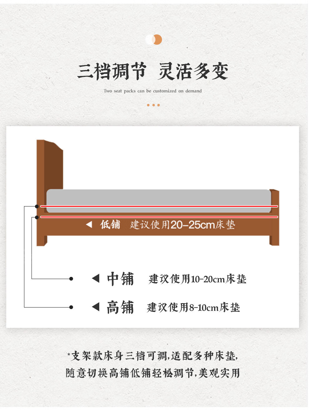 Small wooden nest (XIAOMUWO) solid wood bed modern Chinese style solid wood bed double bed economical single bed soft backrest simple wooden bed master bed bed bracket structure 1500*2000 solid wood backrest (walnut color)