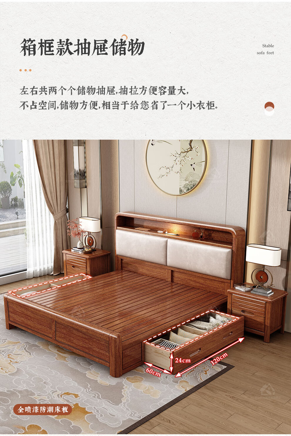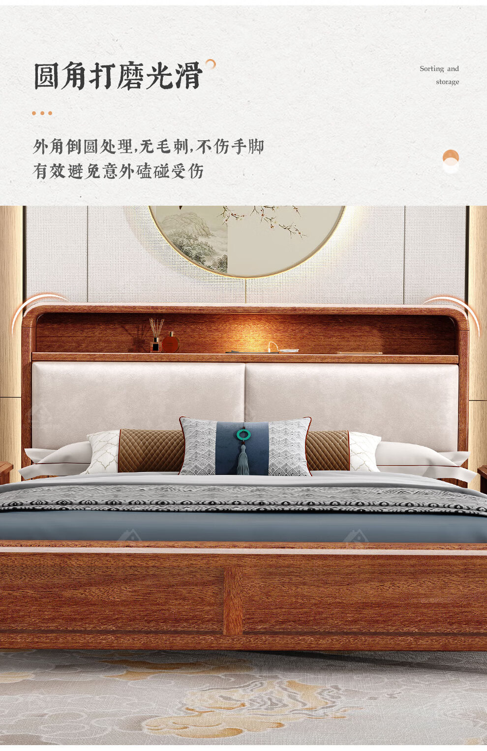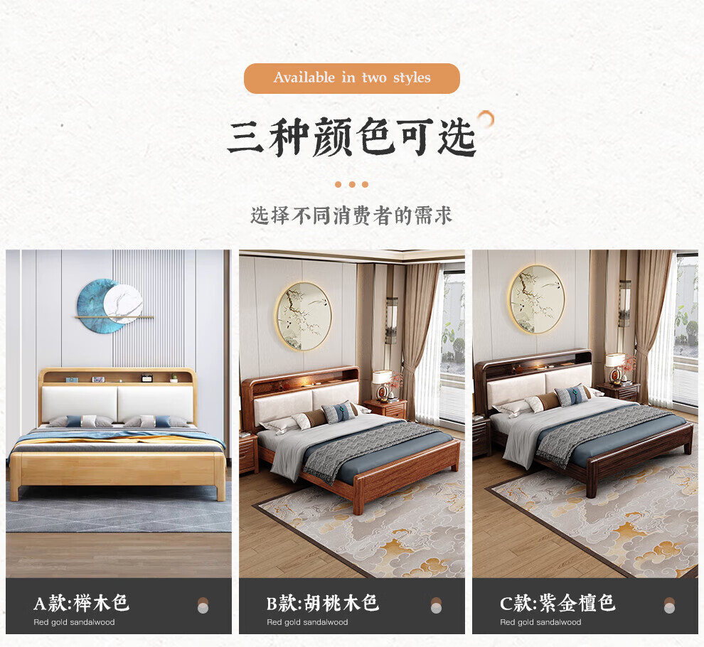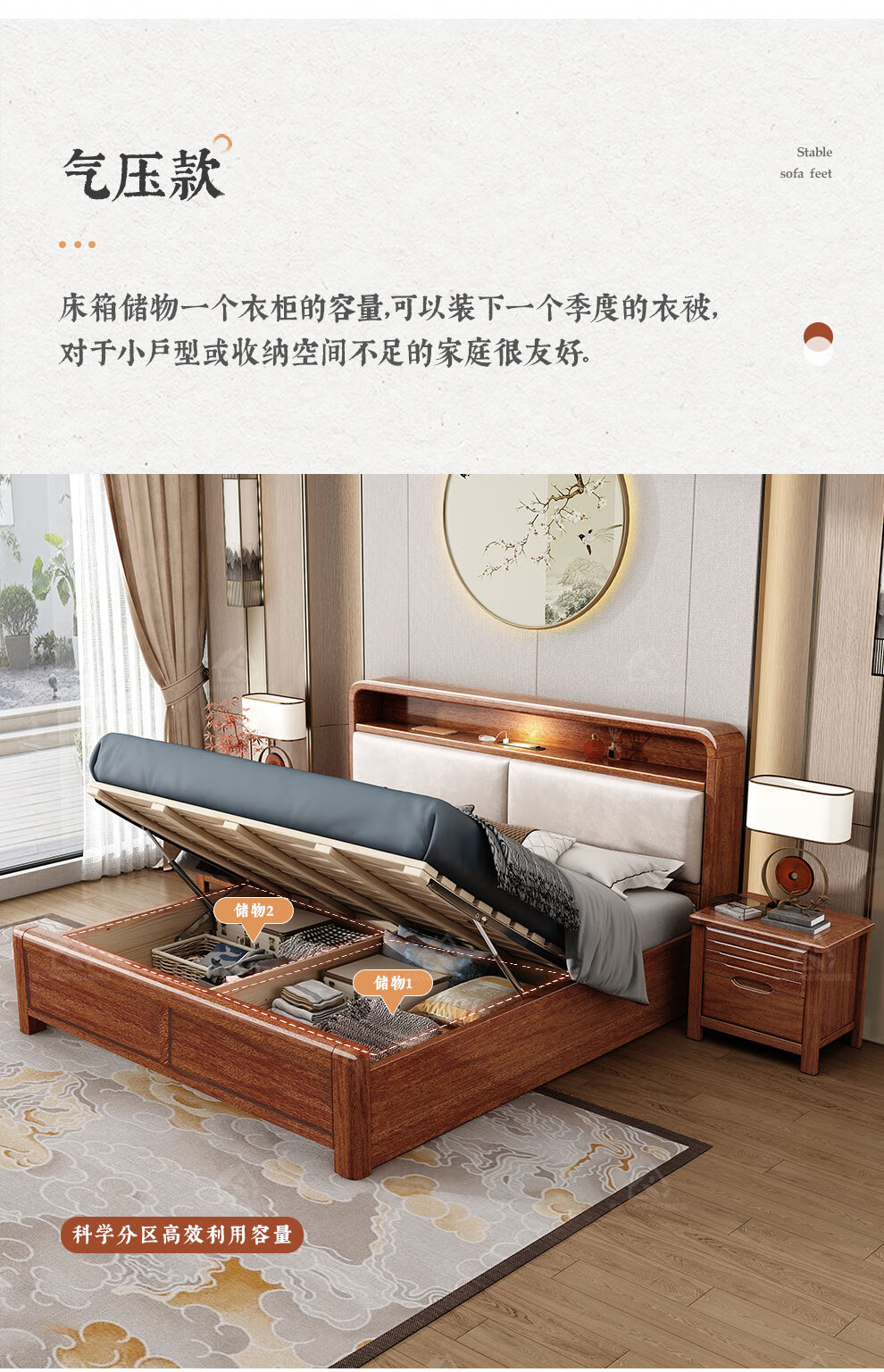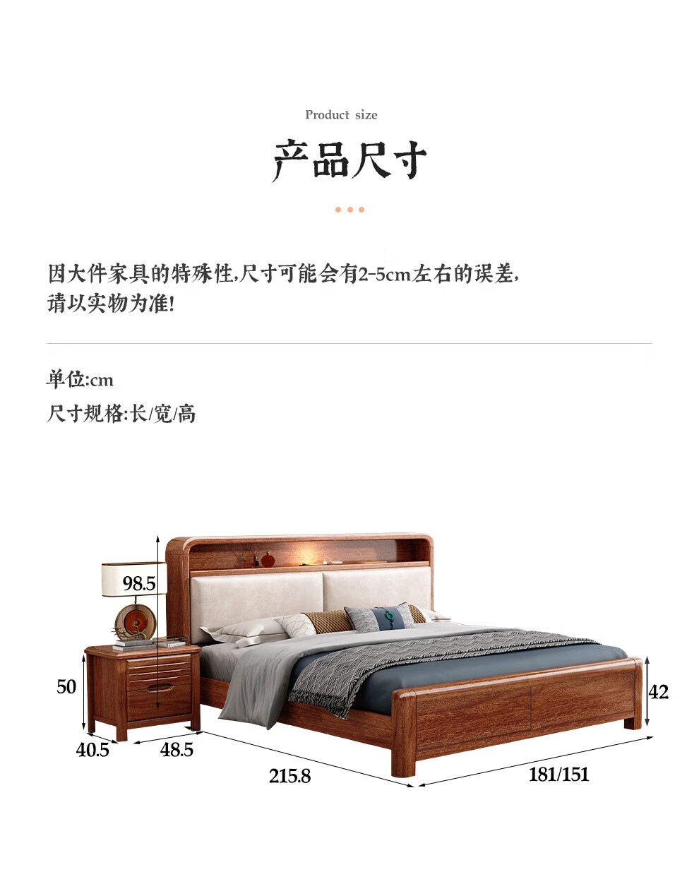 Small wooden nest (XIAOMUWO) solid wood bed modern Chinese style solid wood bed double bed economical single bed soft backrest simple wooden bed master bed bed bracket structure 1500*2000 solid wood backrest (walnut color)