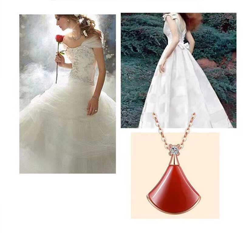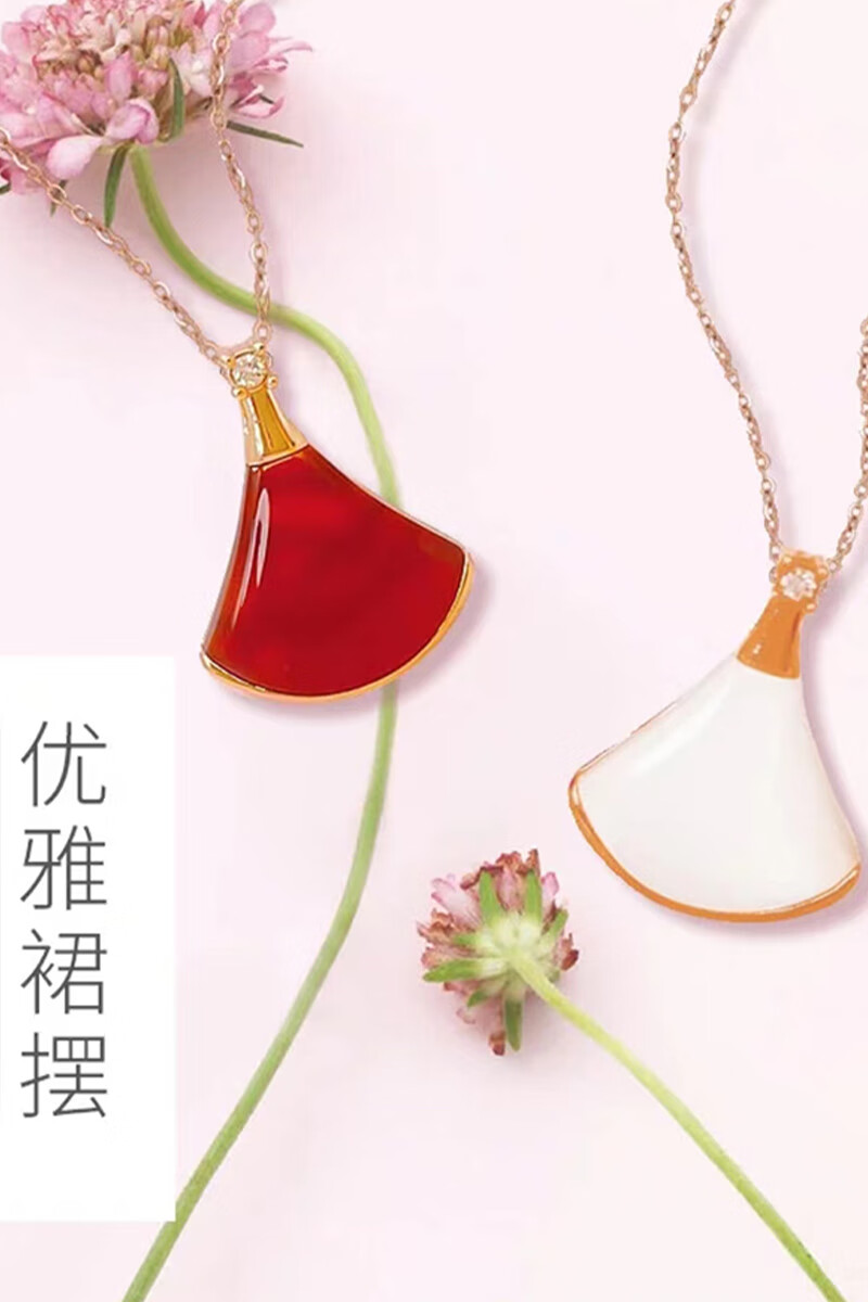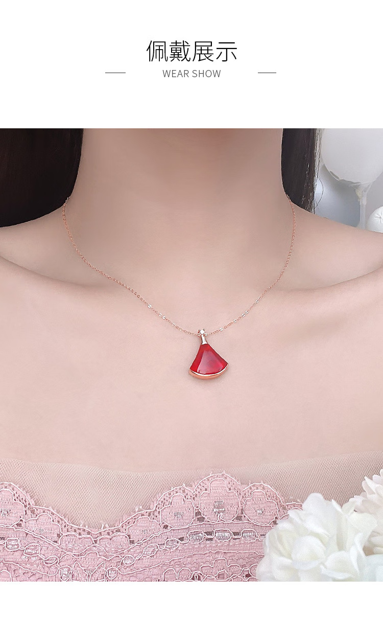 18K gold necklace small skirt pendant color gold rose gold au750 color gold necklace clavicle chain for girlfriend Chinese Valentine's Day gift K gold rose gold (single pendant) 16mm white mother-of-pearl