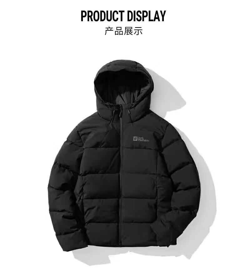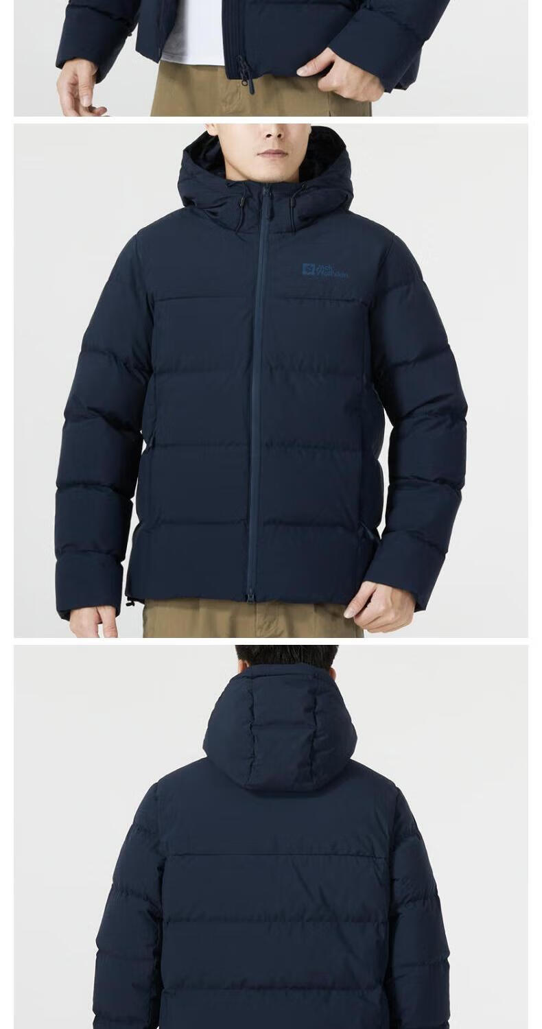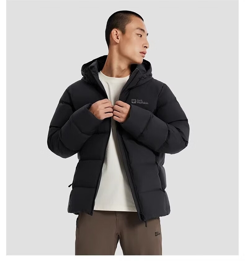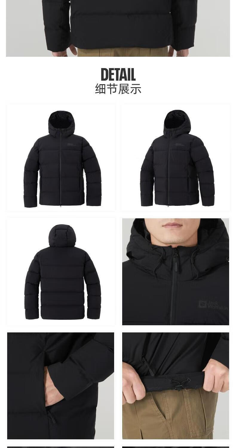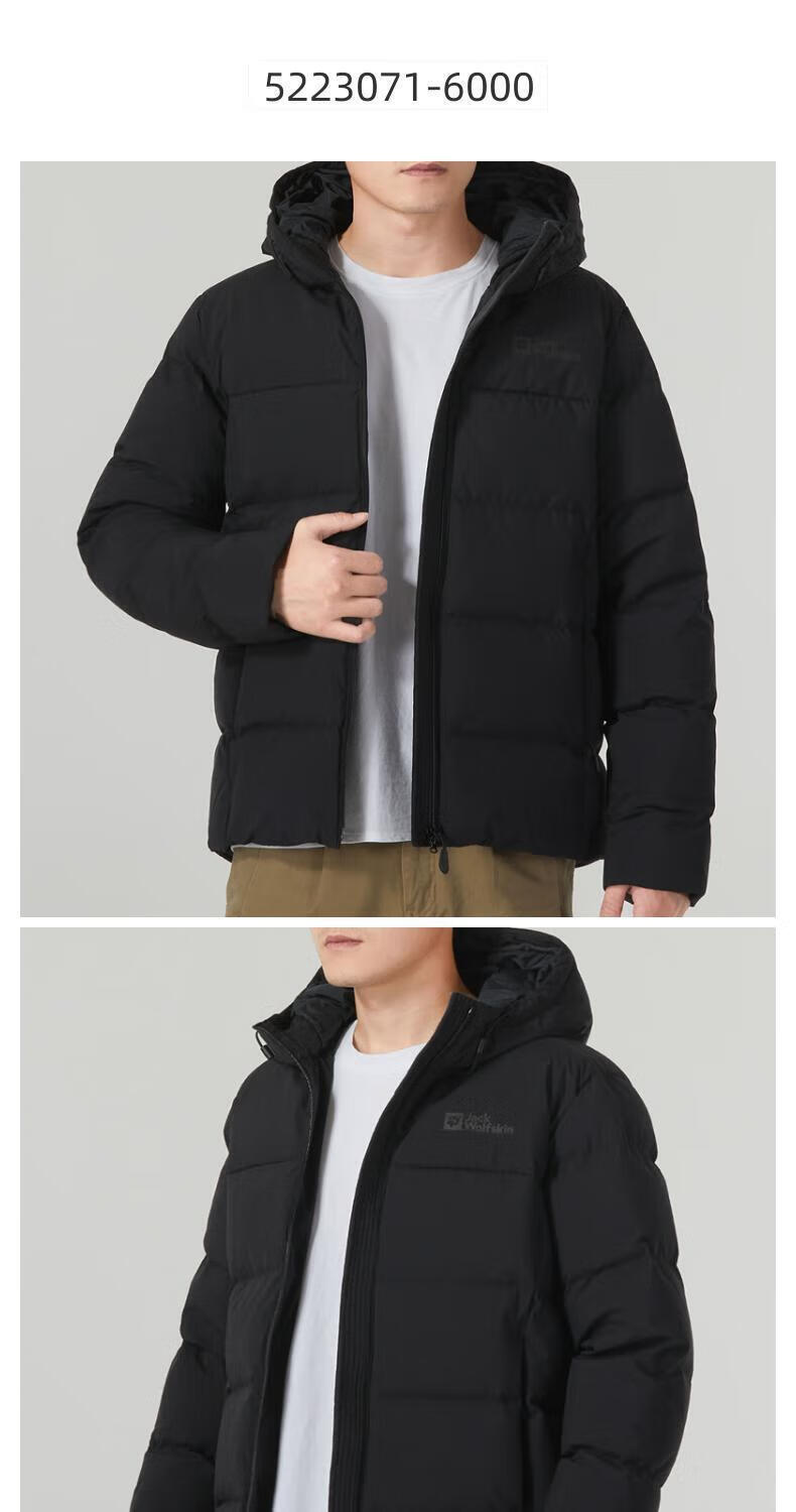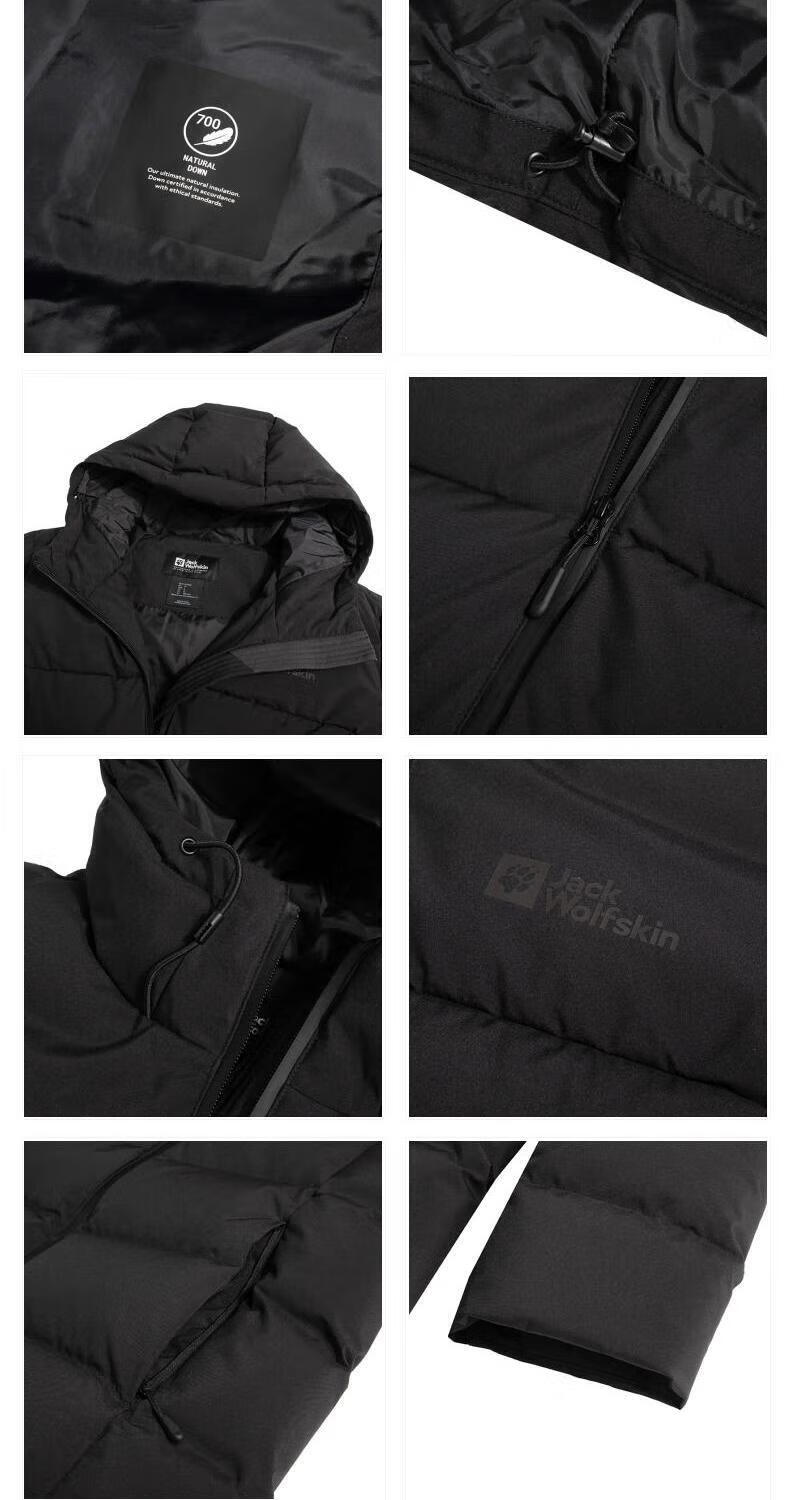 Jack Wolfskin Wolf Claw Down Jacket Men's Autumn and Winter Outdoor Sports Windproof Warm and Coldproof Hooded 700 Puff Down Jacket Men 3071-6000/Black/It is recommended to take one size larger 3XL 185/112A Down Filling Capacity 329G