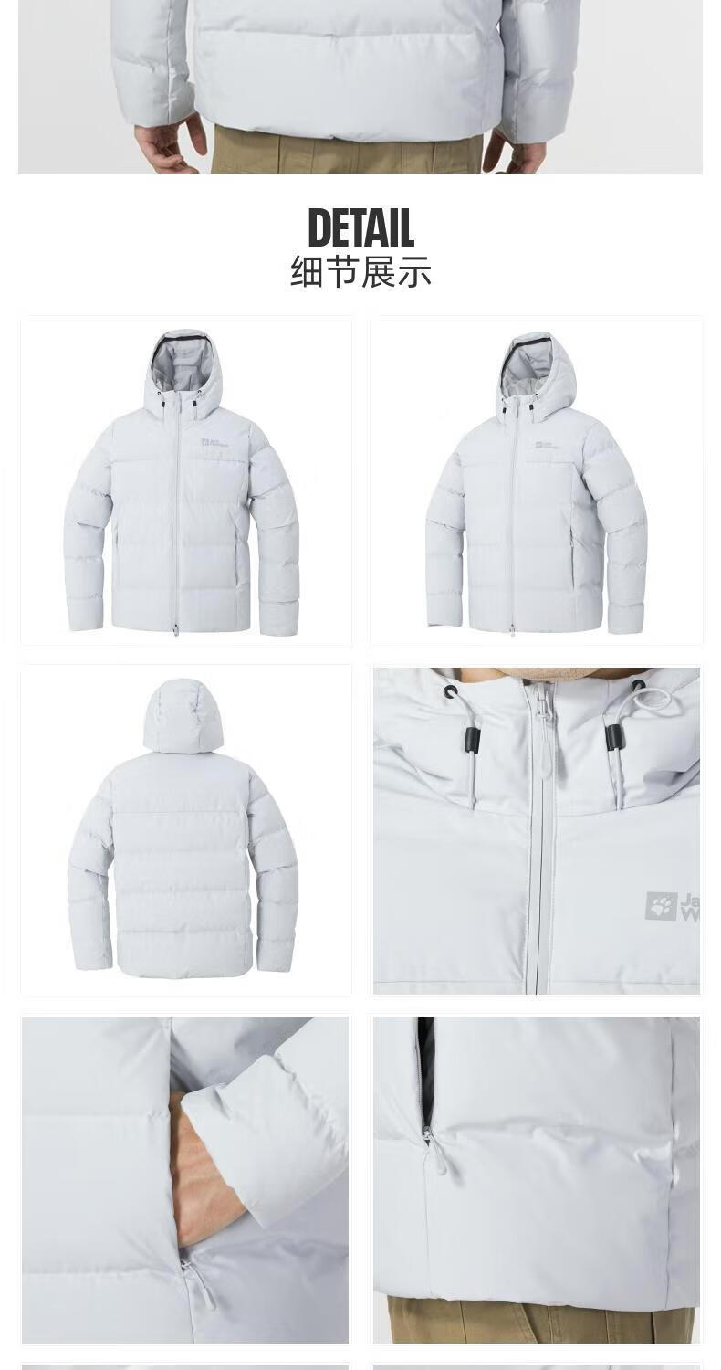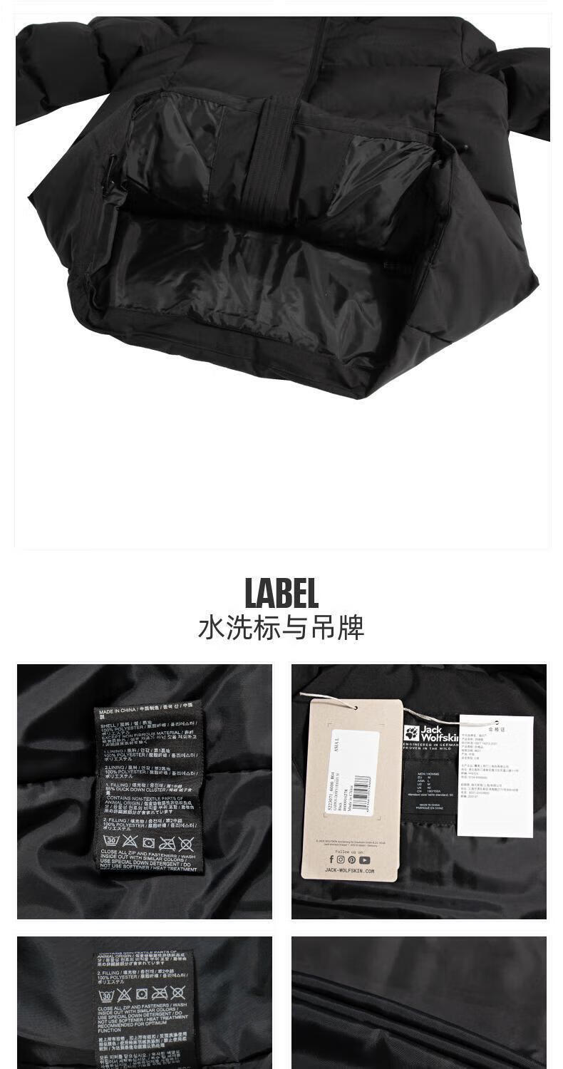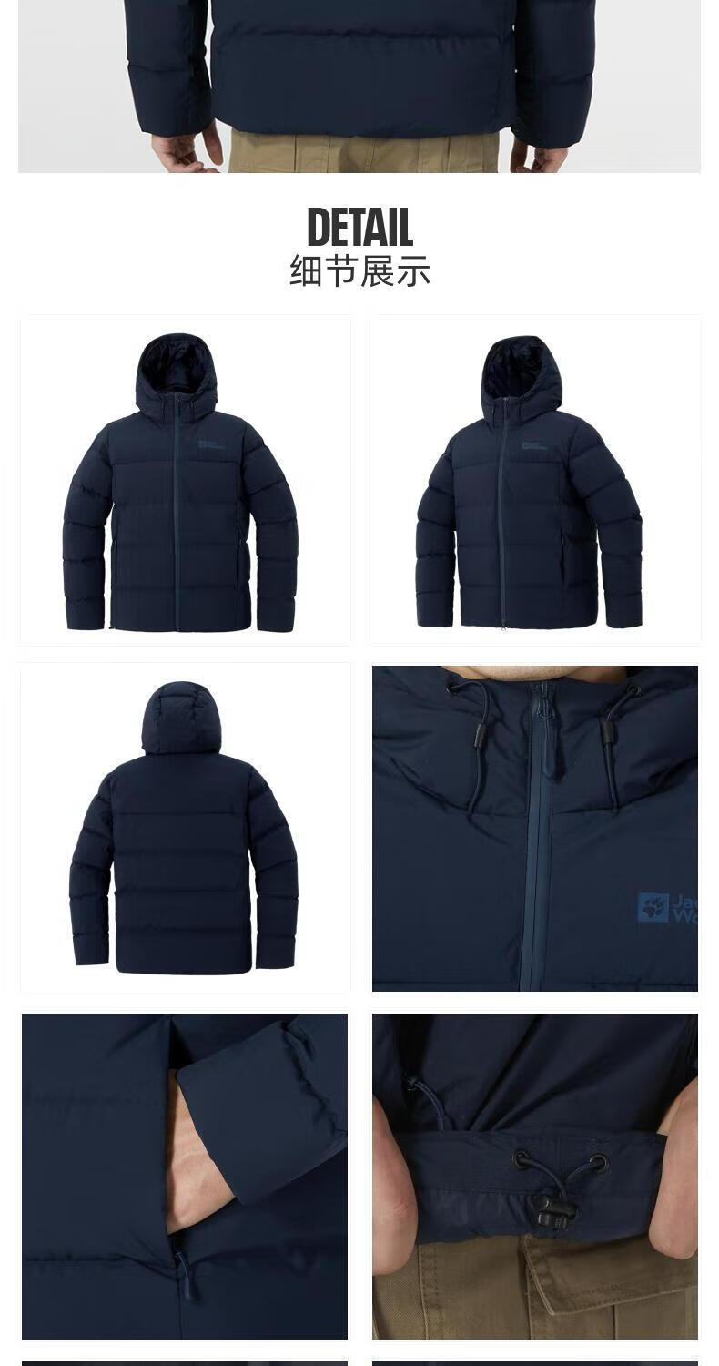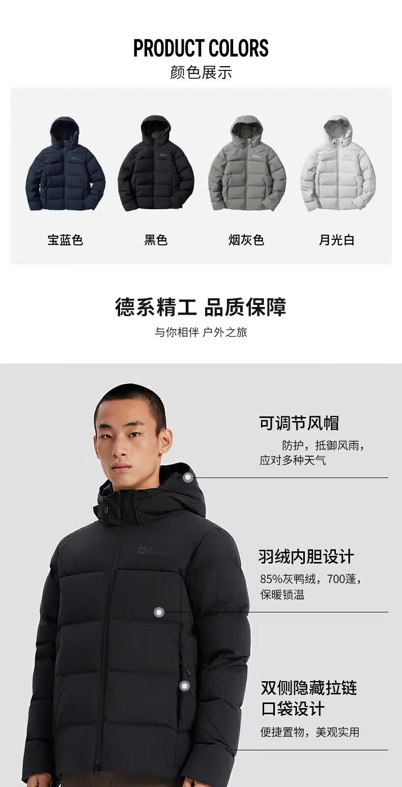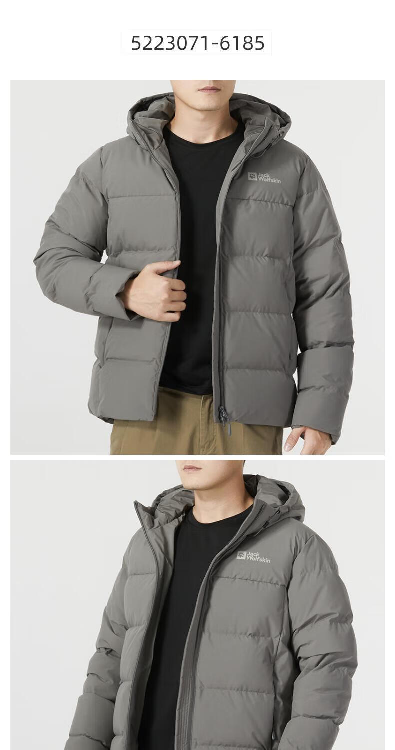 Jack Wolfskin Wolf Claw Down Jacket Men's Autumn and Winter Outdoor Sports Windproof Warm and Coldproof Hooded 700 Puff Down Jacket Men 3071-6000/Black/It is recommended to take one size larger 3XL 185/112A Down Filling Capacity 329G