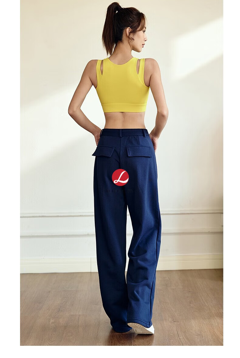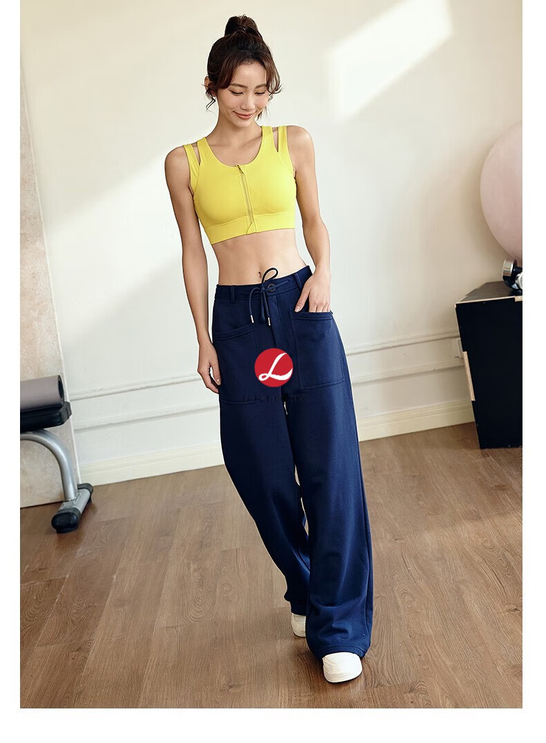 LULULMCCTN Yoga Pants Women's Pilates Running Fitness Loose Slim High Waist Casual Wide Leg Sports Pants Black L