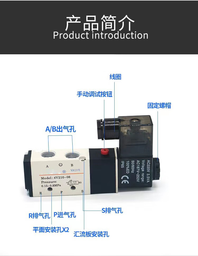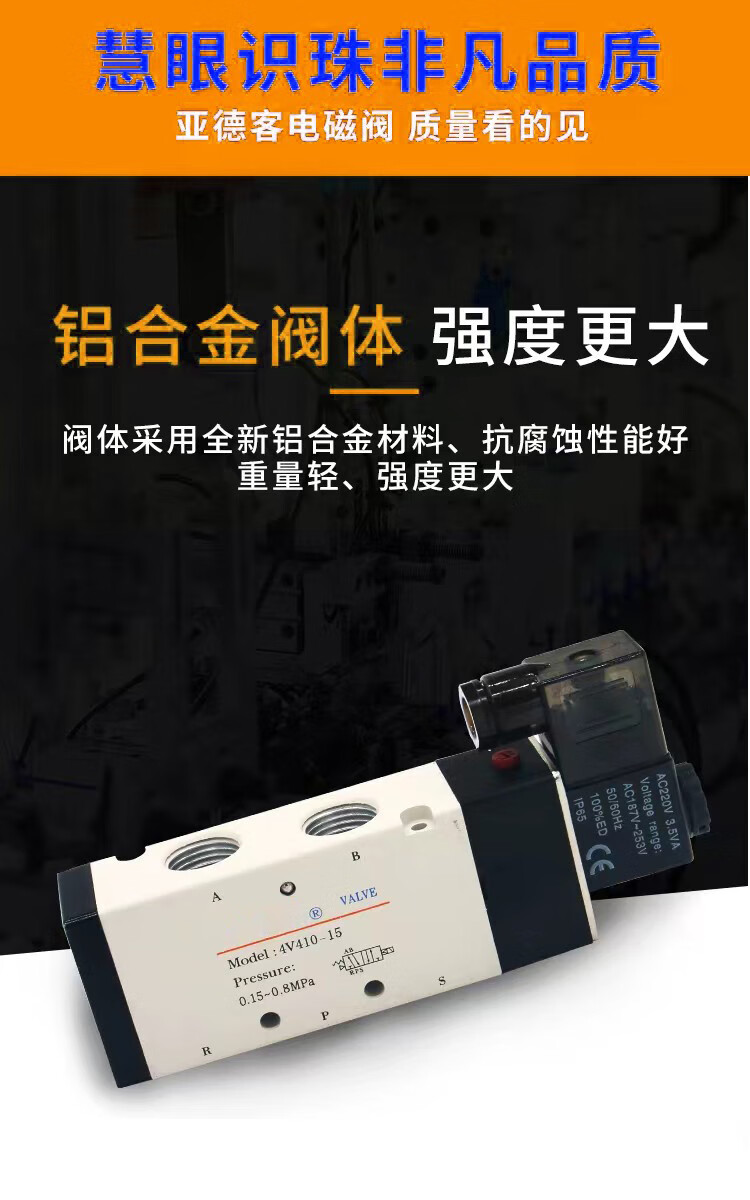 Yadeke solenoid valve 4V210-08V 4V310-10 solenoid electric valve pneumatic control valve 220V air valve 24V 4V210-08DC24V high quality