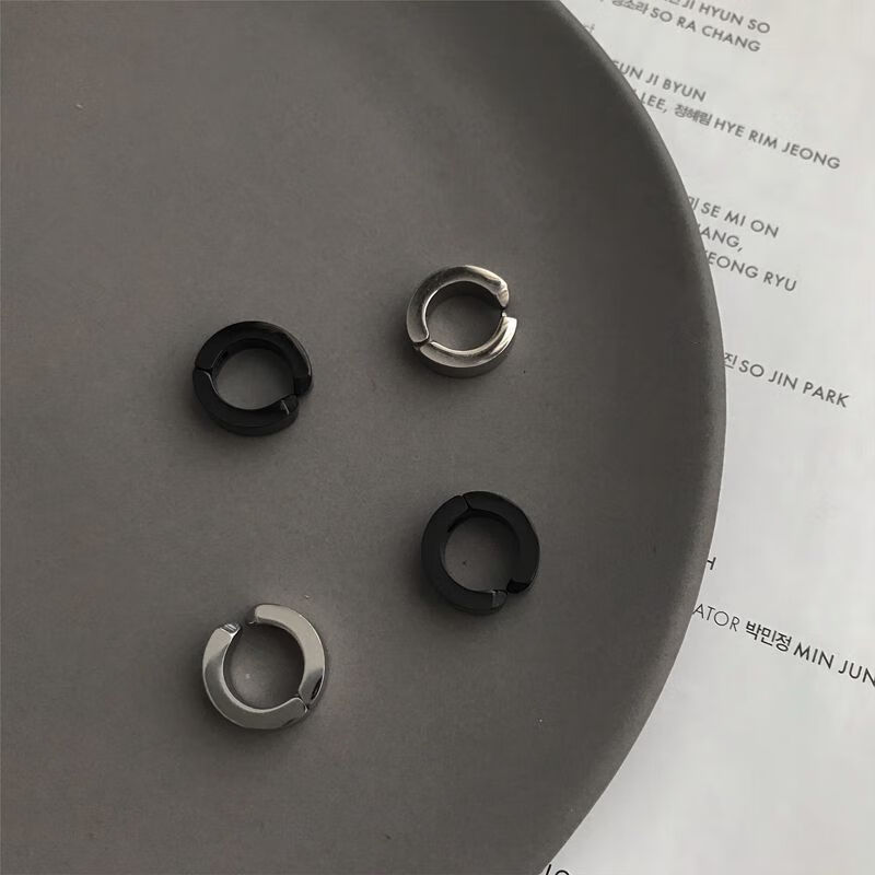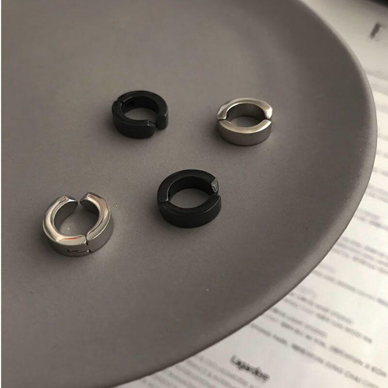 Xiandie minimalist ear bone clip simple and versatile ear clip without piercing female ins student circle black men and women trendy steel color + black ear clip set