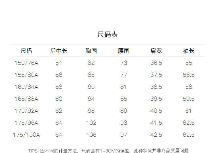 China(cm) 72-76 76-81 81-87 87-93 93-98