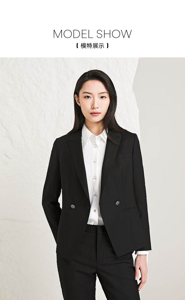 Youngor (YOUNGOR) suit jacket for women, one-button wool blended suit for women, heroic appearance, showing off taste, same style as the mall, black L 170/92A