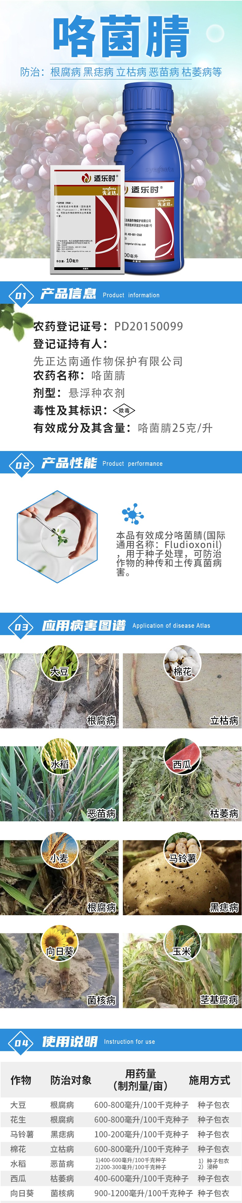 Syngenta Shilox fludioxonil root rot, blight, wilt, bacanae, sclerotinia fungicide pesticide 100g packaging upgraded version Cuiying