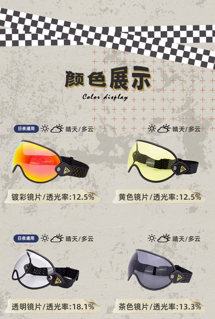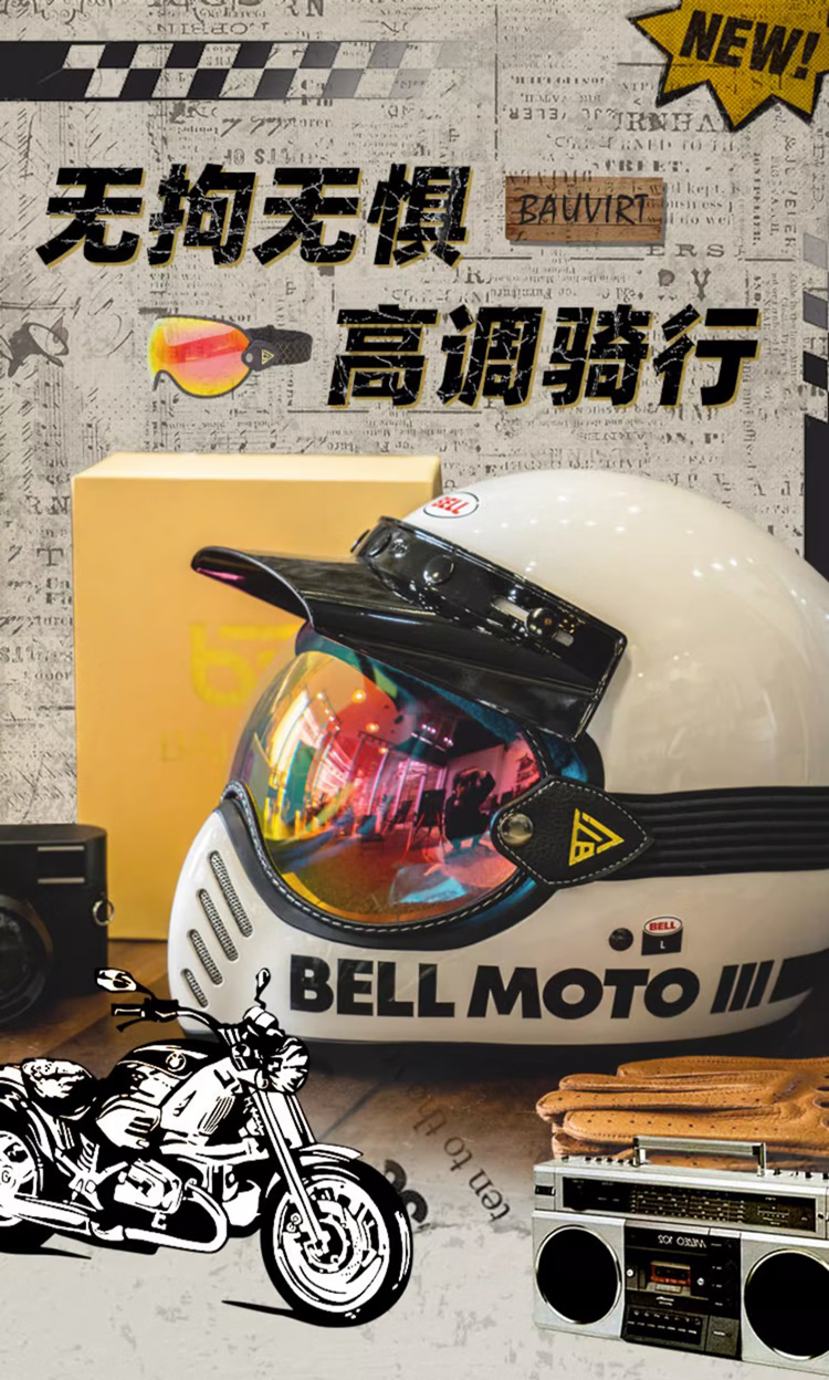 BELL motorcycle goggles Harley helmet unisex goggles retro riding windproof and dustproof glasses large frame MT00-transparent half helmet suitable