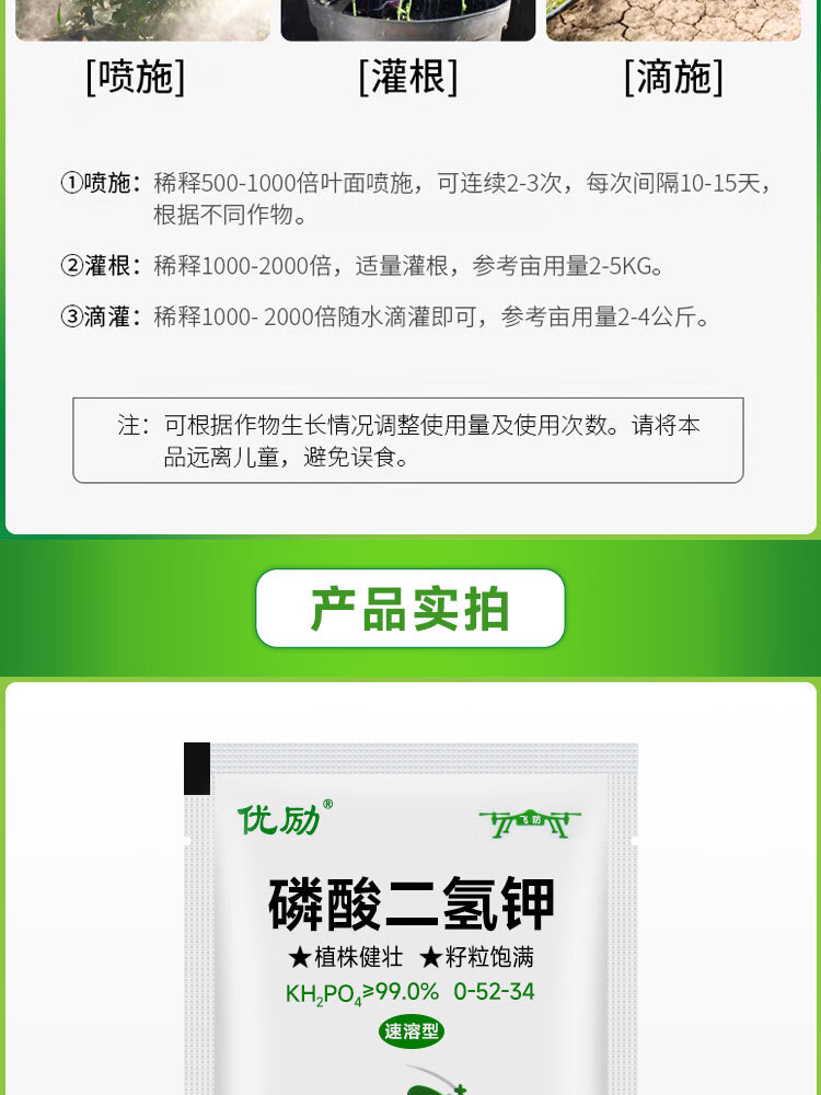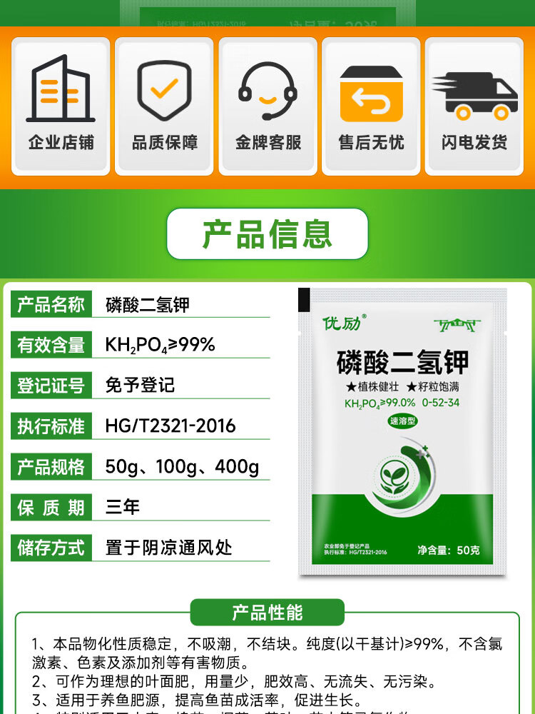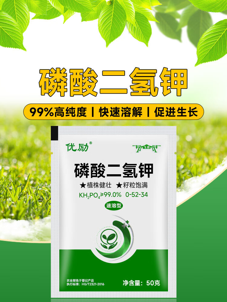 Potassium dihydrogen phosphate for corn, wheat, rice, high phosphorus and high potassium foliar fertilizer, water-soluble fertilizer for fruit trees, vegetables and flowers, 99% potassium dihydrogen phosphate 50g
