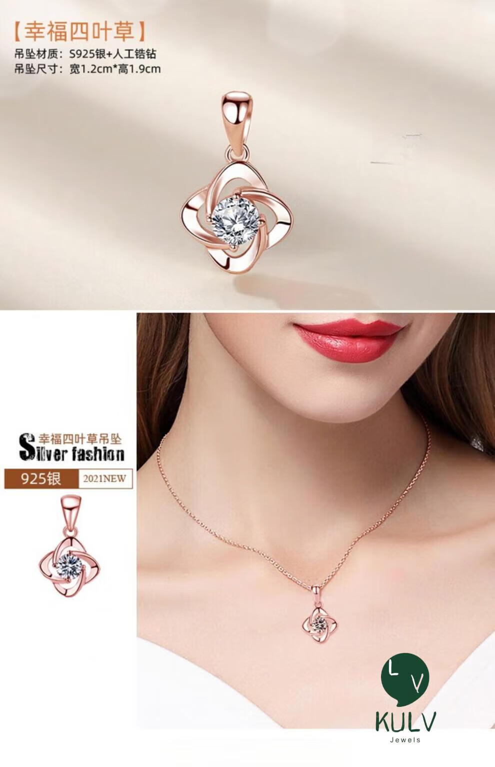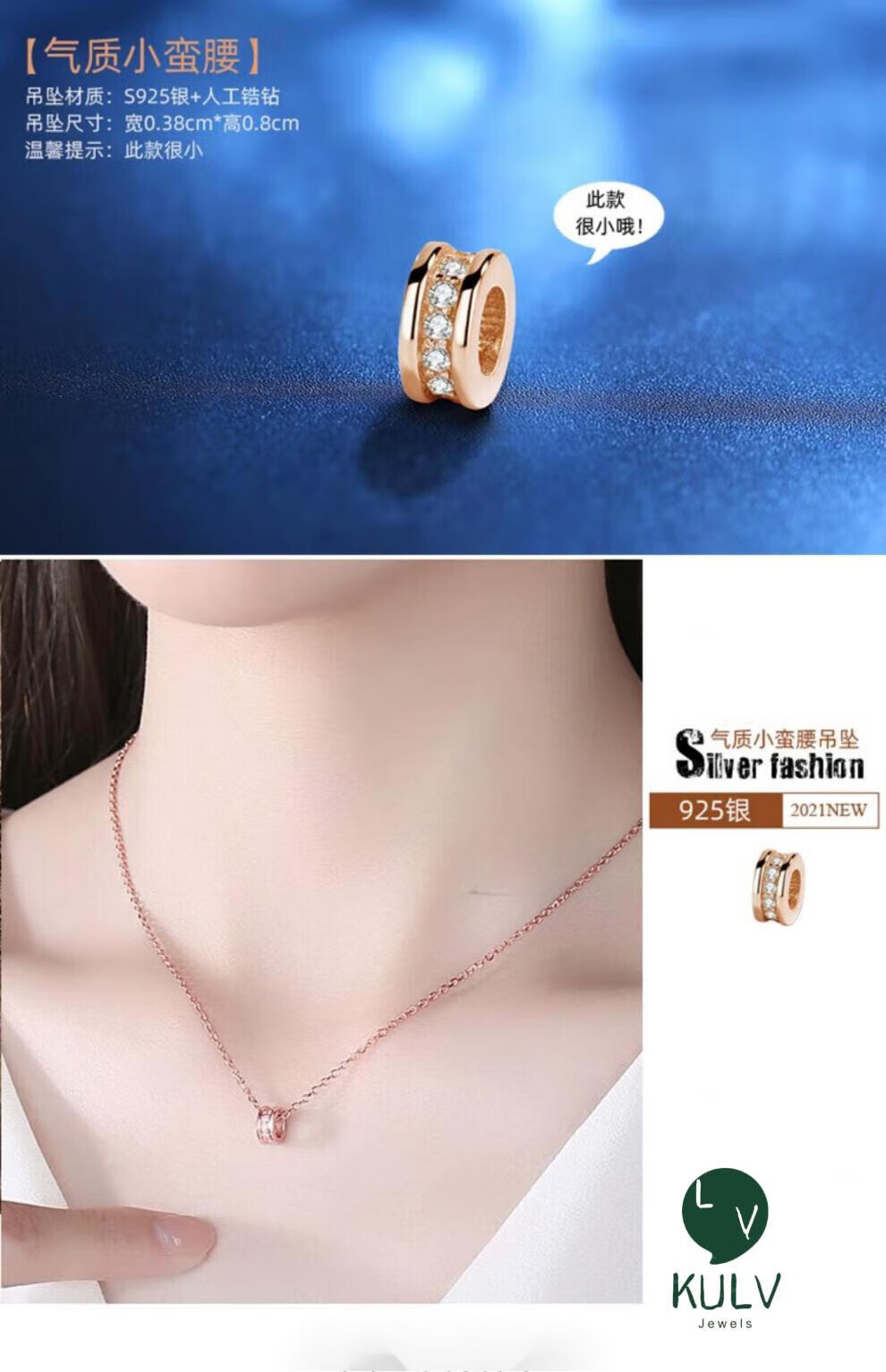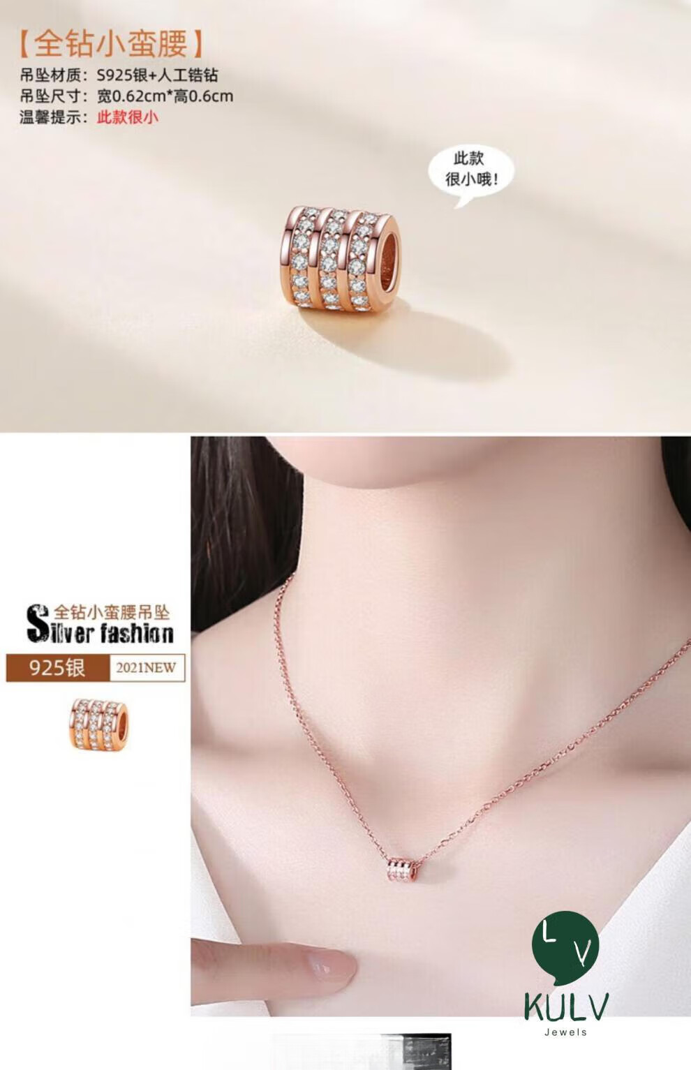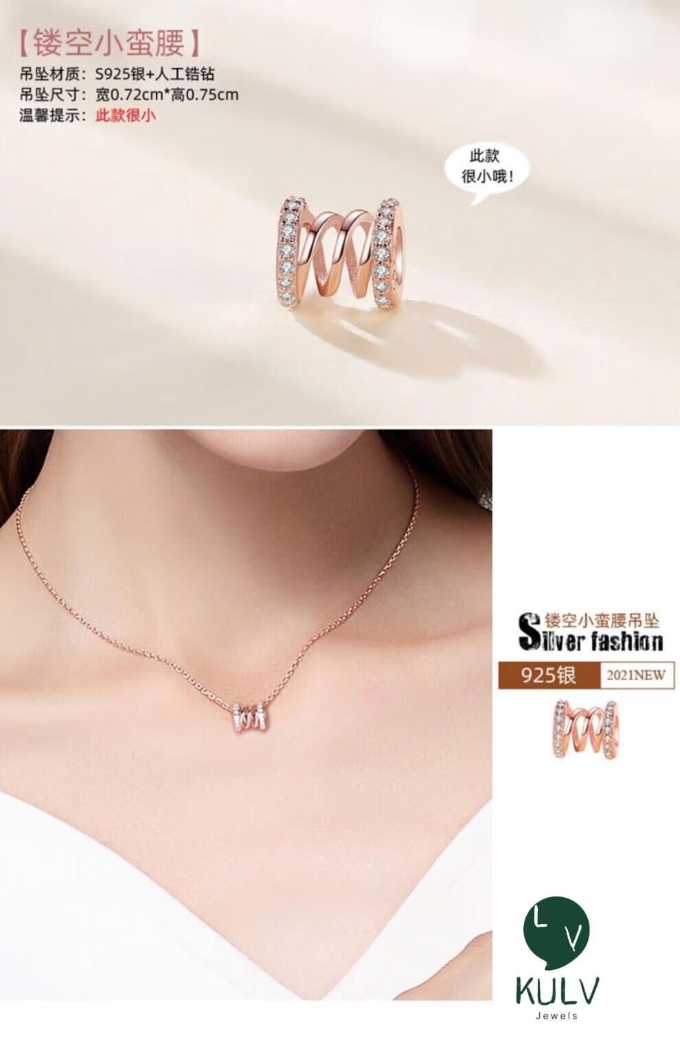 Fat Donglai's same style 18k gold-plated pendant single pendant women's necklace color gold pendant without chain rose gold color gold accessories S925 classic small waist-rose gold