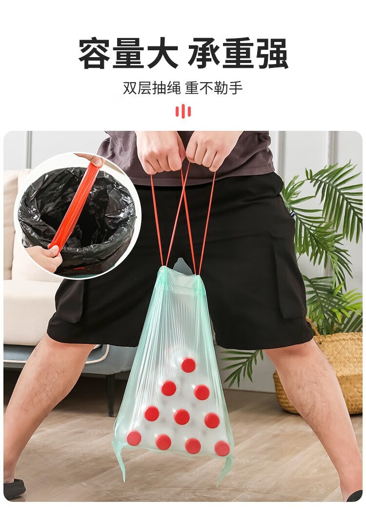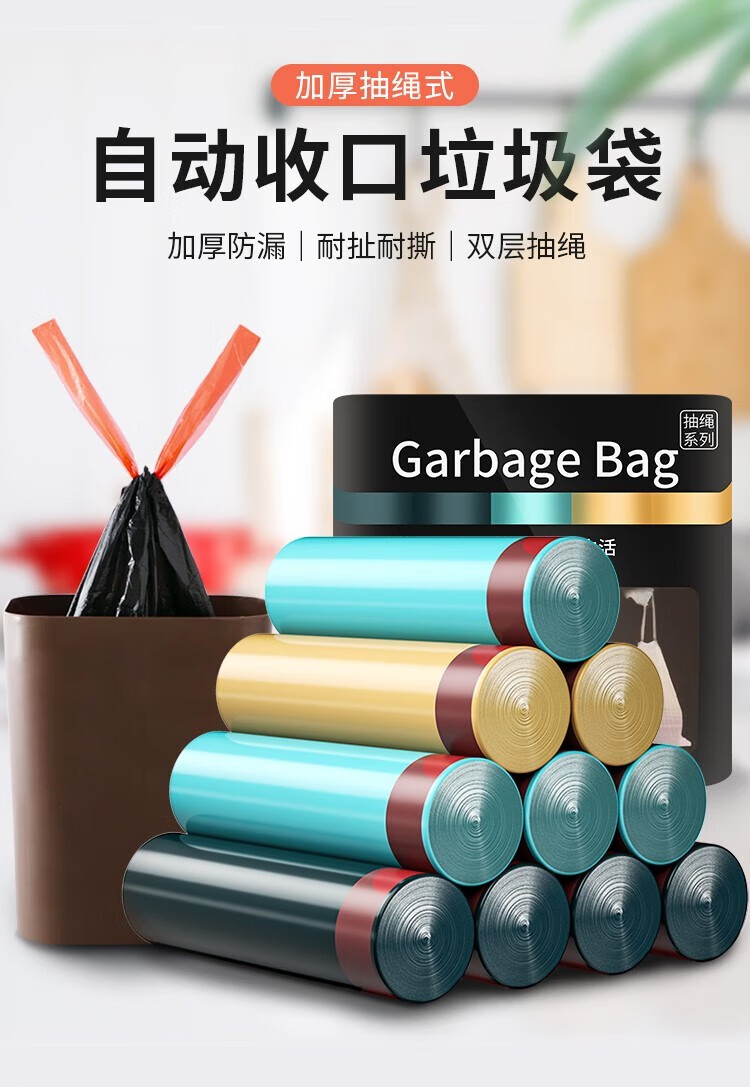 Chenfan Premium Bathroom Supplies Thickened Drawstring Garbage Bag Portable Kitchen Dormitory Student Large Plastic Bag 7 Rolls (105 in total)