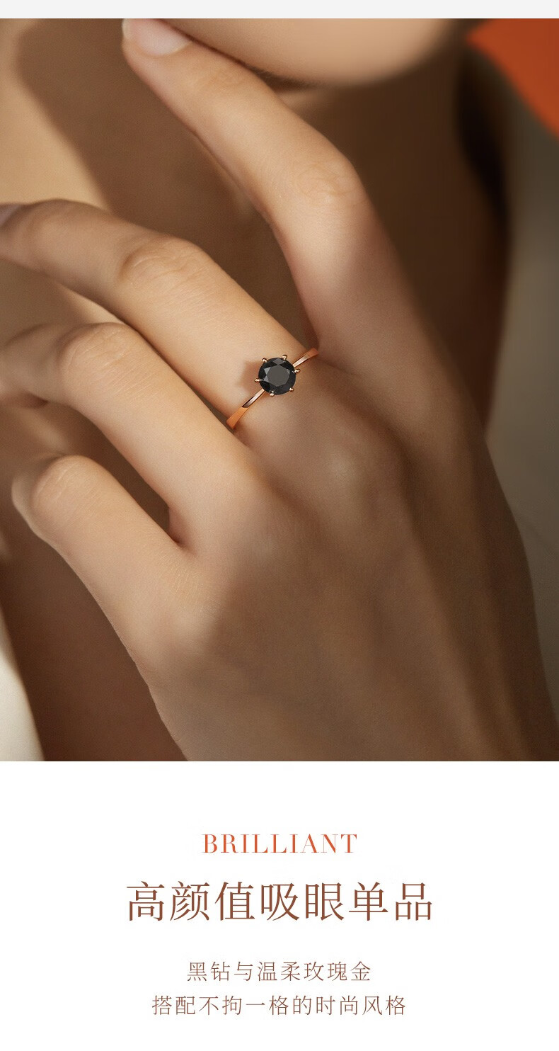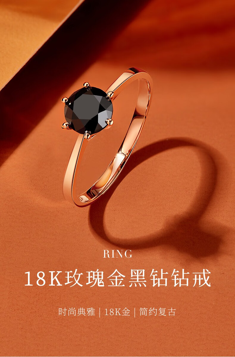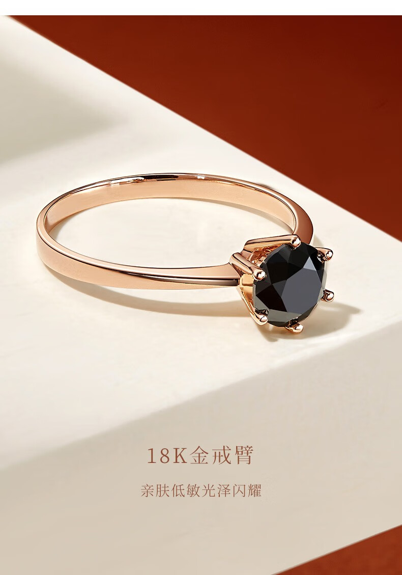 Happy diamond black diamond ring for women 18K gold black diamond diamond ring proposal wedding ring for girlfriend birthday gift 18K rose gold 1 carat black diamond