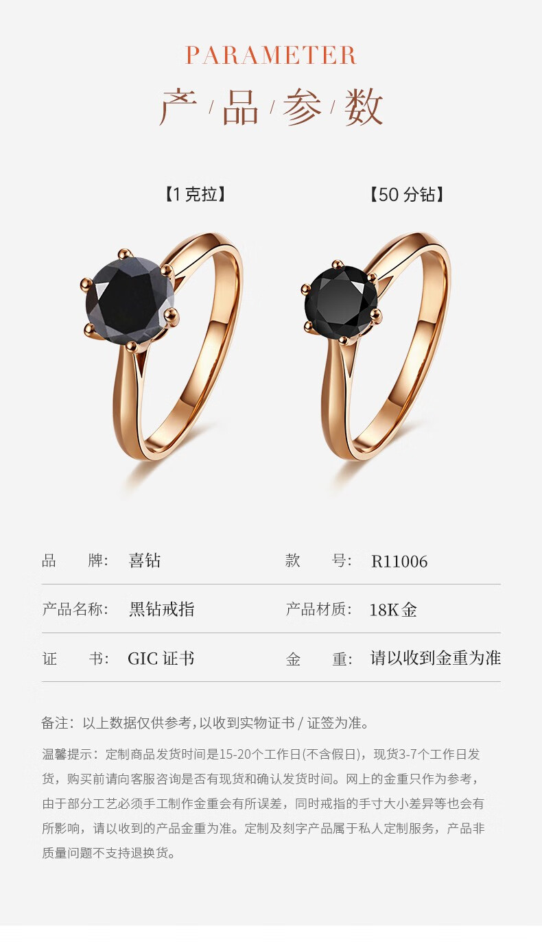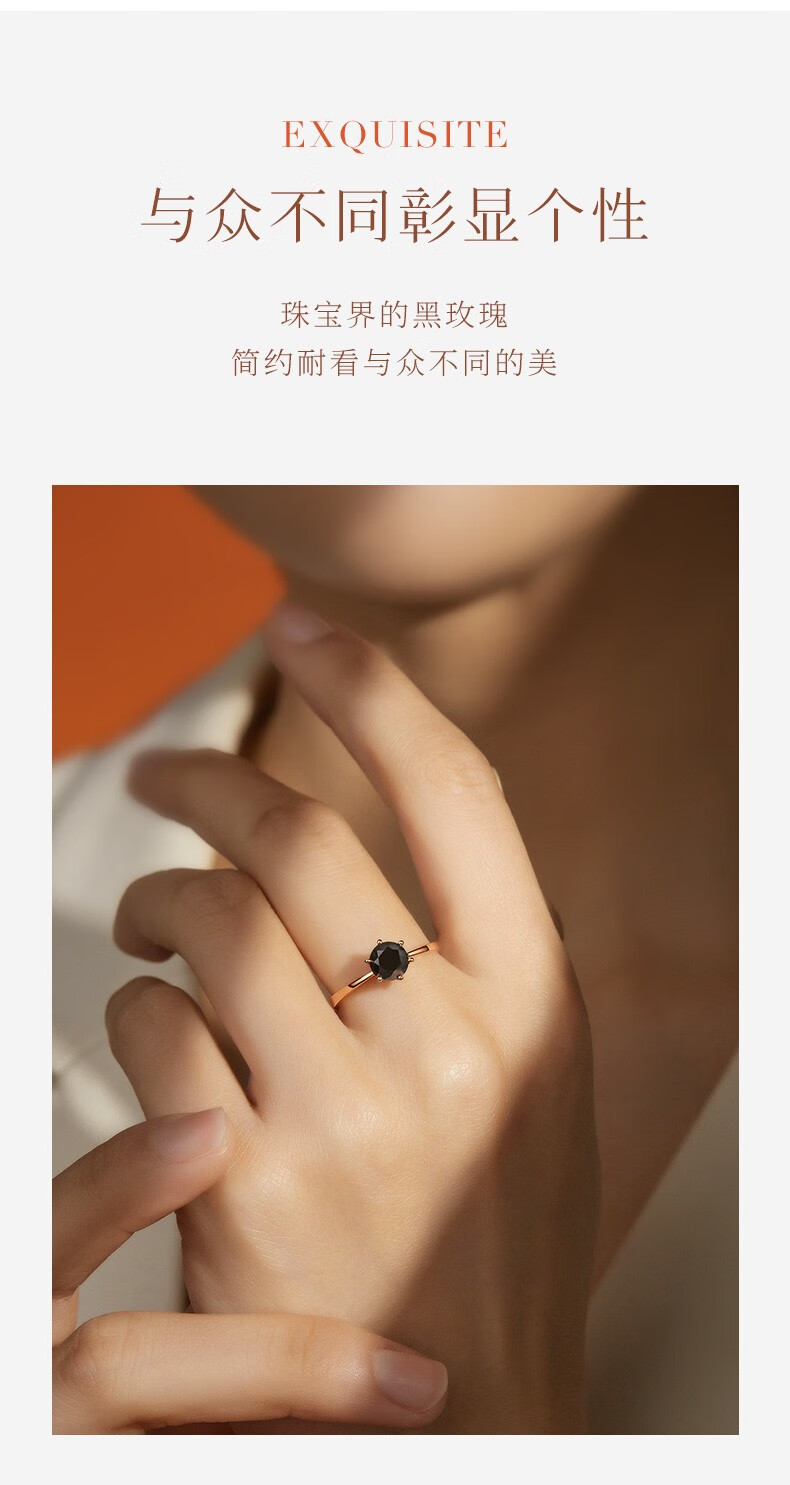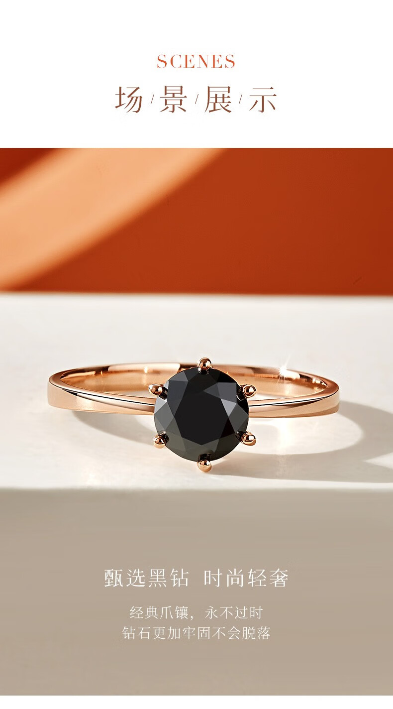 Happy diamond black diamond ring for women 18K gold black diamond diamond ring proposal wedding ring for girlfriend birthday gift 18K rose gold 1 carat black diamond