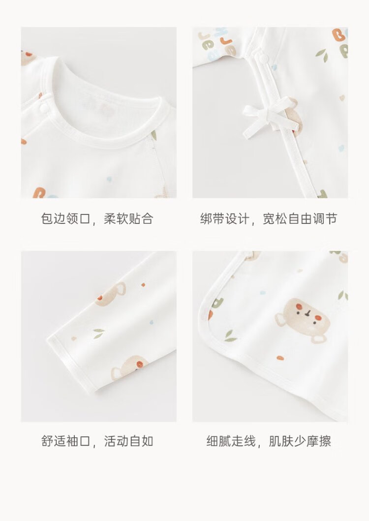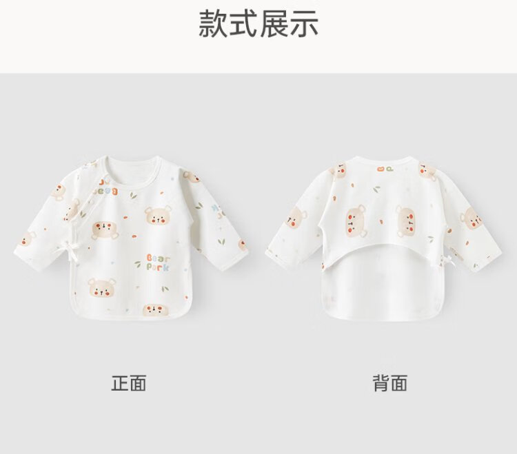 Guiqi Bear Newborn Pure Cotton Half Back Jacket Autumn and Winter Newborn Baby Long Sleeve Monk Clothes Baby Boneless Top White/Little Bear Garden 52