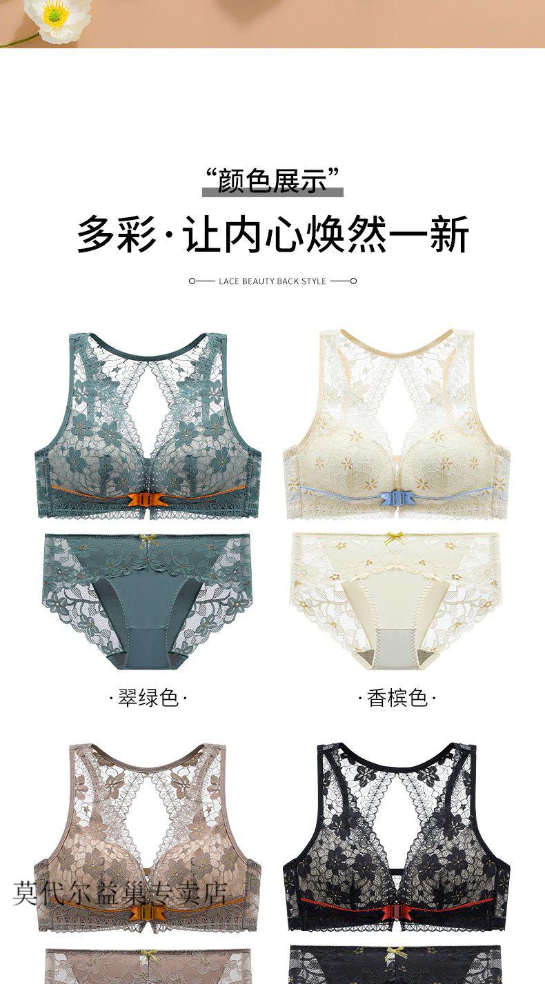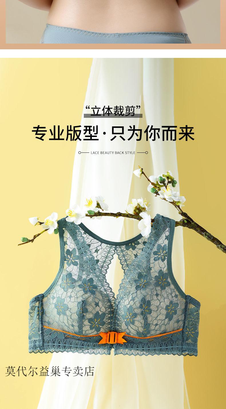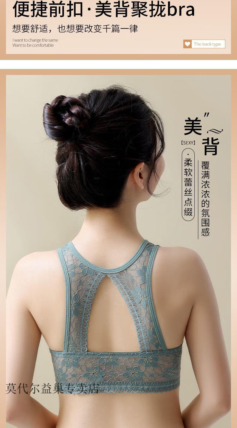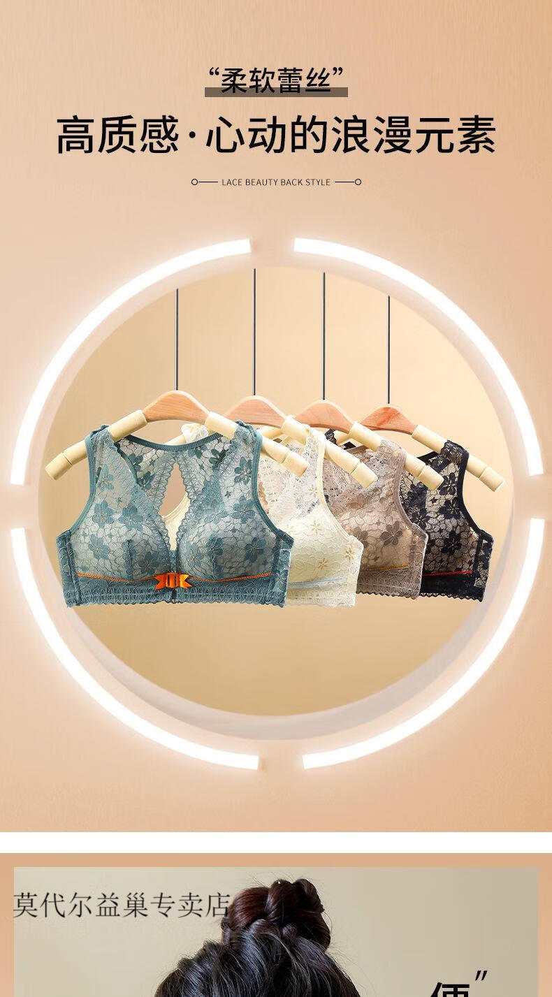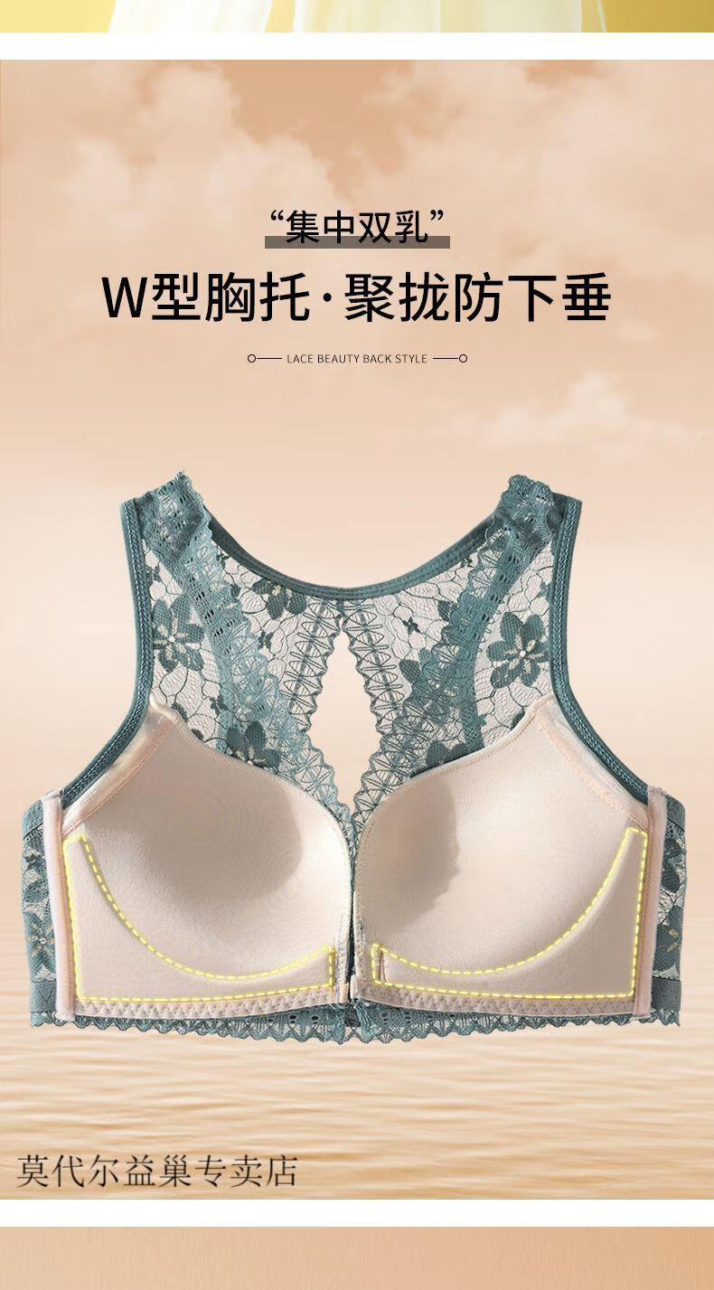 Modal Women's Bra Beautiful Back Lace Underwear Women's Push Up Small Breast Reduction Side Breast Anti-Sagging Top Support Front Button Bra Set Brown Single Piece 80A 36A