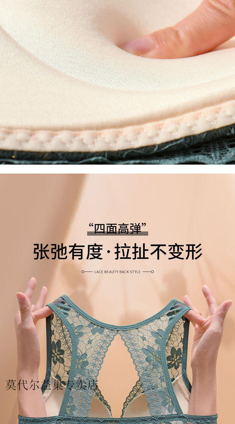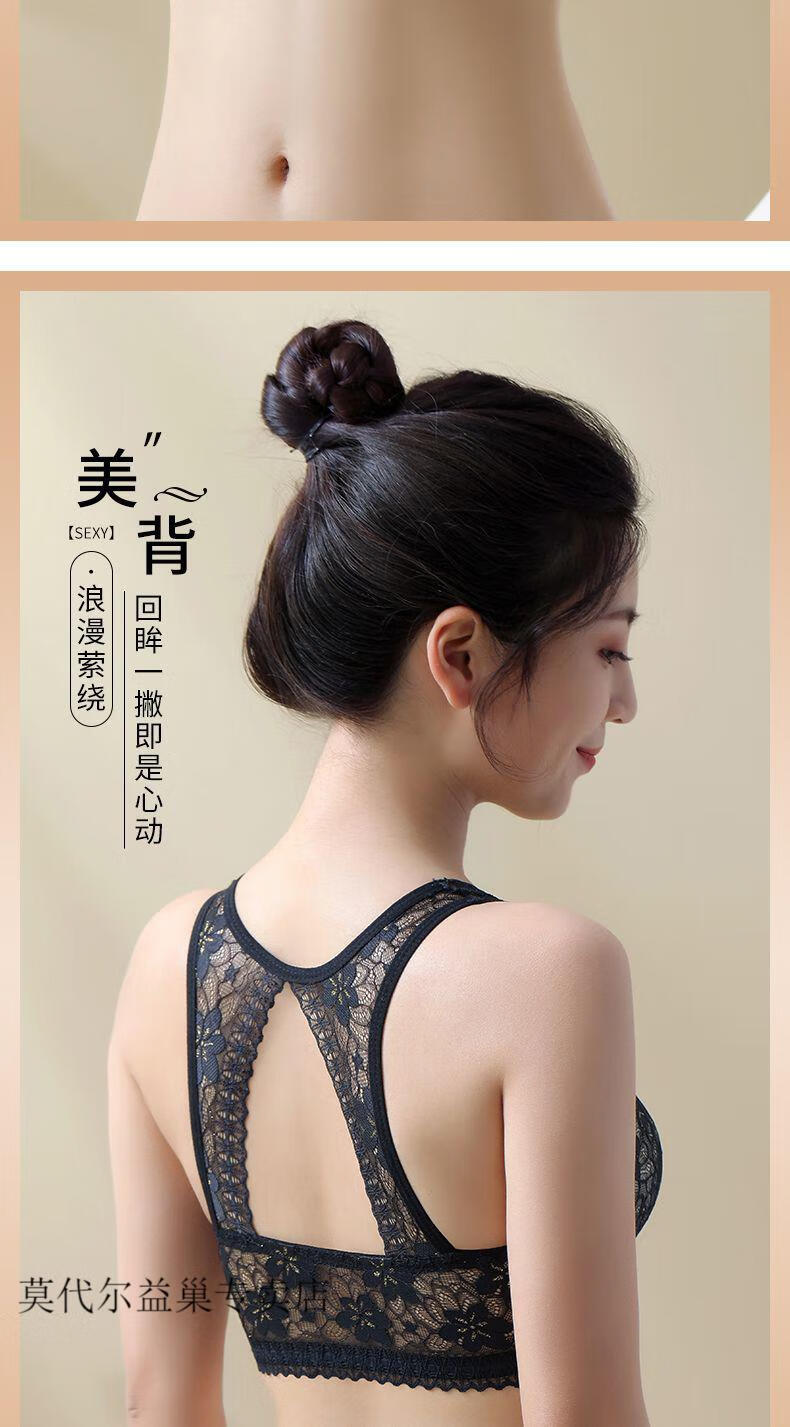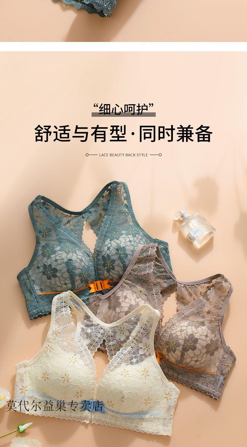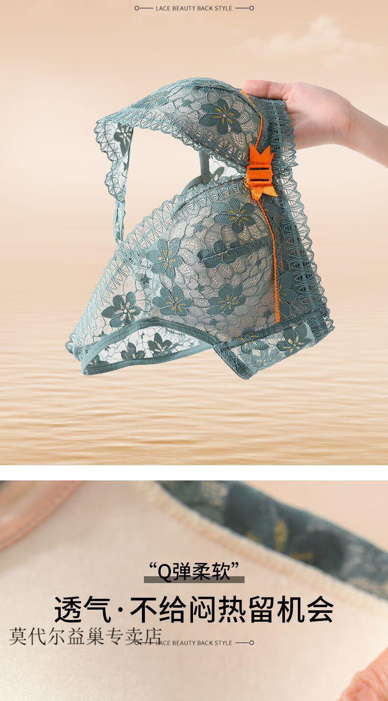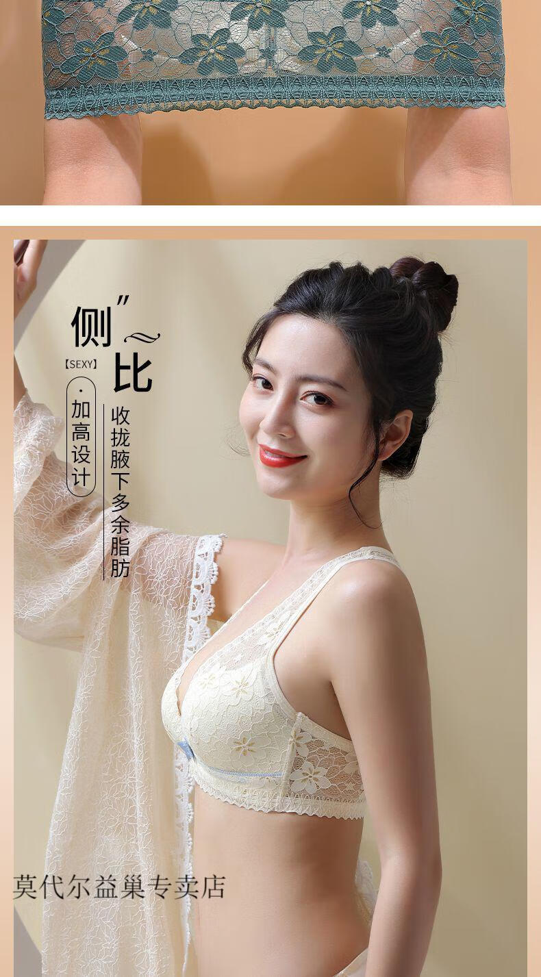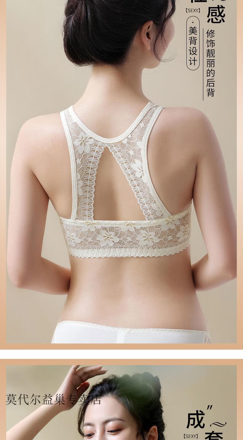 Modal Women's Bra Beautiful Back Lace Underwear Women's Push Up Small Breast Reduction Side Breast Anti-Sagging Top Support Front Button Bra Set Brown Single Piece 80A 36A