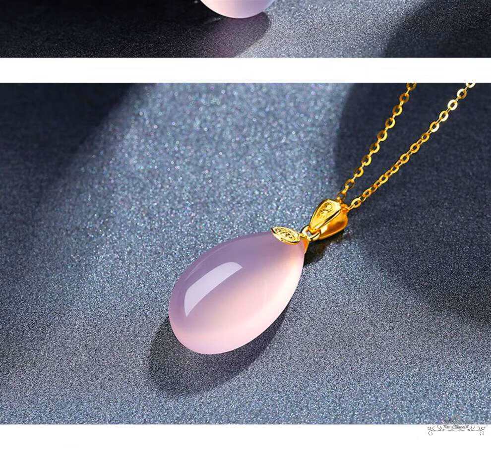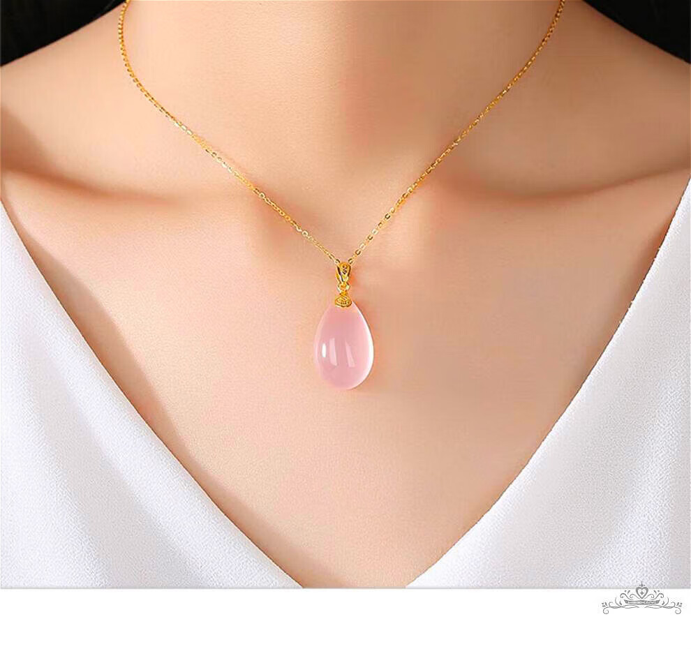 Haikai powder crystal necklace for women, gold inlaid jade pendant, anniversary, Chinese Valentine's Day, birthday gift for wife, hibiscus stone pendant + 18 gold k necklace