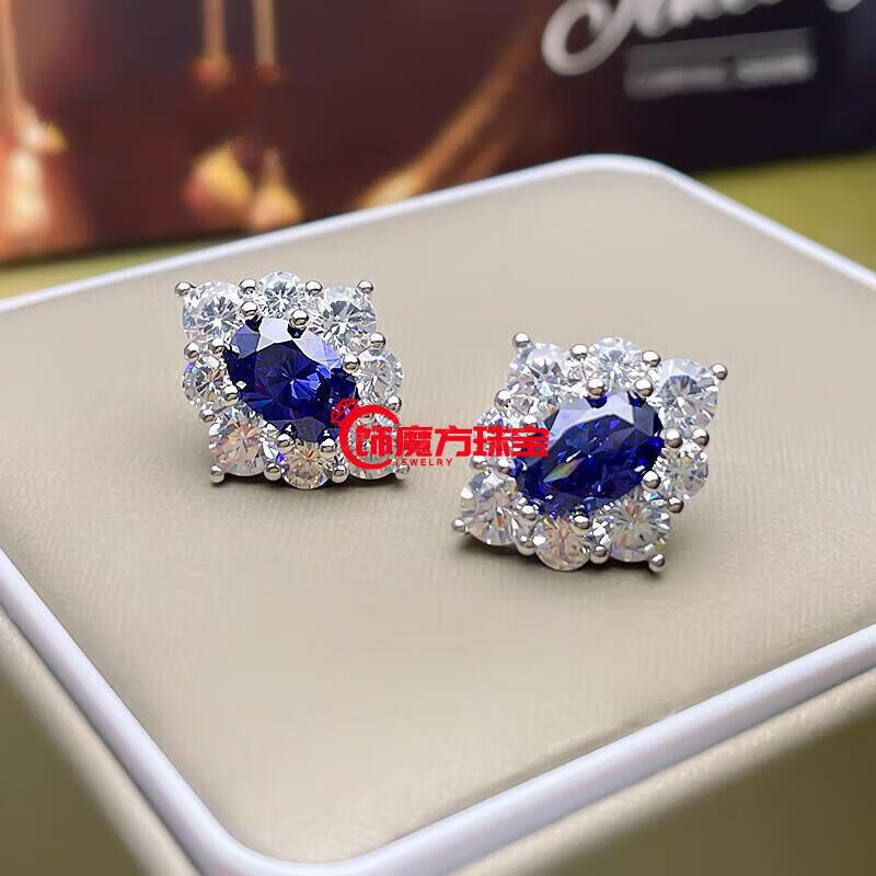 Guanpu Pavilion Fat Donglai's same style tanzanite earrings 3 carat tanzanite sapphire ring for women small and exquisite tanzanite blue earrings