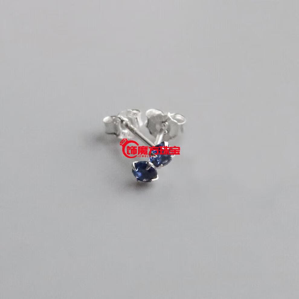 Guanpu Pavilion Fat Donglai quality tanzanite earrings natural 3mm sapphire London blue topaz mini silver gift for girlfriend's birthday Tanzanite blue 3mm | silver pair