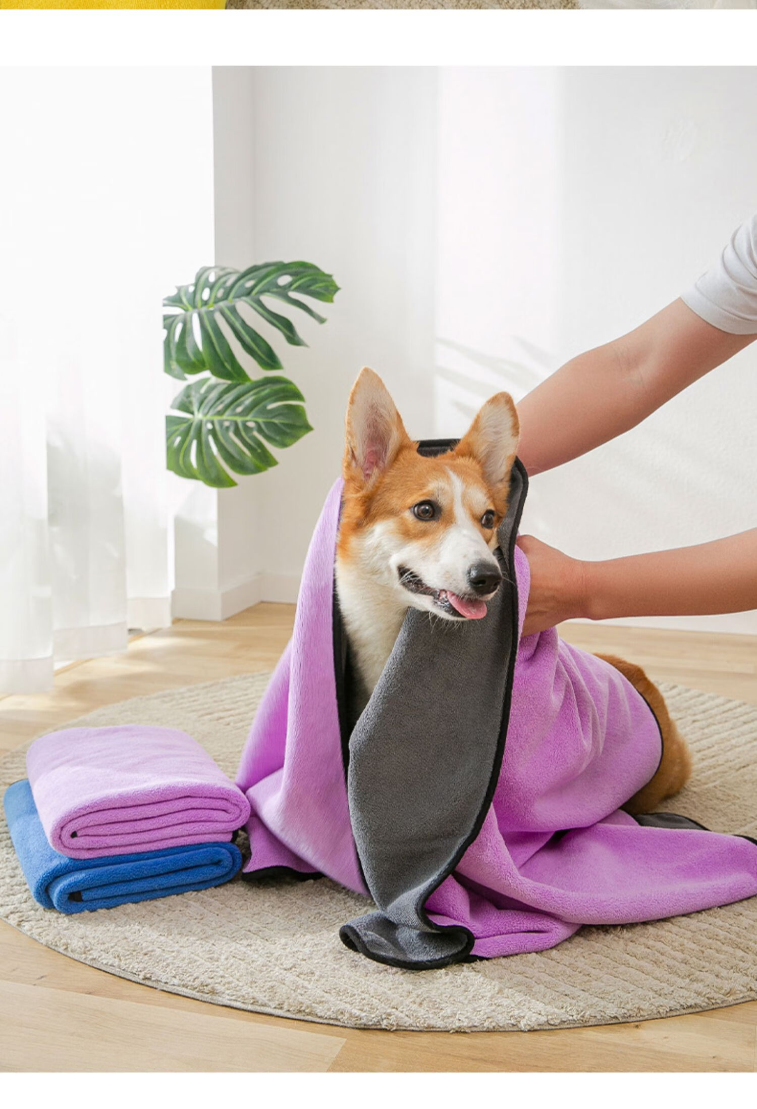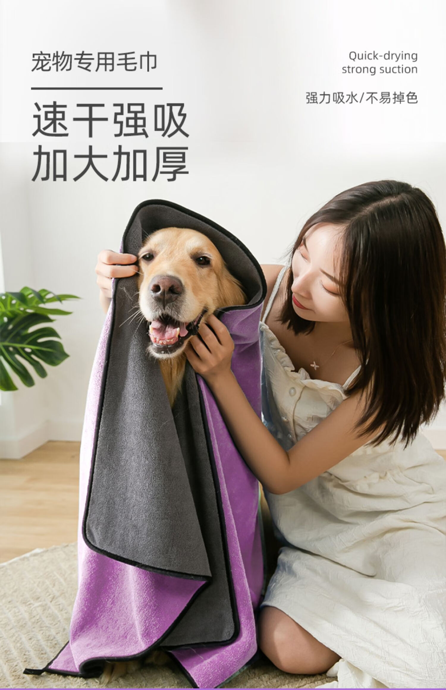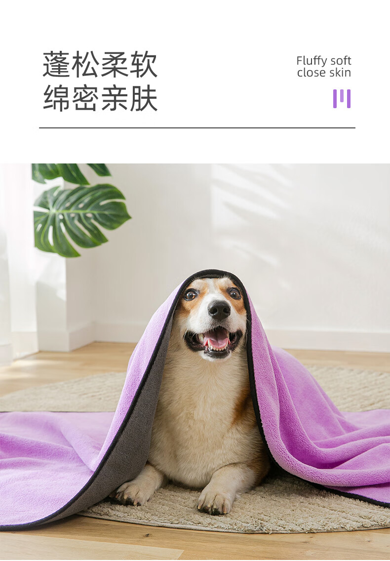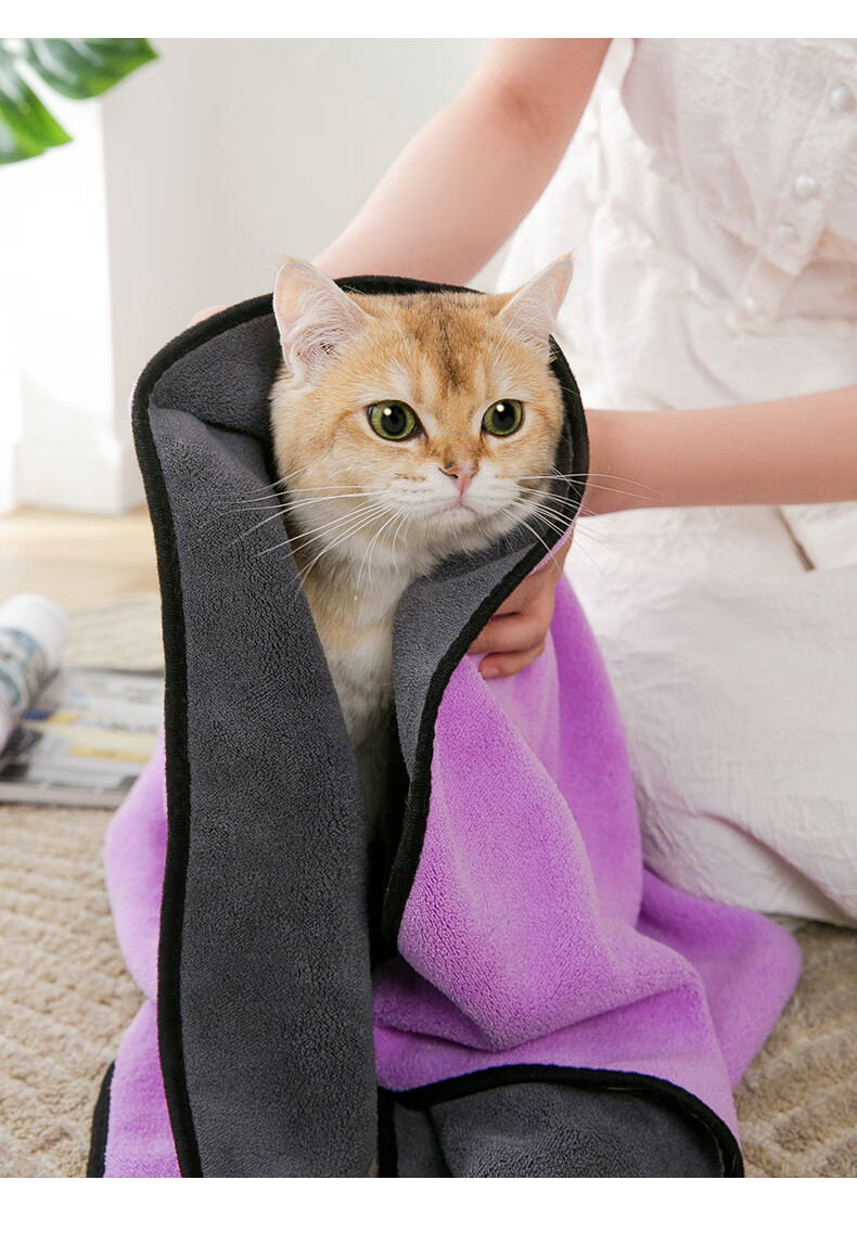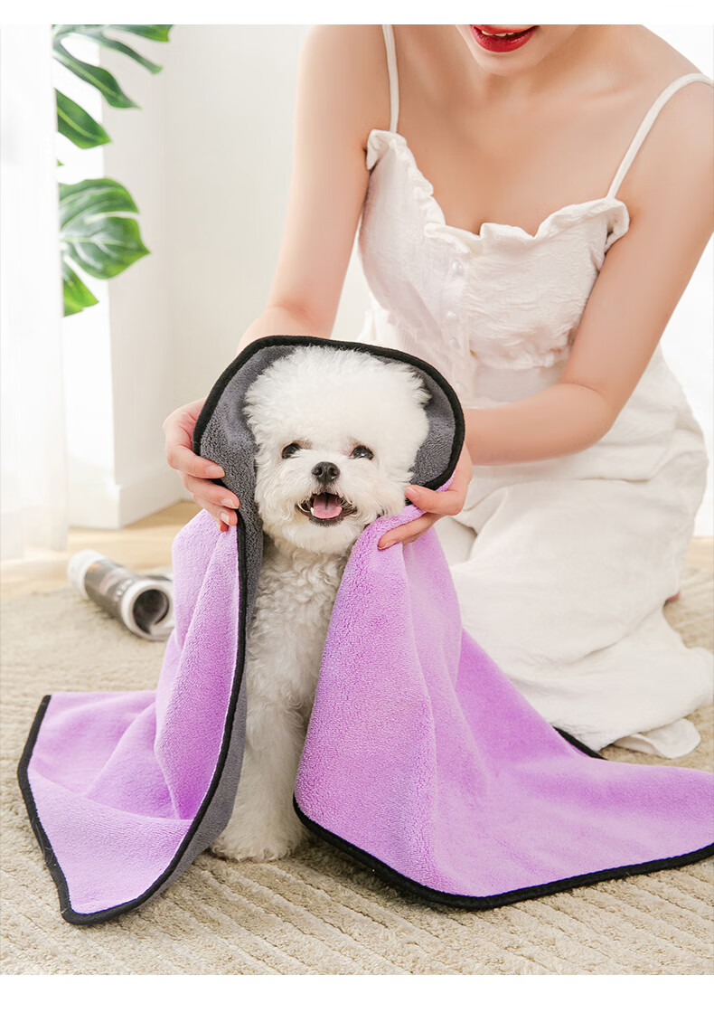 Hippidog pet absorbent towel thickened quick-drying Teddy Bichon dog bath towel cat bath towel non-stick hair supplies 1 piece Purple large size (140_70cm) No Specifications
