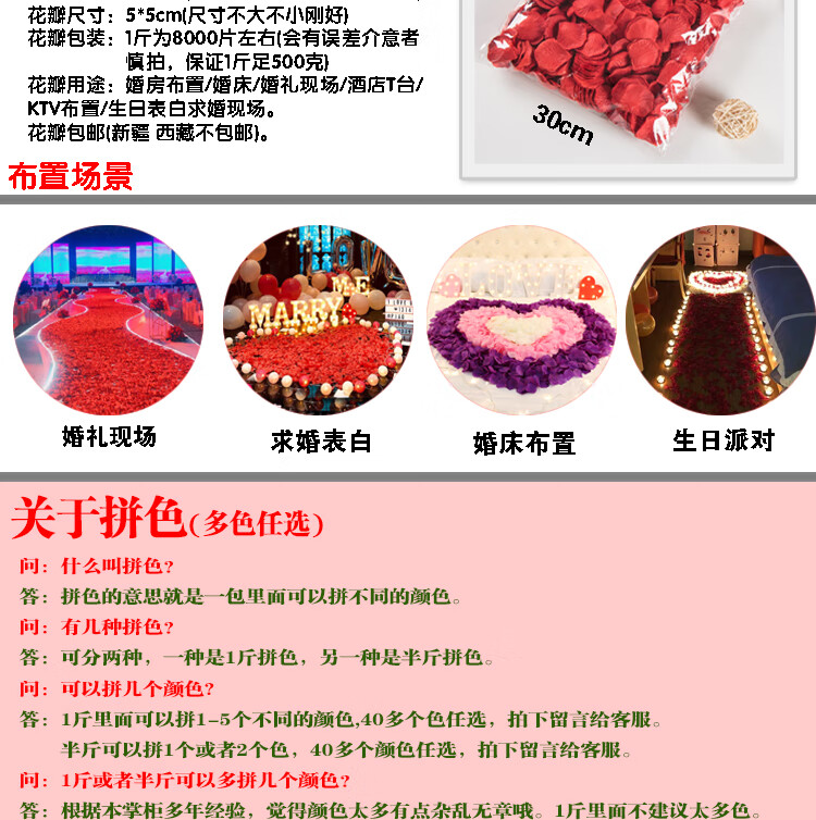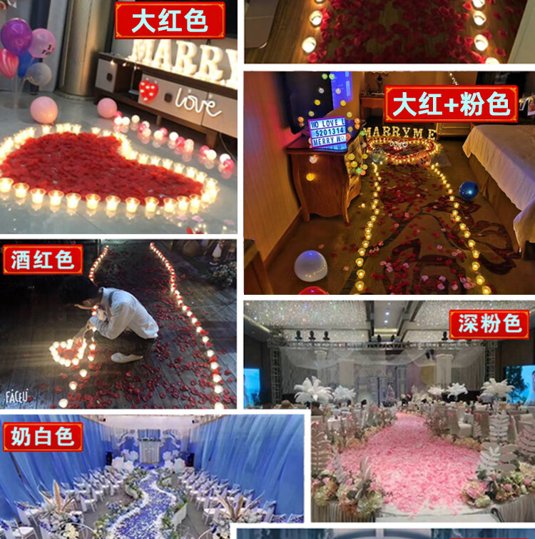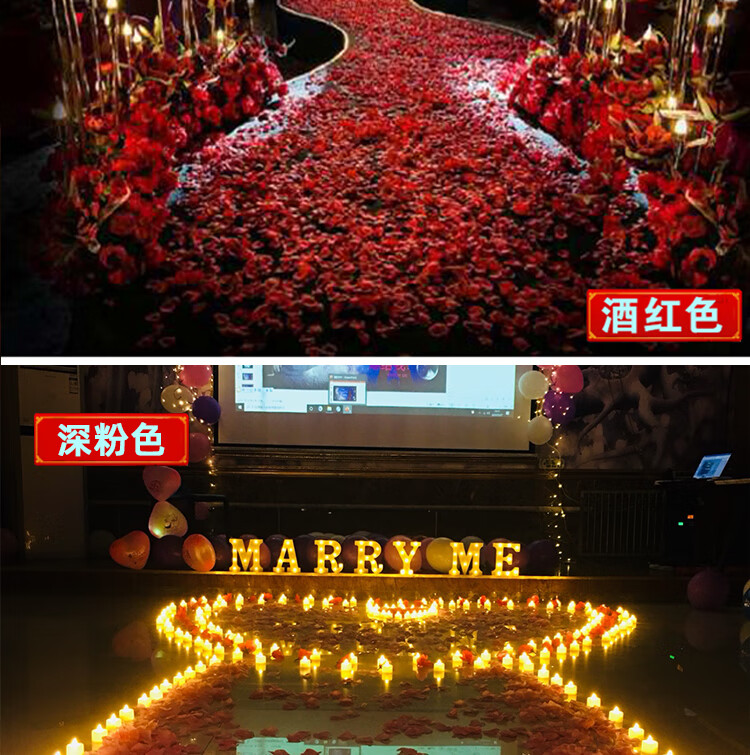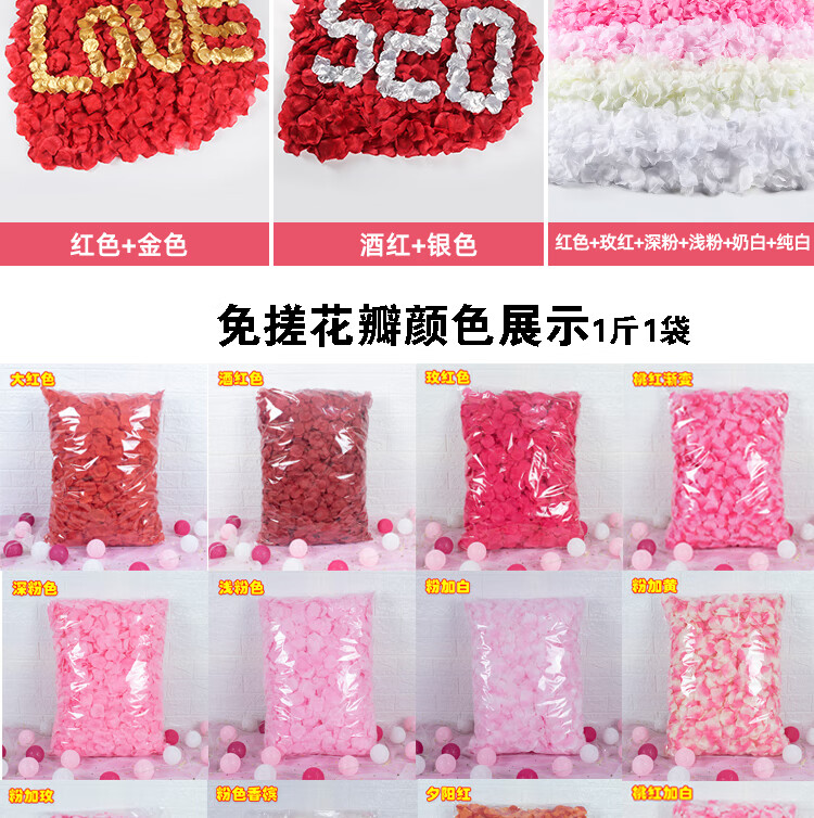 Chenbu artificial rose petals arrangement, wedding fake flower decoration, proposal, birthday confession, stage props, wedding hand-spreading flowers, no rubbing, burgundy, 1Jin Jin is equal to 0.5kg, about 8000 pieces