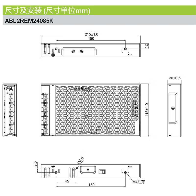 Original Schneider Electric ABL2 switching power supply DC transformer AC AC100-220V output DC24V power 35W-350w ABL2REM24045K 100W output voltage DC24V