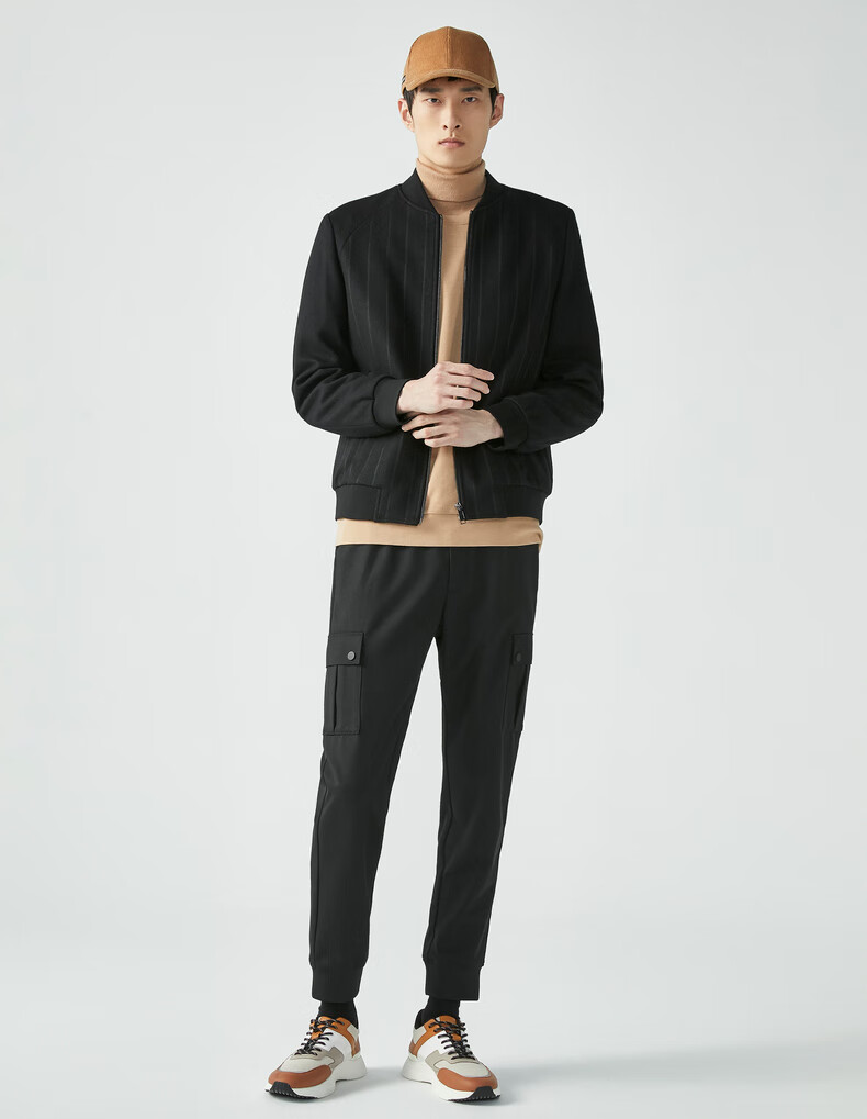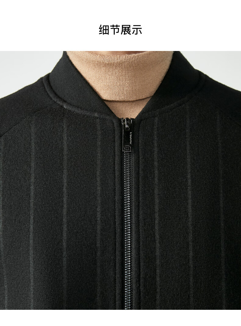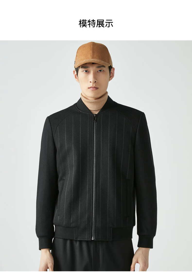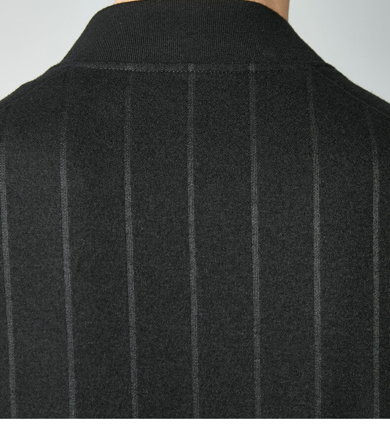 Rimula Men's Sheep Wool Jacket Men's Striped Baseball Collar Casual Spring and Autumn Thin Wool Jacket Men | FBWG3319 Black M