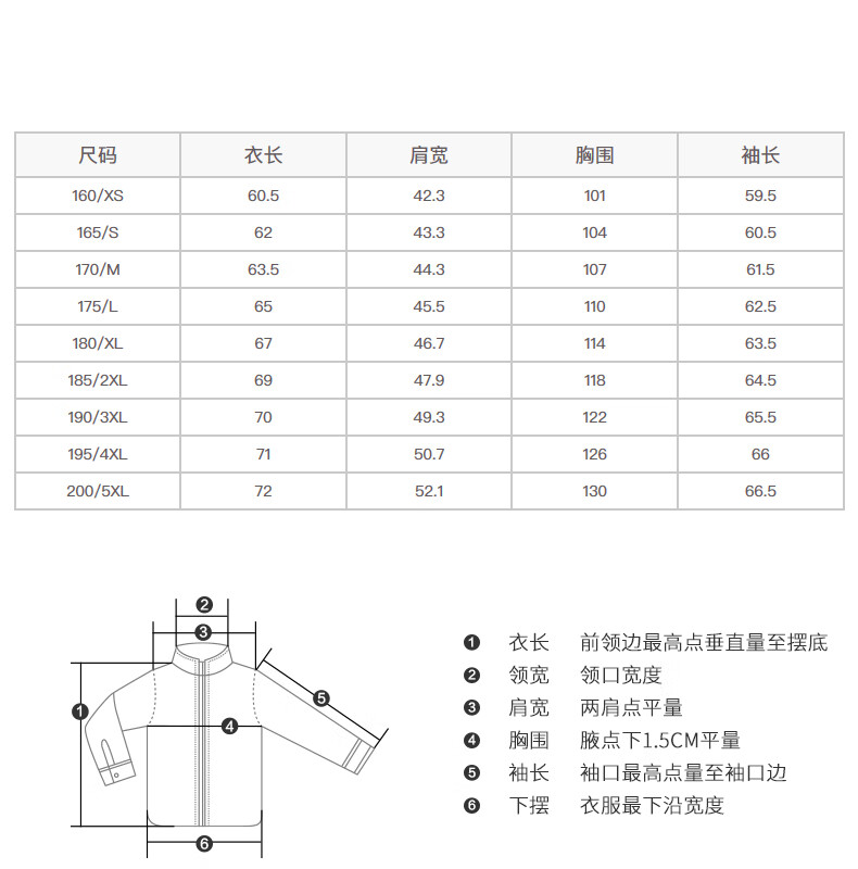 China (cm) 165 / 88-90 170 / 96-98 175 / 108-110 180 / 118-122 185 / 126-130