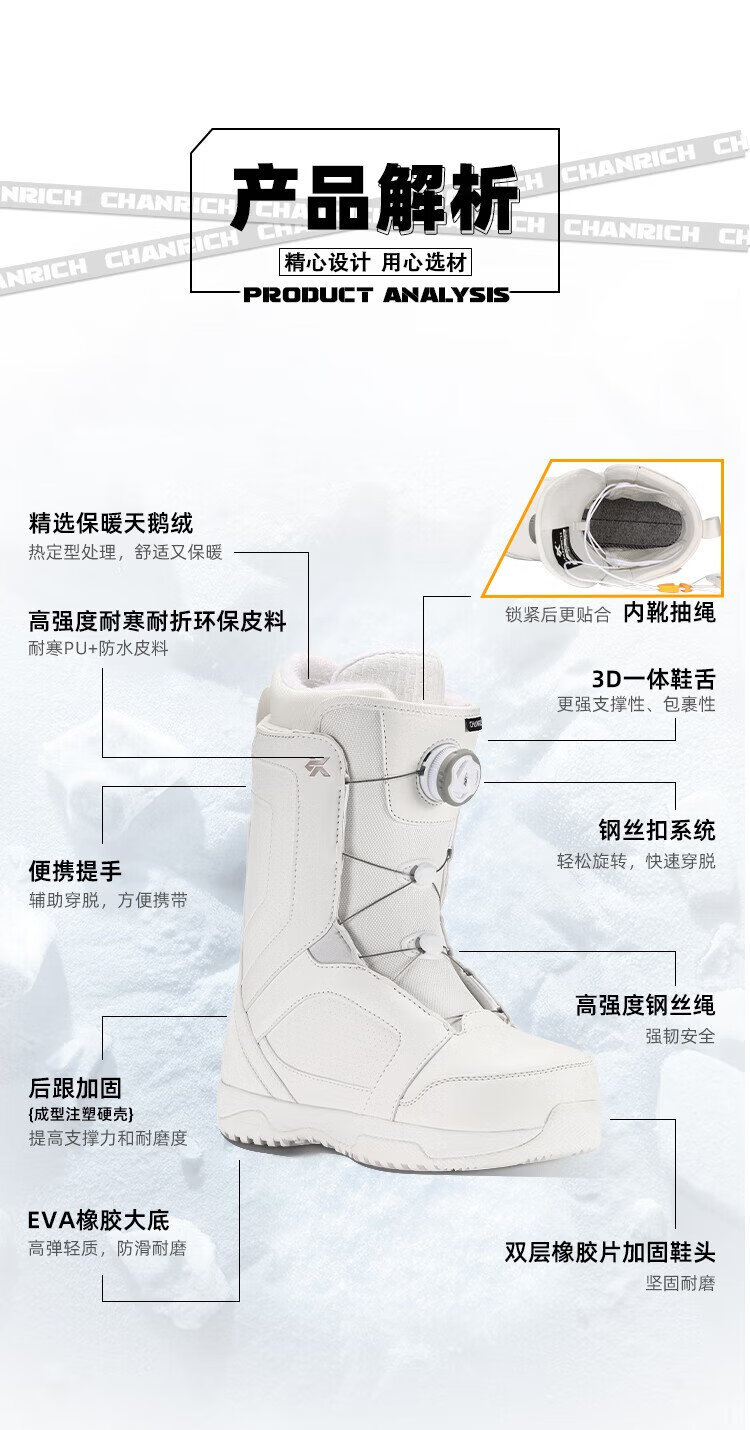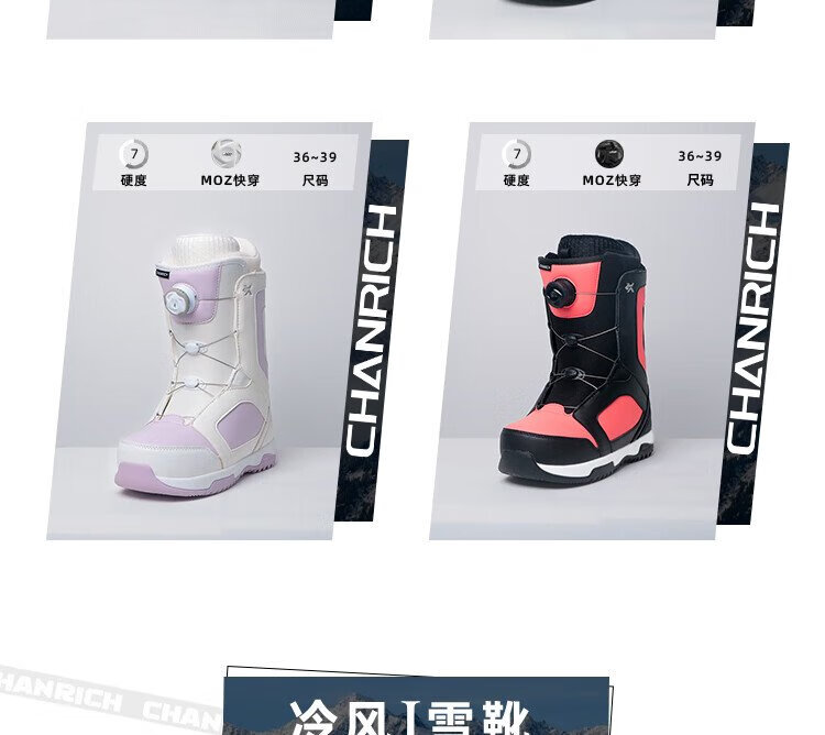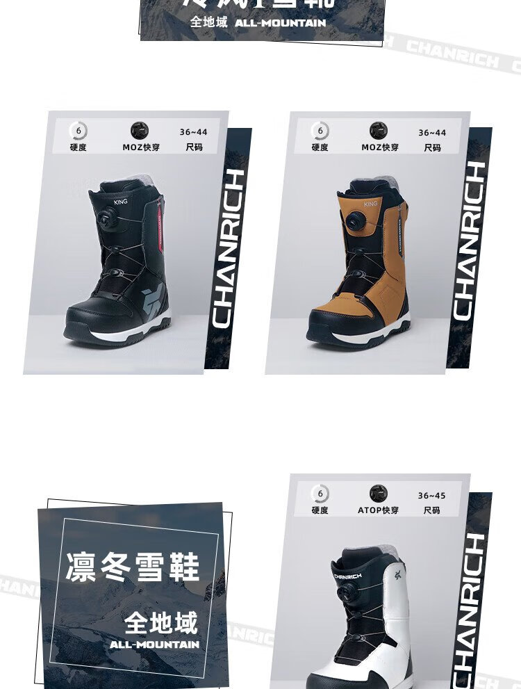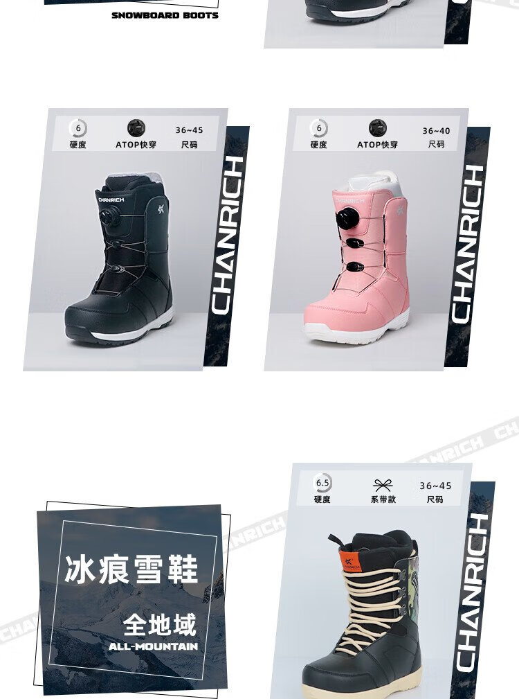 CHANRICH cold wind snowboarding boots for men and women, all-region free-style wire buckle quick-wear anti-slip warm ski boots, high-grade gray ATOP quick-wear 40