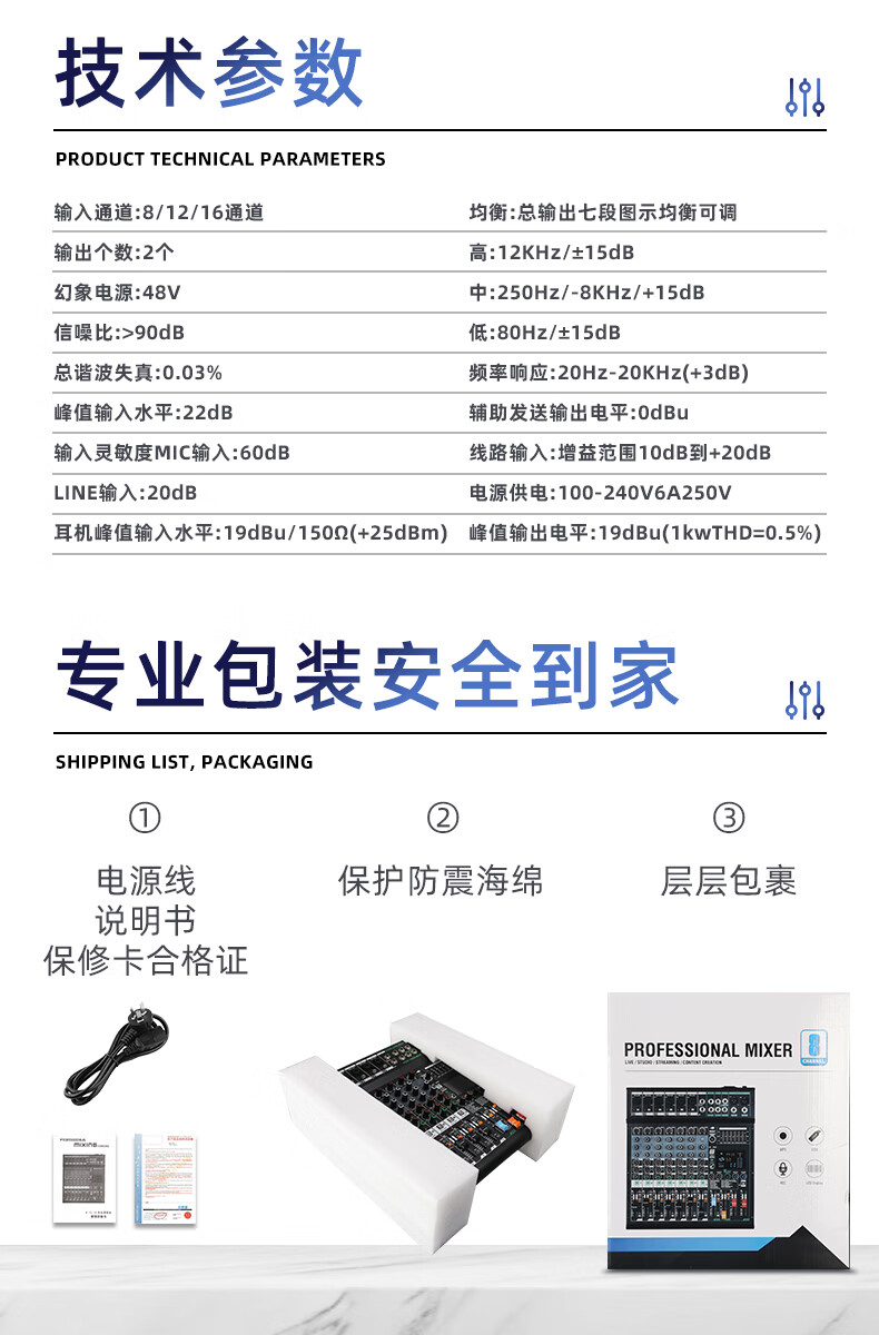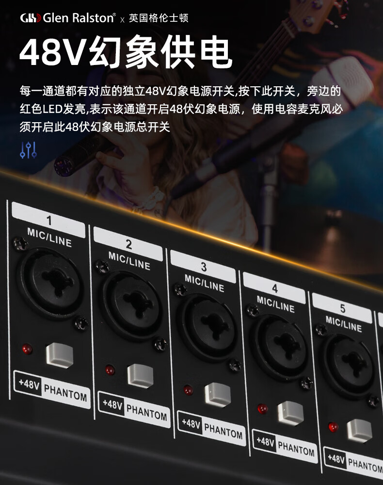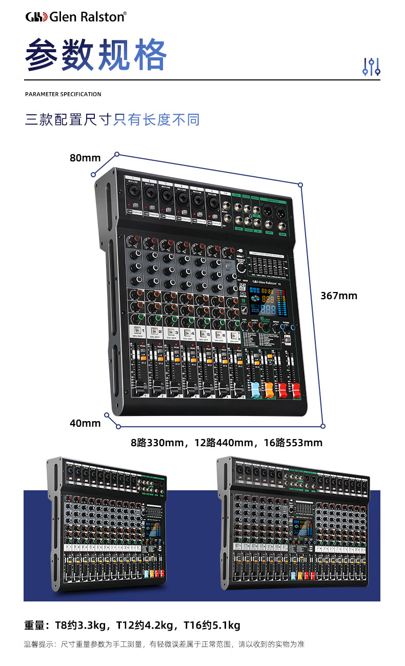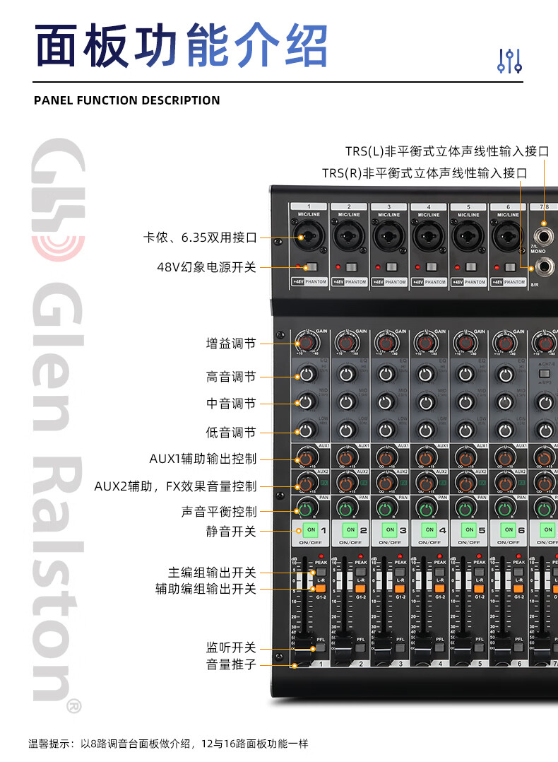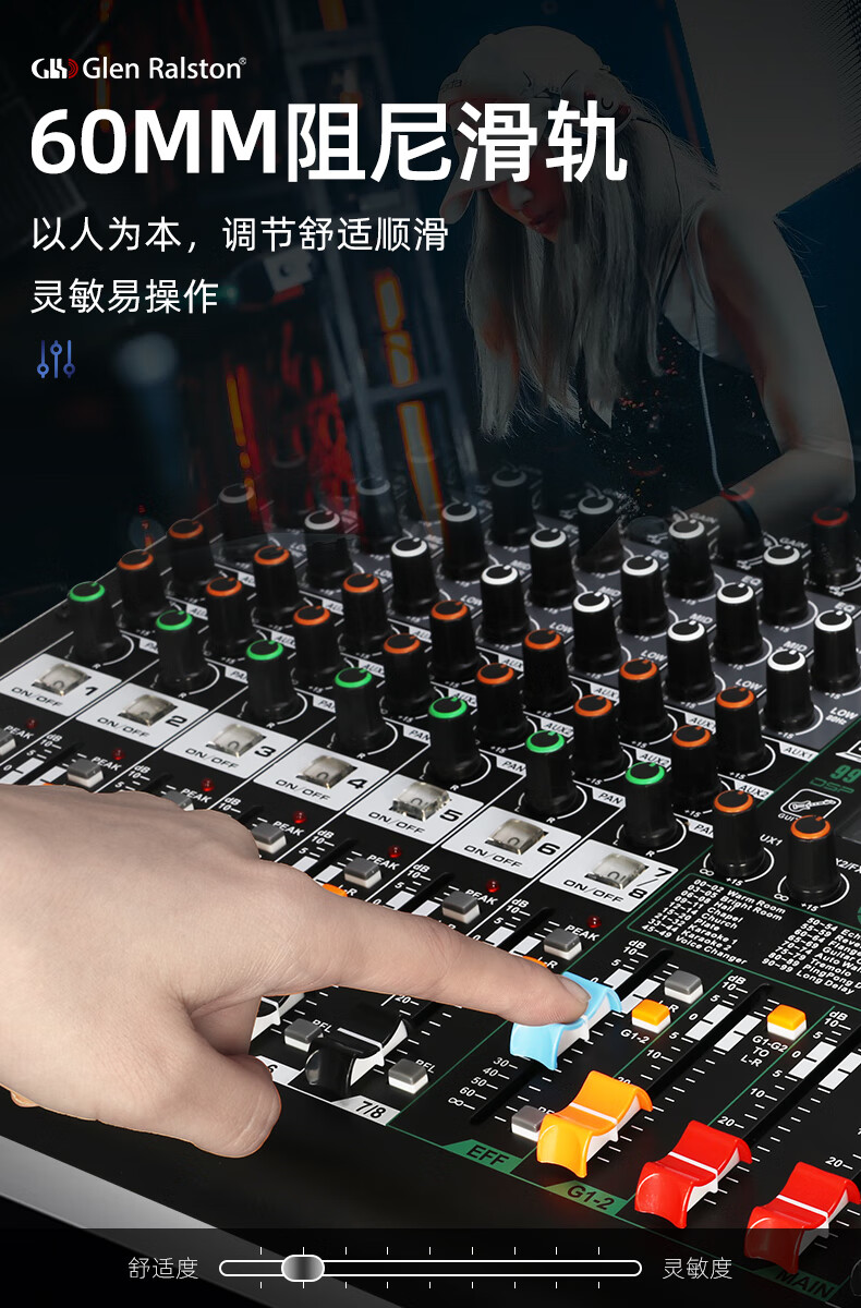 Glen Ralston T8 professional 8-way mixer 99 types of reverberation MP3 Bluetooth balanced USB recording dual group stage T16 (16-way mixer)