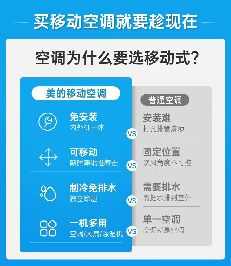 Midea mobile air conditioner 2 hp large cooling capacity single cooling Home living room rental kitchen all-in-one air conditioner without outdoor unit installation-free vertical air conditioner KY-40/N1Y-PD7 2 hp single cooling 4000W large cooling capacity