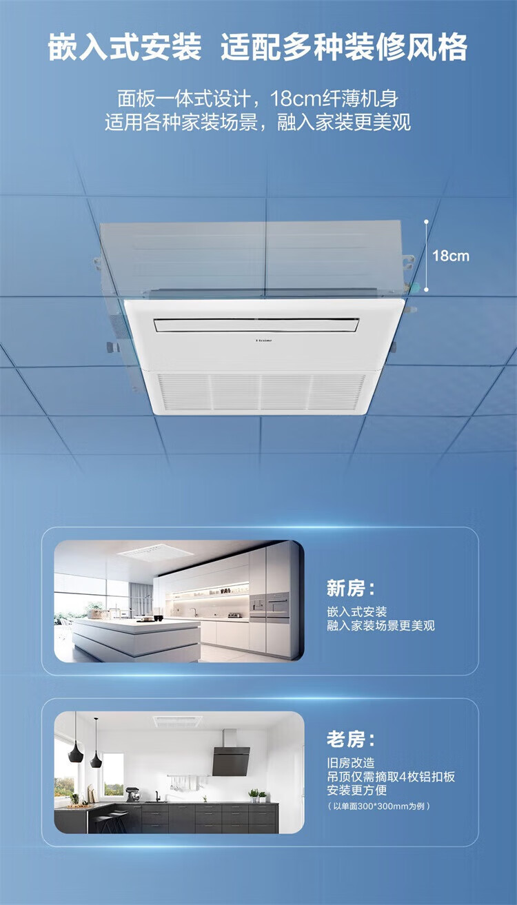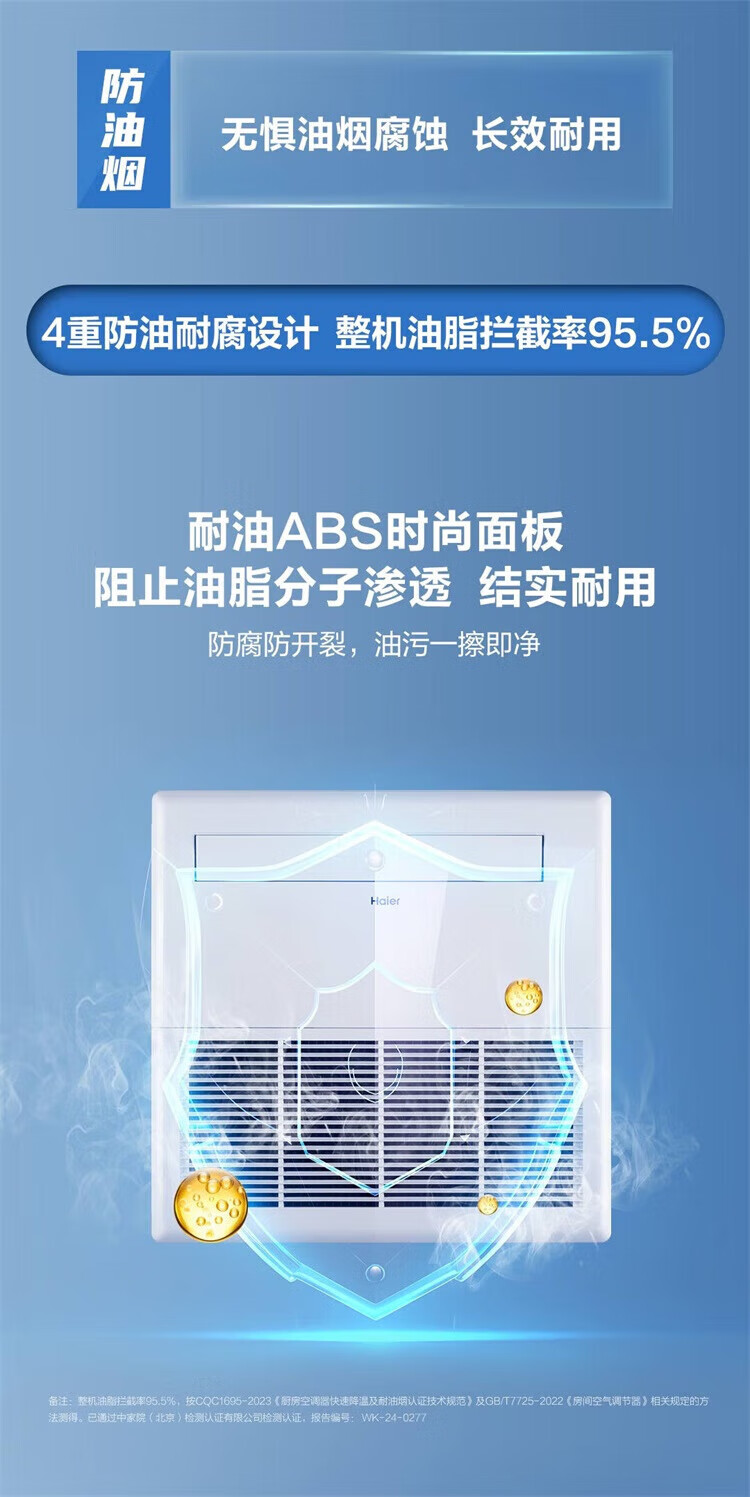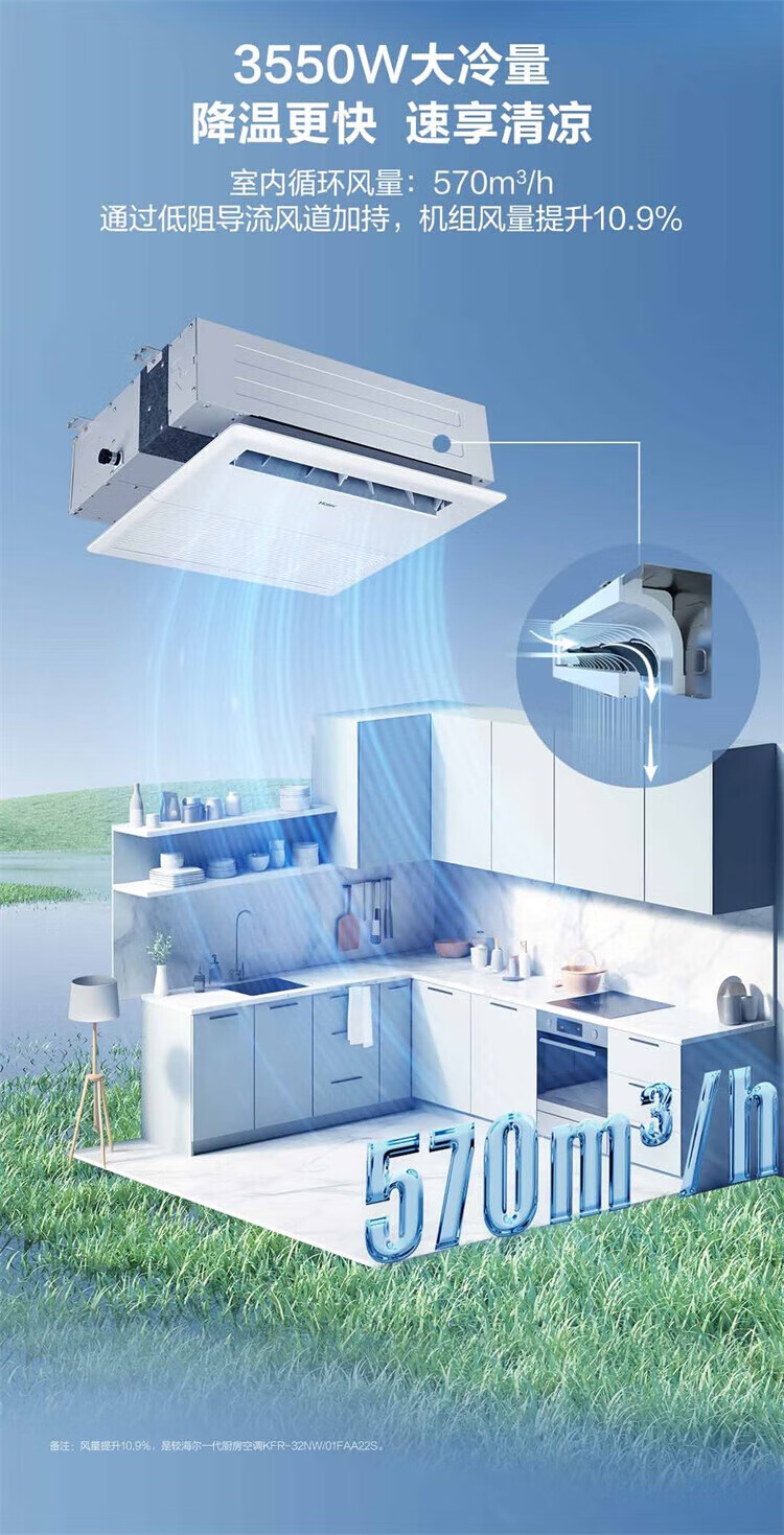 Haier Huanxin 15% subsidy kitchen air conditioner central air conditioner duct machine one-to-one full DC frequency conversion home embedded single cooling anti-oil fume hotel restaurant air conditioner 1.5 HP first-level energy efficiency 15s quick cooling + oil and anti-corrosion + self-cleaning
