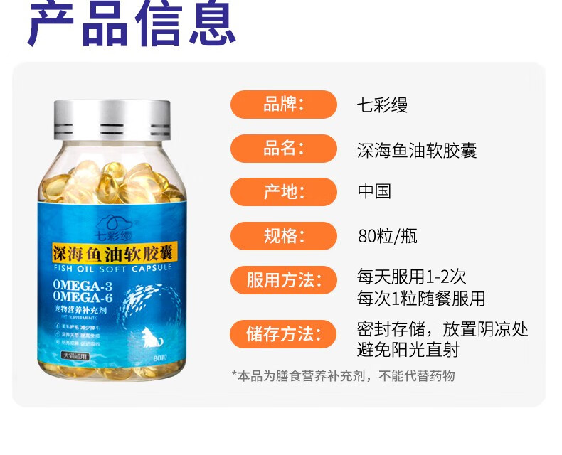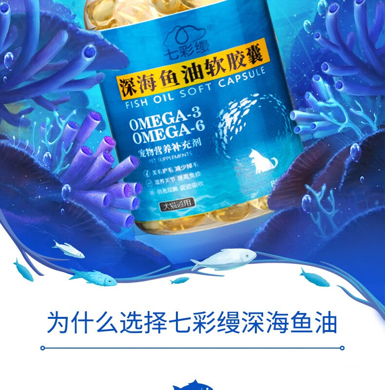 Colorful deep sea fish oil for cats, special skin care and grooming for pets, anti-hair loss soft capsules for dogs, 80 capsules, deep sea fish oil