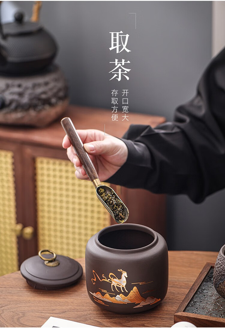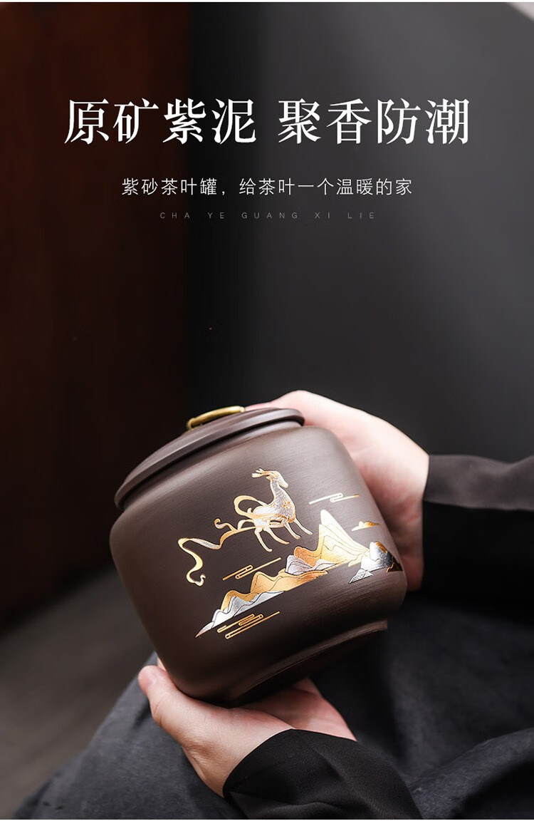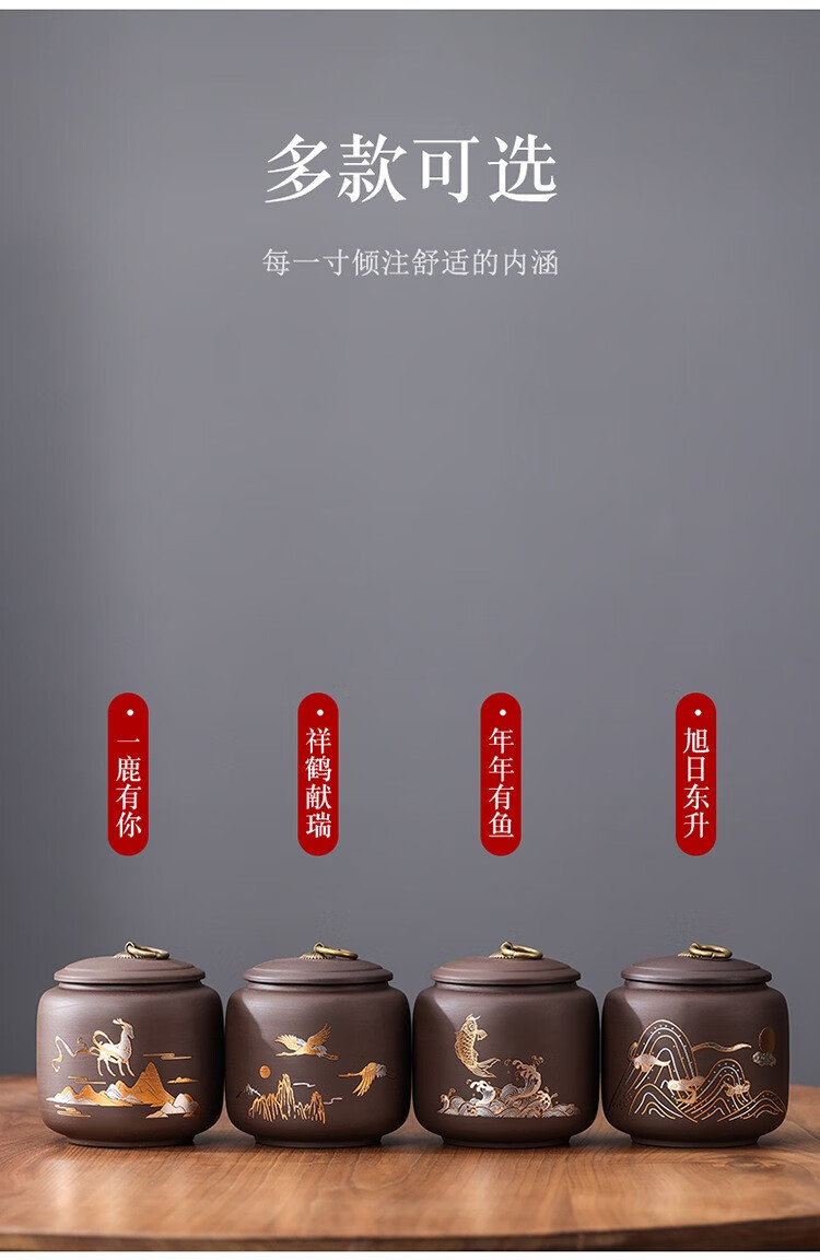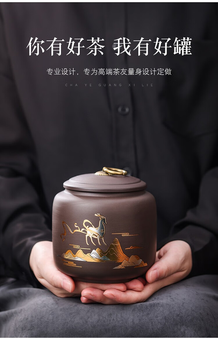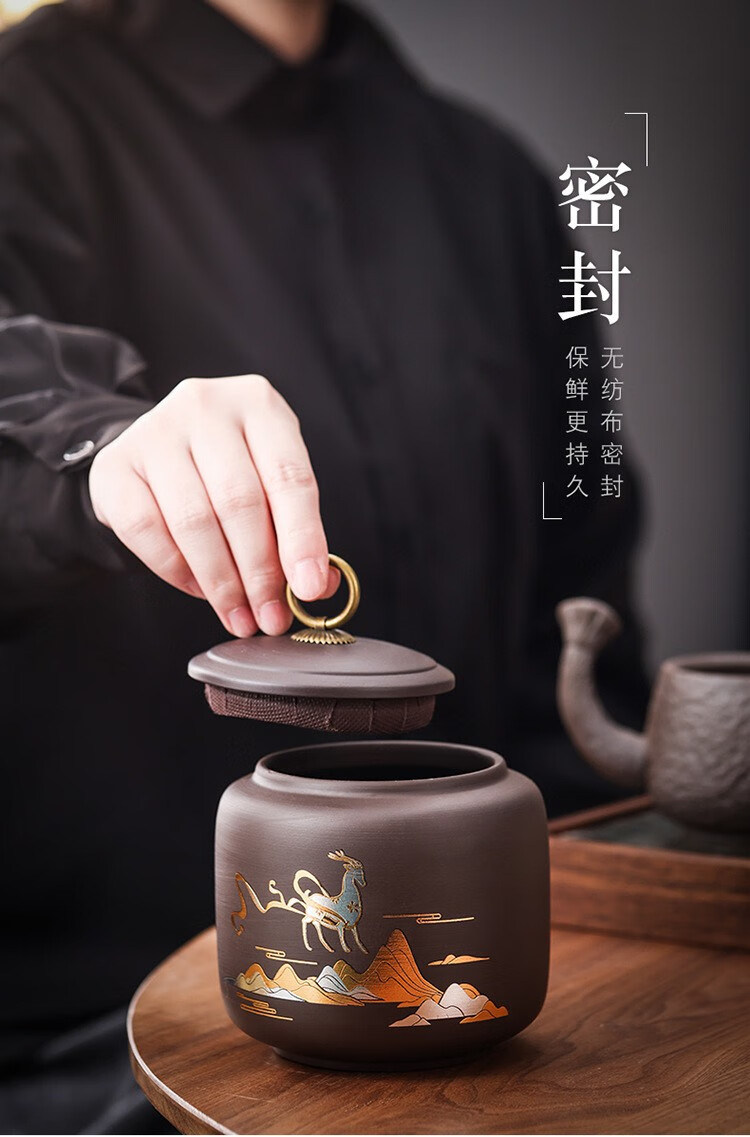 Bo Na Ling Tea Can Purple Clay Tea Storage Can White Tea Black Tea Pu'er Ceramic Sealed Can Moisture-proof and Mildew-proof Tea Can Yilu You You - Large 730ml