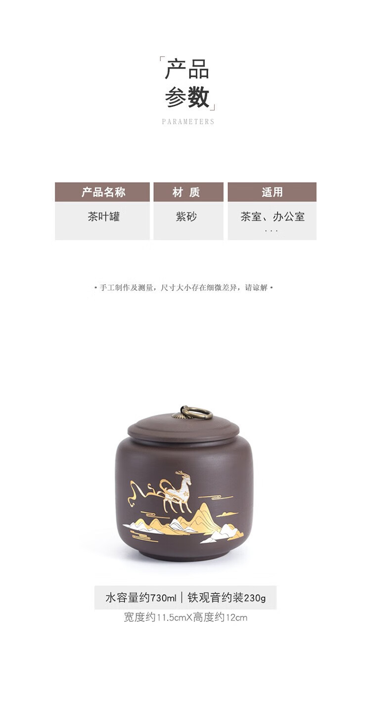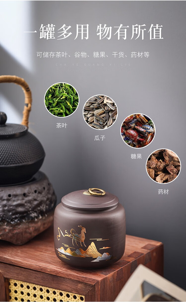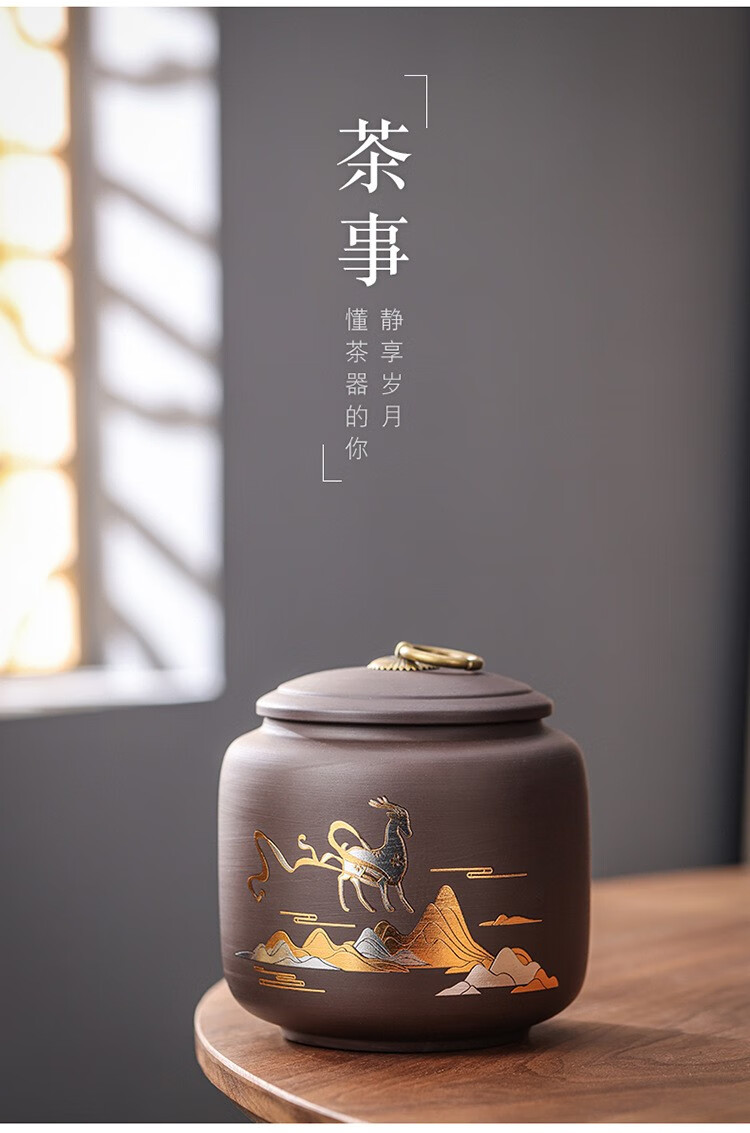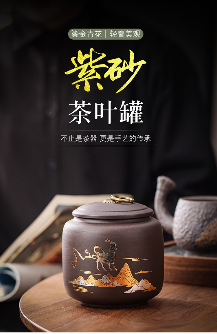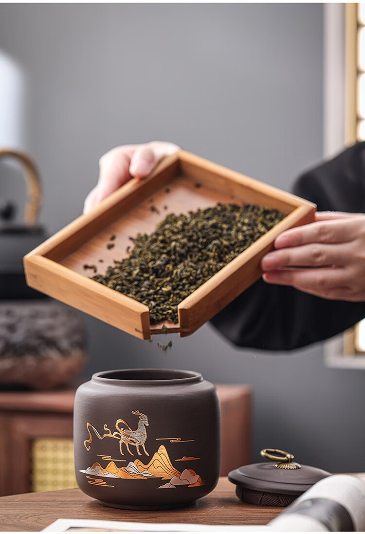 Bo Na Ling Tea Can Purple Clay Tea Storage Can White Tea Black Tea Pu'er Ceramic Sealed Can Moisture-proof and Mildew-proof Tea Can Yilu You You - Large 730ml