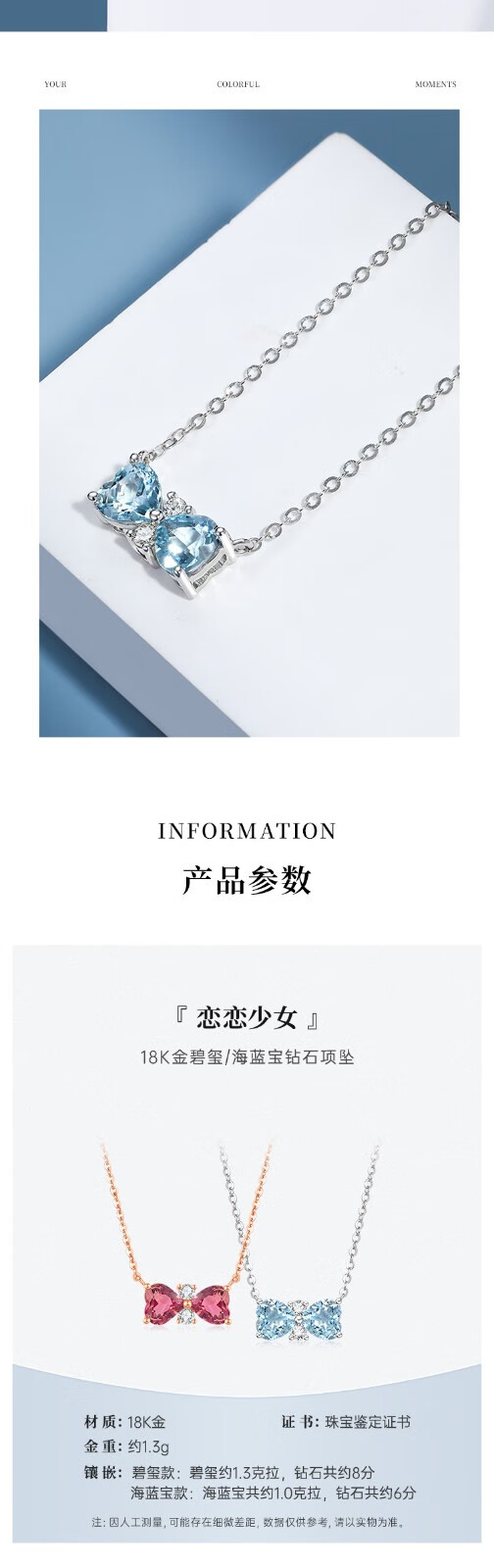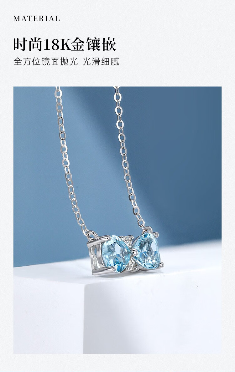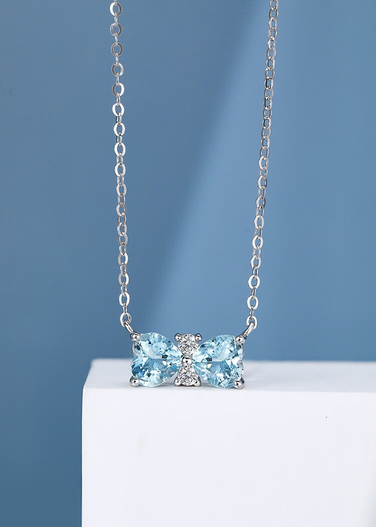 IL&CO Youke Love Girl 18K Gold Natural Aquamarine Necklace Female Butterfly Diamond Gift for Girlfriend Birthday Gift White 18K Gold Aquamarine Necklace