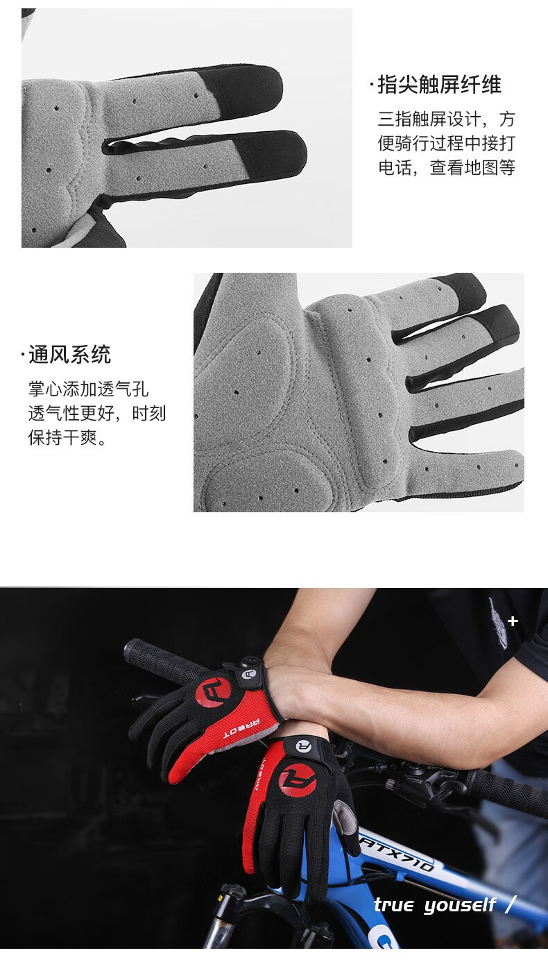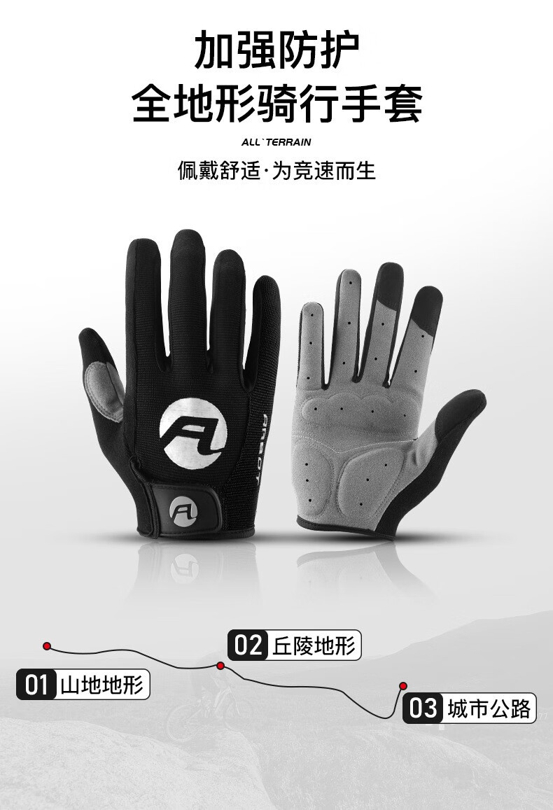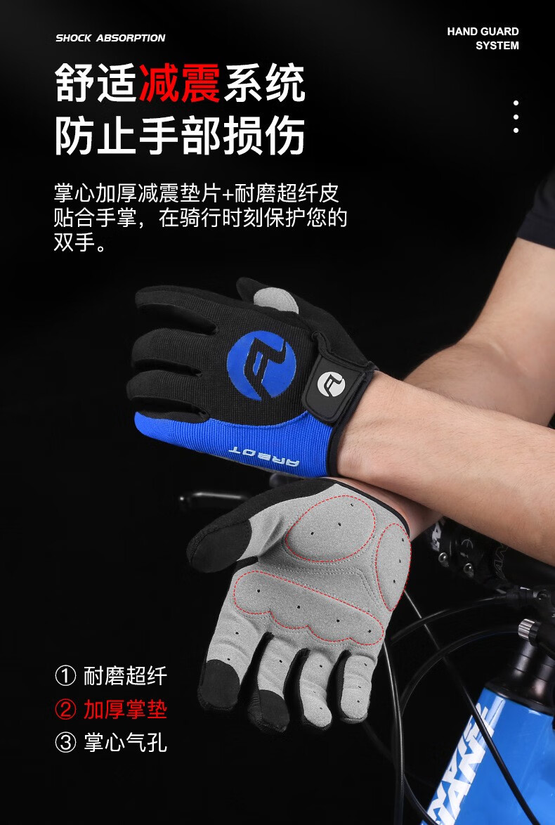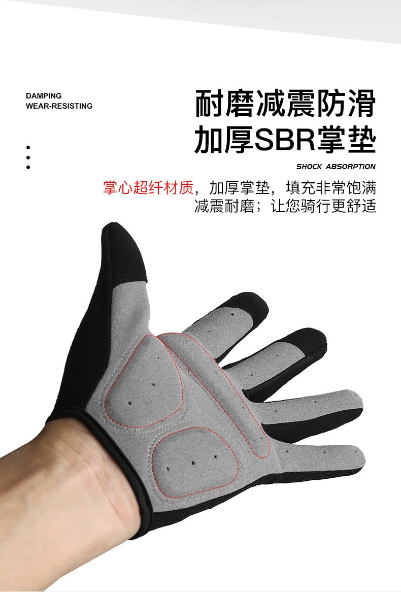 HTBT Spring and Autumn Men's and Women's Gloves Cycling Shock Absorbing Breathable Anti-Slip Touch Screen Outdoor Sports Mountain Biking Running Mountaineering Full Finger Black M