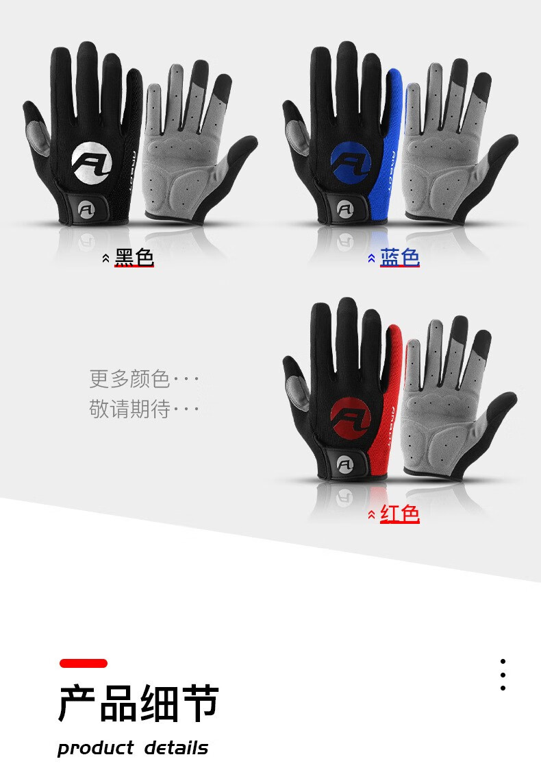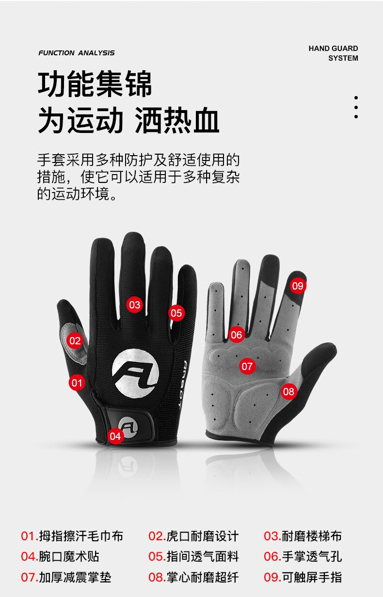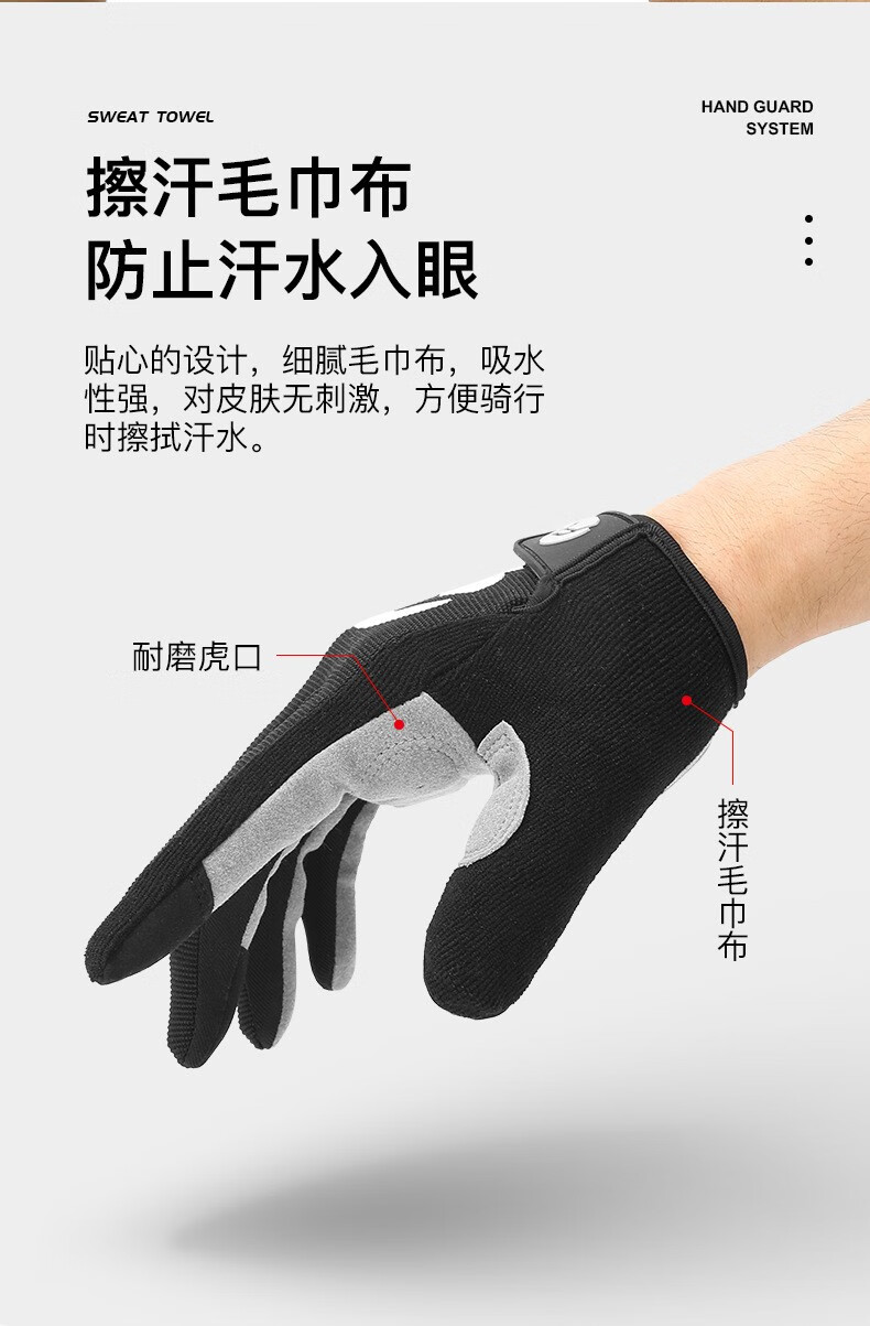 HTBT Spring and Autumn Men's and Women's Gloves Cycling Shock Absorbing Breathable Anti-Slip Touch Screen Outdoor Sports Mountain Biking Running Mountaineering Full Finger Black M