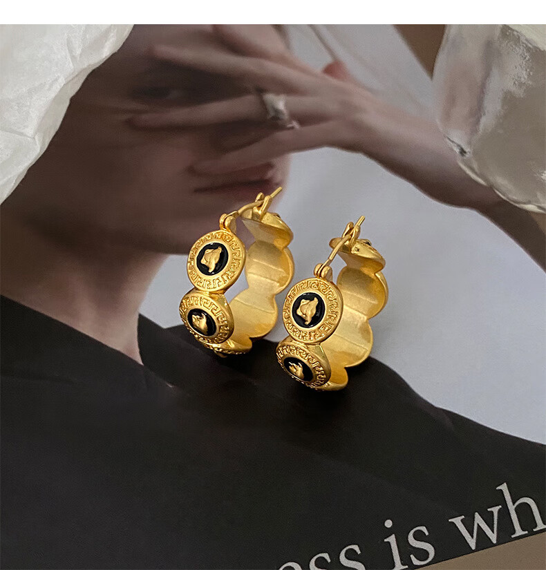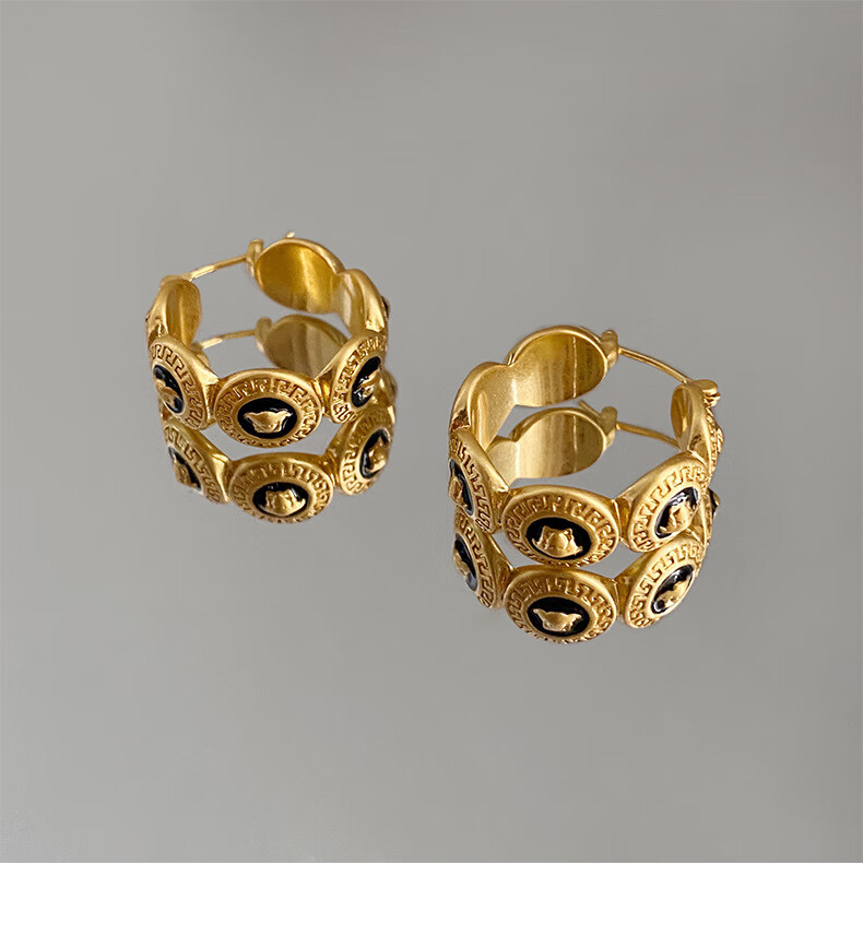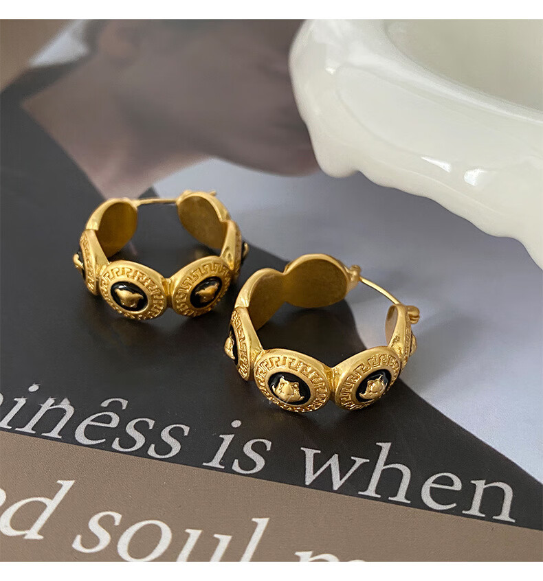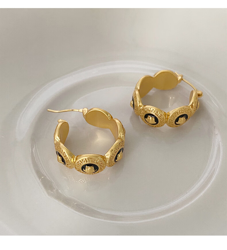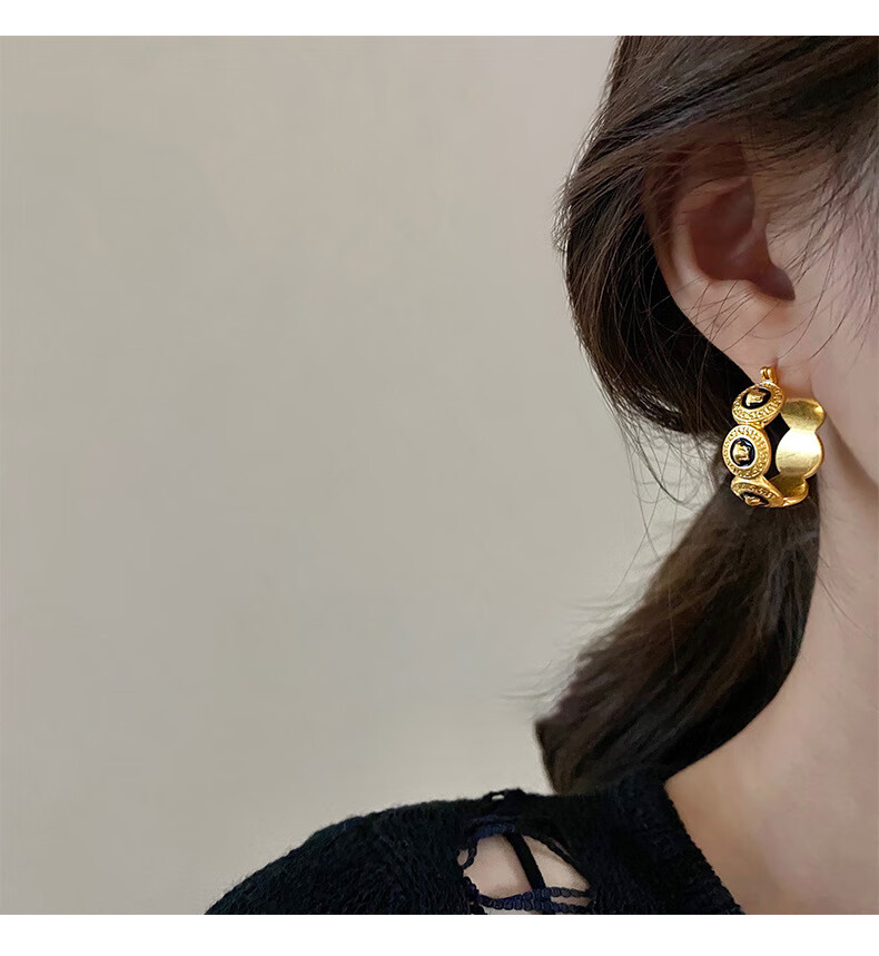 Bucklele antique metal oil-drip round earrings French retro palace style earrings fashionable light luxury earrings earrings - gold