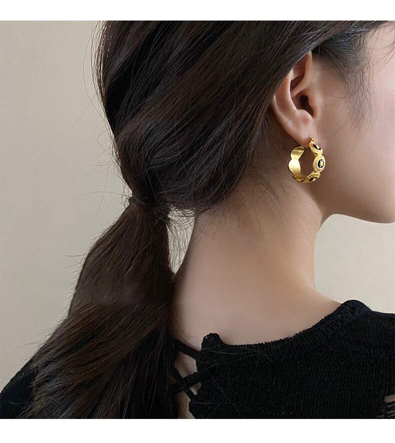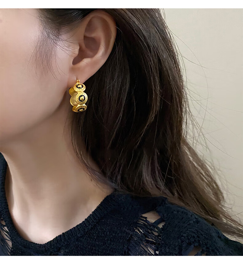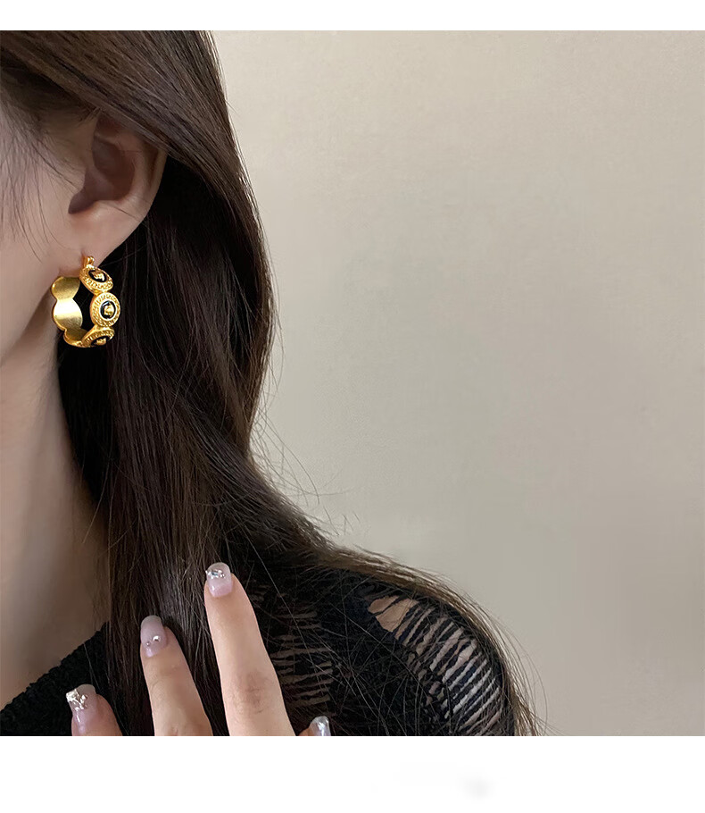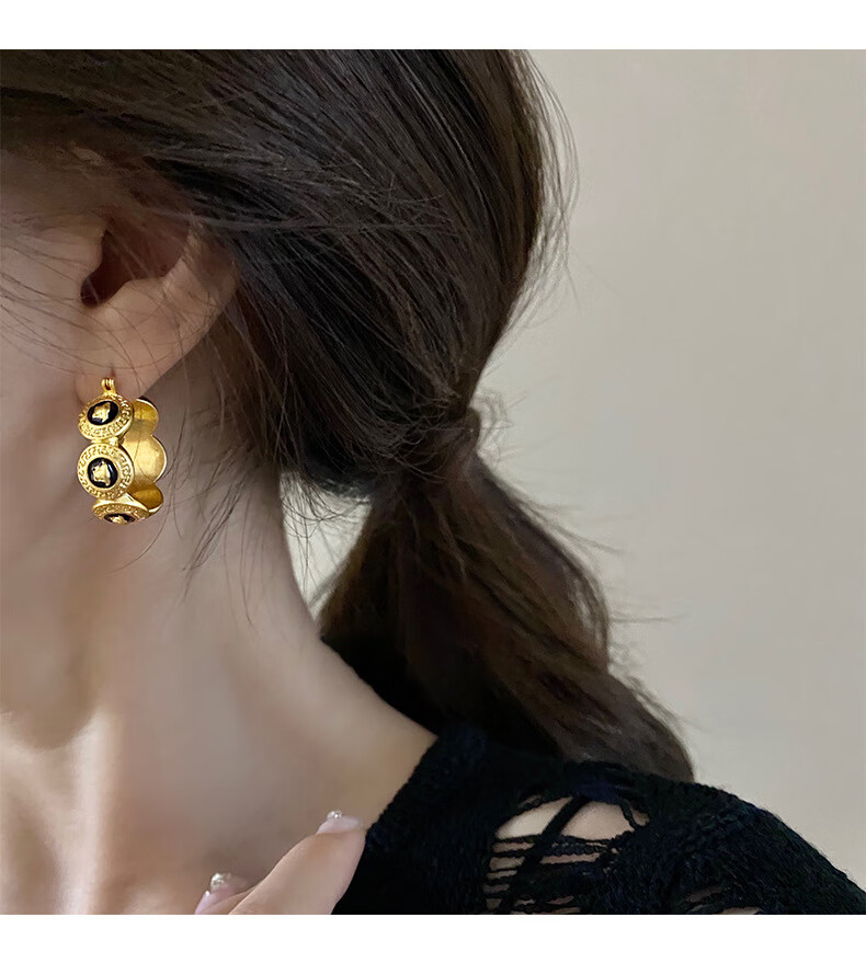 Bucklele antique metal oil-drip round earrings French retro palace style earrings fashionable light luxury earrings earrings - gold
