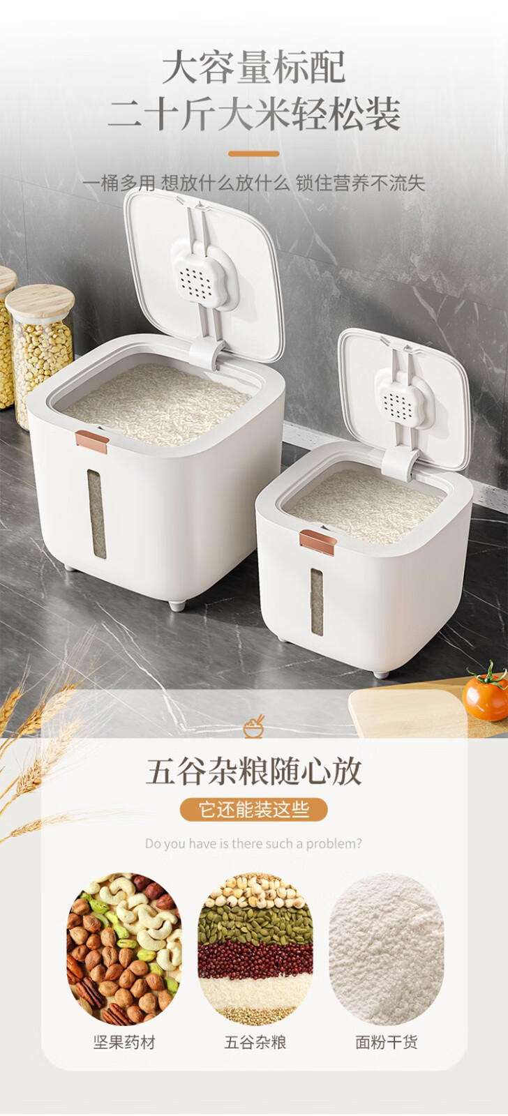 Youyi Feimi bucket household insect-proof and moisture-proof sealed food-grade rice jar rice flour storage bucket storage tank rice noodle storage box high-end rice noodle bucket with measuring cup 10Jin Jin equals 0.5 kg